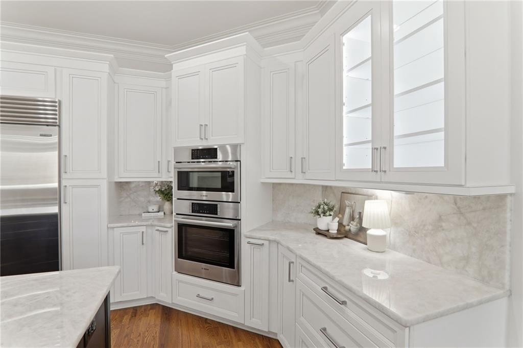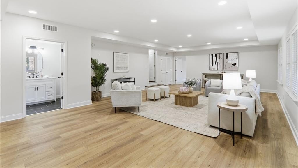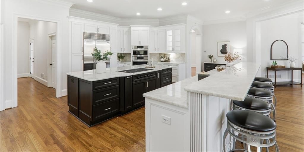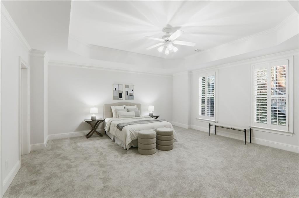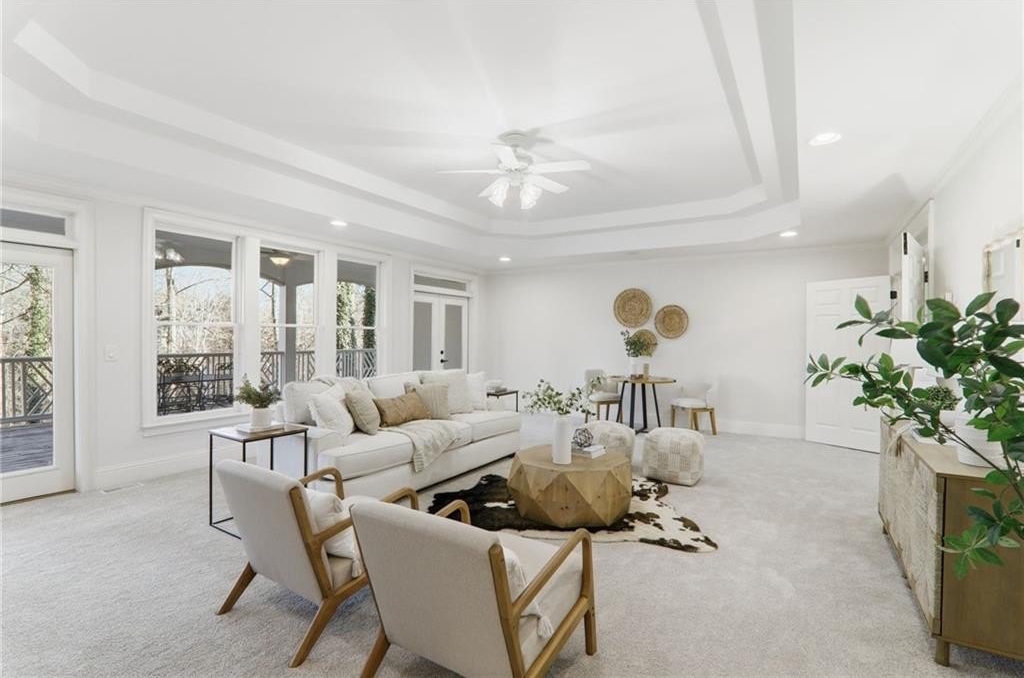 Discover an extraordinary opportunity in the highly sought-after, gated Crooked Creek community, renowned for its resort-style amenities and top-ranked schools. Perfectly designed for multi-generational living, this exceptional residence is set on one of the neighborhood's most beautiful and private golf course lots, overlooking the 15th fairway and offering one of Crooked Creek's largest and most versatile floor plans. Inside, the primary-on-main layout is highlighted by a stunning, fully renovated kitchen featuring dual islands, a spacious walk-in pantry, premium Wolf and Sub-Zero appliances, and a fireside keeping room filled with natural morning light. From here, enjoy peaceful views of the covered deck and the golf course beyond. The main level also includes a formal dining room, a private office, a sunroom, a spacious great room, two half baths, and an oversized laundry room. The primary suite is truly impressive, offering a spa-like bath with separate; vanities, walk in closets, toilet rooms and a curb less shower and whirlpool tub for ultimate comfort and privacy. SHOWINGS START FRIDAY Upstairs, a large bedroom with its own ensuite bath provides an ideal au pair or teen suite. The next level down from the main offers three generously sized bedrooms with large walk-in closets, a playroom, a brand-new full second kitchen, a cedar storage closet, a gym, and an additional office or game room. The lowest level adds even more flexibility with another expansive family room, an additional bedroom, a full bath, a walk-in closet, abundant storage, and endless possibilities for entertaining or extended living. The expansive backyard offers incredible potential for a pool, playground, fire pit, private putting green, or outdoor retreat, all while enjoying sweeping views of the golf course. The home has been meticulously prepared for sale with fresh interior paint, new carpet, refinished hardwood floors, updated bath tile, showers, vanities, toilets, new light fixtures, and a completely renovated terrace-level kitchen with new cabinets and appliances. New Roof December 2025. New Driveway 2024. Crooked Creek's unmatched amenities include championship golf, professionally managed tennis and pickleball facilities, a junior Olympic swimming pool, a second water-park-style pool with splash features and a 140-foot waterslide, playground, basketball court, and a clubhouse with meeting rooms, catering bar, and kitchen, along with vibrant community events year-round. Ideally located just minutes from Crabapple, downtown Milton, downtown Alpharetta, GA-400, Halcyon, Avalon, and some of Georgia's most acclaimed schools, this remarkable home truly offers it all and is completely move-in ready. This is a rare opportunity to own a home that combines luxury, lifestyle, and location-your dream home awaits.