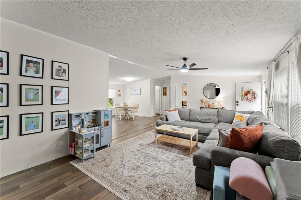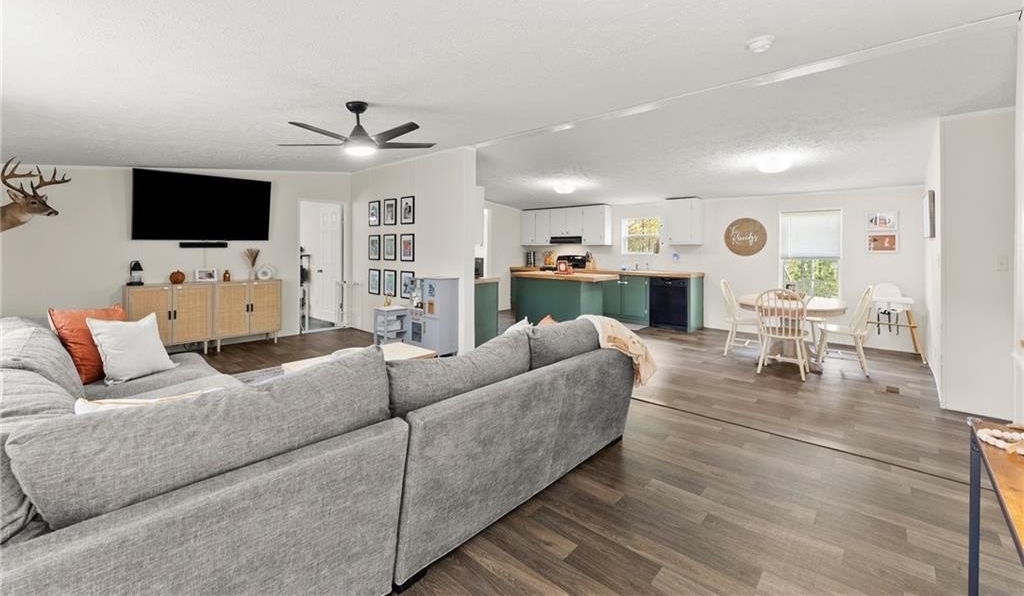 $2,000 preferred Lender Incentive! Welcome Home to Peaceful Ball Ground Living! Tucked away on 1.5 private acres in beautiful South Pickens County, this charming 3BR/2BA home. Better than NEW, with no HOA, offers the perfect blend of peaceful country living and modern comfort. Step inside to find fresh interior paint, newly updated kitchen cabinets, and an open-concept layout that makes daily life easy and inviting. The spacious kitchen features an island, laminate counters, pantry, and a view to the family room, perfect for gathering with loved ones. The primary suite on the main level provides a cozy retreat with a walk-in closet and relaxing tub/shower combo. Additional highlights include laminate flooring, a convenient main-level laundry room, central electric heat and air, ceiling fans, and low-flow plumbing fixtures. Outdoors, enjoy a spacious back deck overlooking a wooded, landscaped backyard complete with a new retaining wall and a storage shed for all your tools and toys. The home sits on a permanent foundation and features a large gravel driveway with plenty of parking for guests, recreational vehicles, or extra cars. Located near shopping, scenic trails, and just minutes from Ball Ground and Canton-this is the perfect place to unwind, spread out, and truly feel at home.