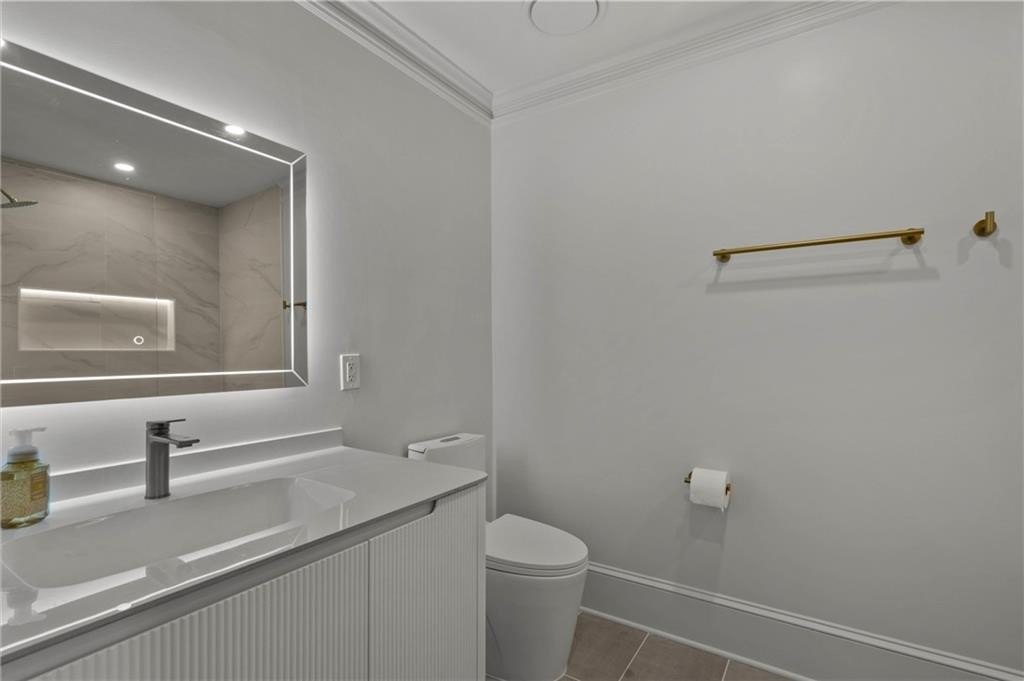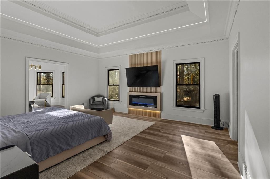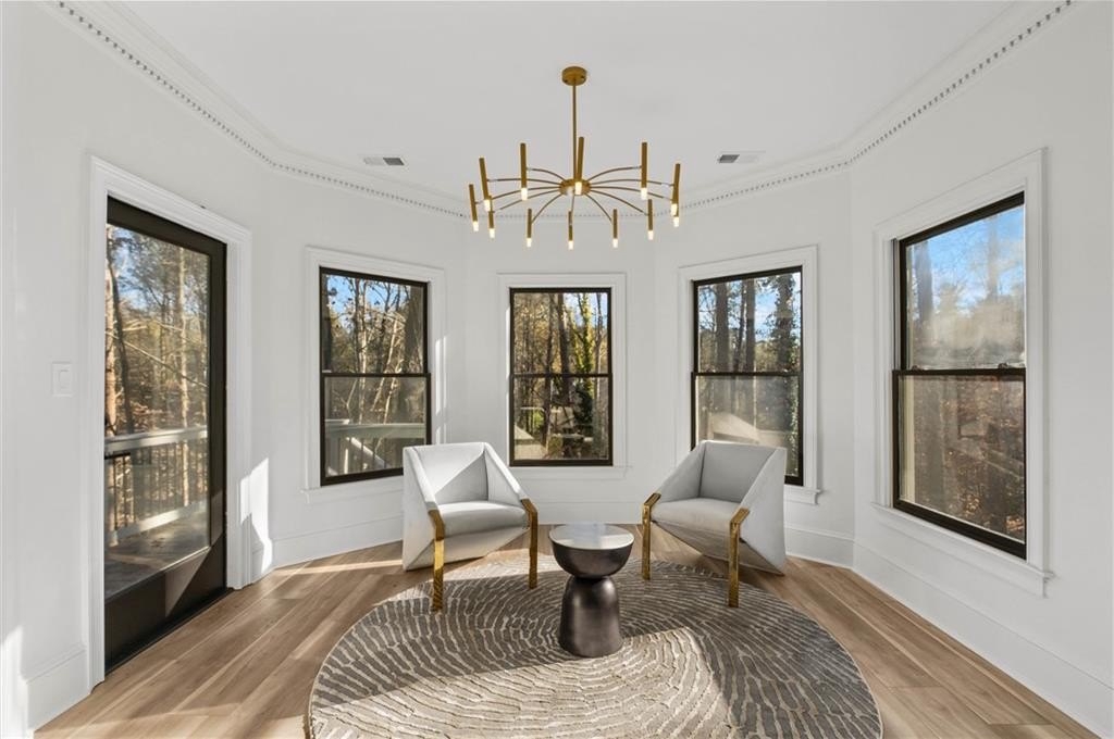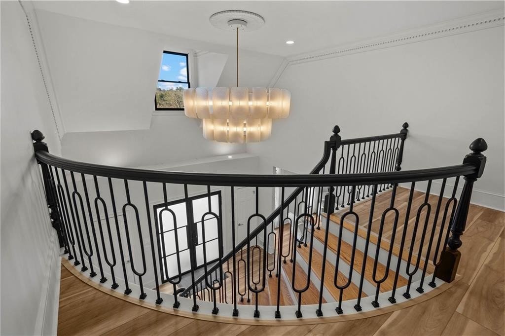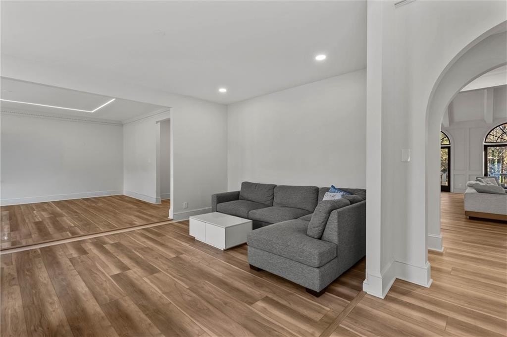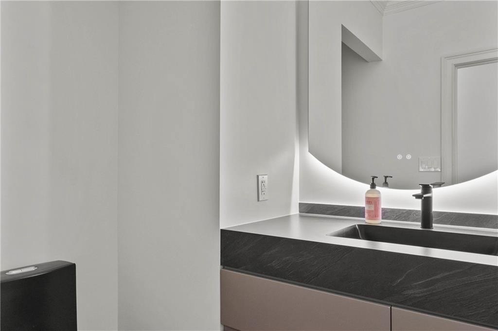 Set within the established Prestwick community and directly across from the Atlanta Athletic Club, this fully renovated estate offers a rare combination of privacy, scale, and refined design on a 1.2-acre lot. A long, private driveway leads to the home, creating a quiet, estate-style approach and setting the property well back from the street. The exterior presents a timeless, European-inspired look that immediately sets the tone. Inside, the home has been completely reimagined with wide-plank flooring, custom millwork, arched openings, and layered lighting throughout. Custom recessed ceiling details and designer fixtures elevate every room, while abundant natural light highlights the home's generous proportions and thoughtful flow. The main level is designed to support both everyday living and effortless entertaining. The great room features soaring ceilings and a striking fireplace, opening seamlessly to the kitchen and dining areas. The kitchen is a true gathering space, anchored by an oversized island, custom cabinetry, premium appliances, and a well-appointed bar area that makes hosting easy and natural. Large windows and doors connect the interior to outdoor patios, creating a smooth transition between indoor and outdoor living. The primary suite on the main level offers a private retreat with a sitting area, direct outdoor access, custom walk-in closets, and a spa-inspired bathroom featuring a soaking tub, oversized glass shower, and carefully selected lighting that delivers a calm, hotel-like feel. A dedicated office, spacious laundry room, and additional bedroom with a private bath complete the main level, offering flexibility for guests or extended stays. Upstairs, two generously sized bedrooms each feature walk-in closets and ensuite bathrooms, providing privacy and comfort while remaining connected to the main living spaces below. The finished terrace level significantly expands the home's functionality and is ideal for multigenerational living or long-term guests. This level includes two additional bedrooms, two full bathrooms, a second full kitchen, and a second laundry room, allowing for true independence without sacrificing connection to the main home. Multiple living areas provide space for a media lounge, gym, or recreation room, while walk-out access leads directly to the backyard. A massive storage area on this level offers exceptional utility and includes its own separate garage entry, ideal for storing vehicles, equipment, or seasonal items with ease. Surrounded by mature trees, the outdoor setting offers a peaceful backdrop that feels removed from the city while remaining close to everything. Located right off Medlock Bridge, the home is minutes from Medlock Crossing with Regal Cinema, Whole Foods, Target, Publix, Home Depot, and Panera. The Forum at Peachtree Corners is also nearby, offering Trader Joe's, Barnes and Noble, Firebirds Wood Fired Grill, J. Alexander's, H&W Steakhouse, Cava, and Sprouts. With seven bedrooms, seven full bathrooms, and a half bath across three finished levels, this extensively renovated estate delivers privacy, flexibility, and a level of finish that is increasingly difficult to find in an established community of this caliber. Welcome Home!