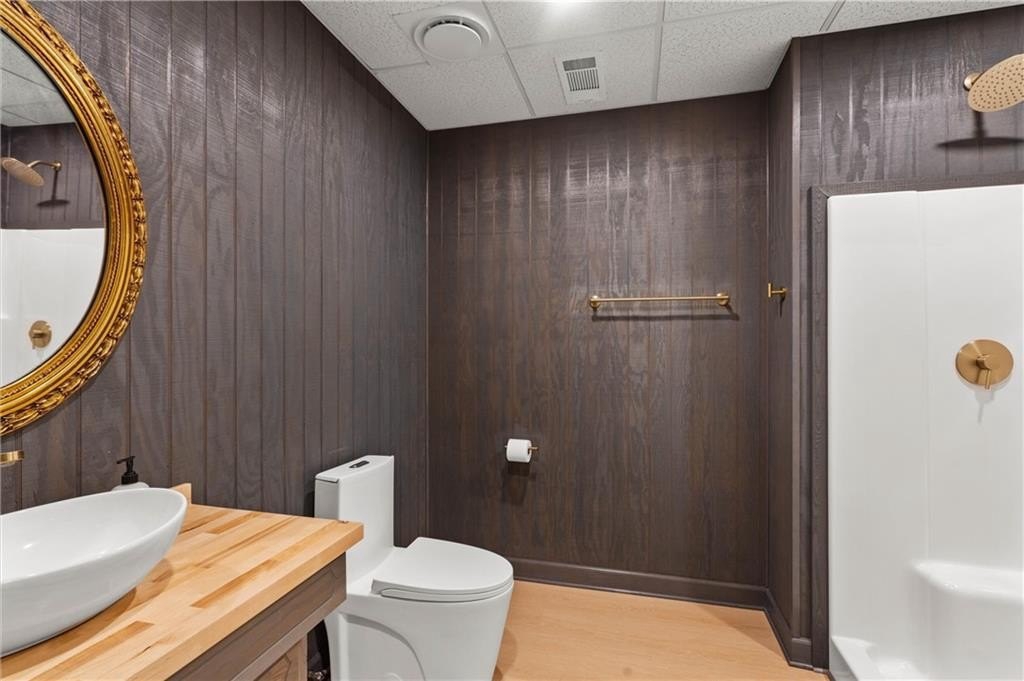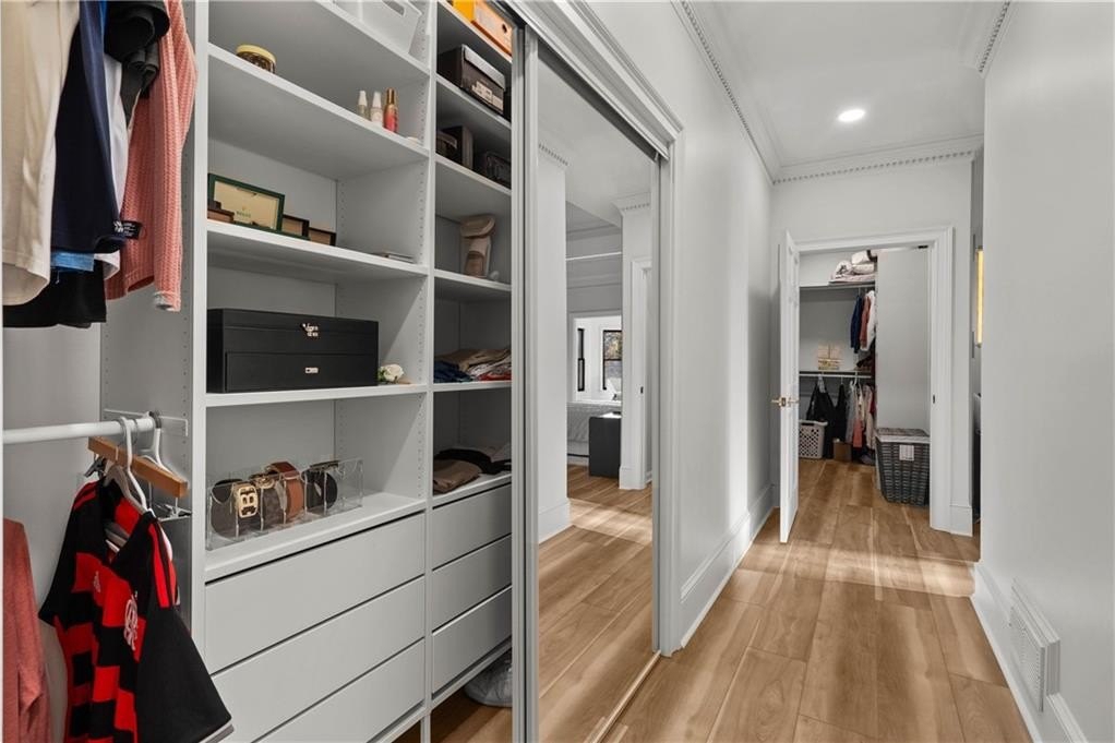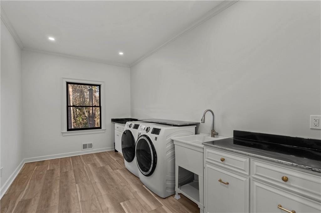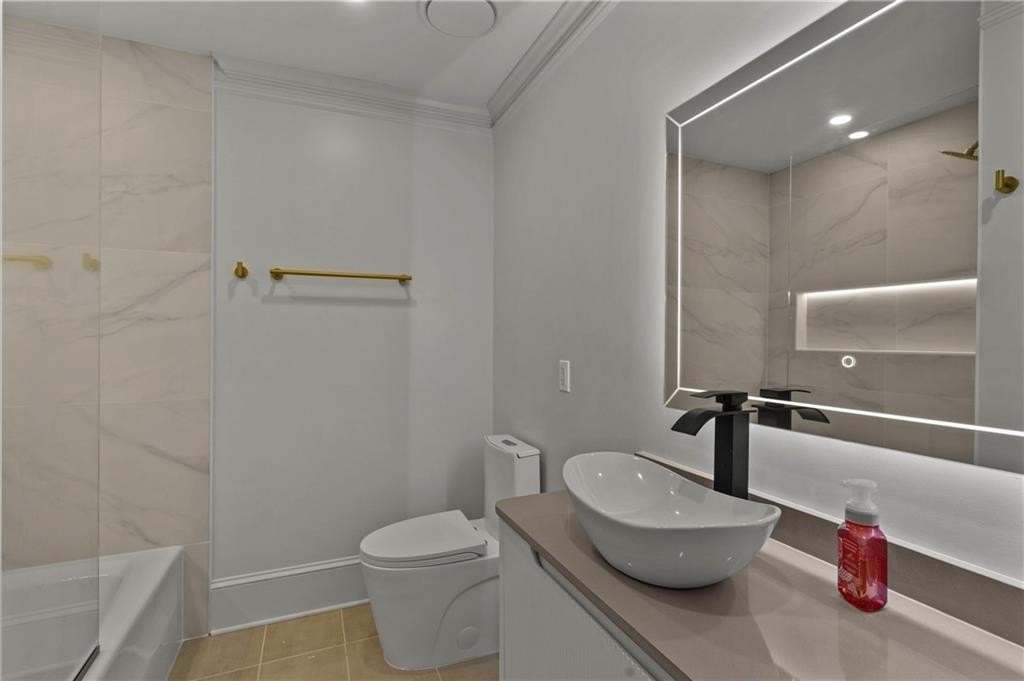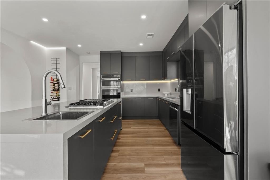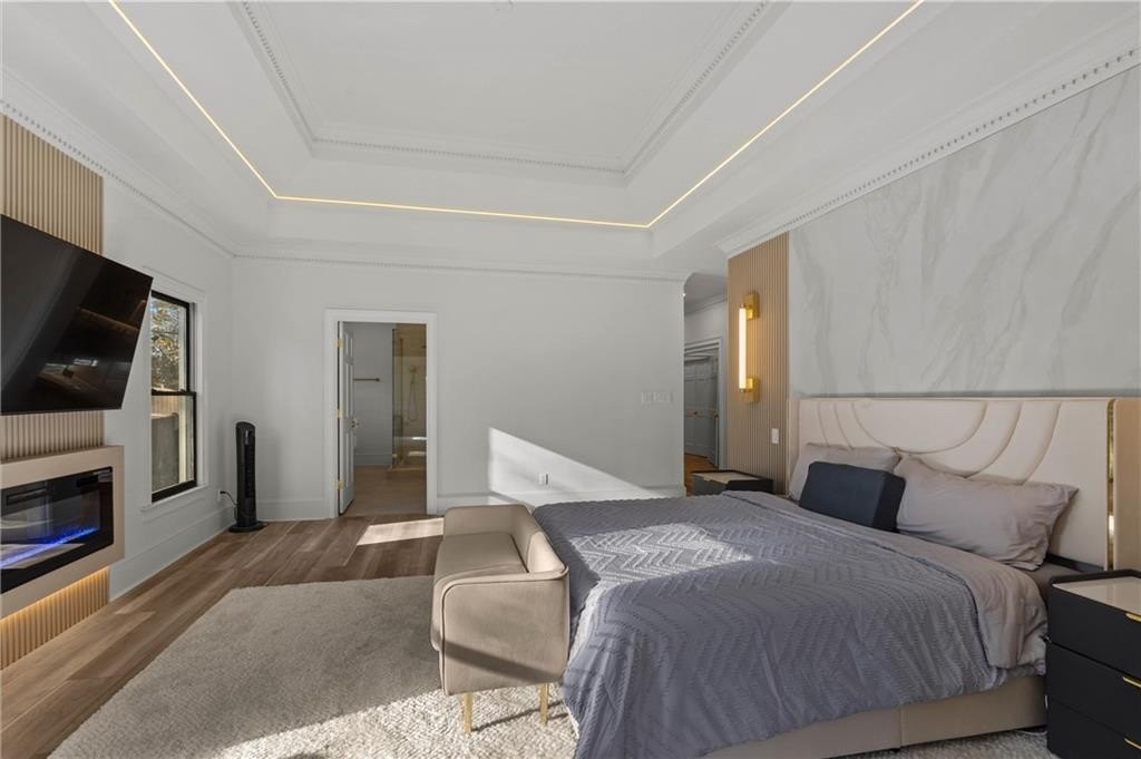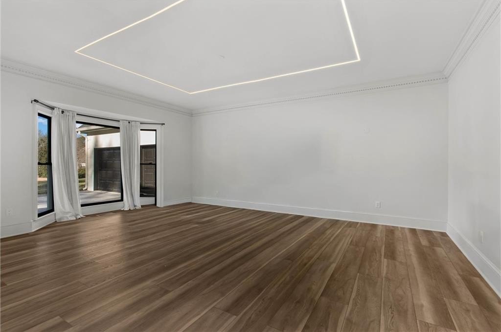 Set within the established Prestwick community and directly across from the Atlanta Athletic Club, this fully renovated estate offers a rare combination of privacy, scale, and refined design on a 1.2-acre lot. A long, private driveway leads to the home, creating a quiet, estate-style approach and setting the property well back from the street. The exterior presents a timeless, European-inspired look that immediately sets the tone. Inside, the home has been completely reimagined with wide-plank flooring, custom millwork, arched openings, and layered lighting throughout. Custom recessed ceiling details and designer fixtures elevate every room, while abundant natural light highlights the home's generous proportions and thoughtful flow. The main level is designed to support both everyday living and effortless entertaining. The great room features soaring ceilings and a striking fireplace, opening seamlessly to the kitchen and dining areas. The kitchen is a true gathering space, anchored by an oversized island, custom cabinetry, premium appliances, and a well-appointed bar area that makes hosting easy and natural. Large windows and doors connect the interior to outdoor patios, creating a smooth transition between indoor and outdoor living. The primary suite on the main level offers a private retreat with a sitting area, direct outdoor access, custom walk-in closets, and a spa-inspired bathroom featuring a soaking tub, oversized glass shower, and carefully selected lighting that delivers a calm, hotel-like feel. A dedicated office, spacious laundry room, and additional bedroom with a private bath complete the main level, offering flexibility for guests or extended stays. Upstairs, two generously sized bedrooms each feature walk-in closets and ensuite bathrooms, providing privacy and comfort while remaining connected to the main living spaces below. The finished terrace level significantly expands the home's functionality and is ideal for multigenerational living or long-term guests. This level includes two additional bedrooms, two full bathrooms, a second full kitchen, and a second laundry room, allowing for true independence without sacrificing connection to the main home. Multiple living areas provide space for a media lounge, gym, or recreation room, while walk-out access leads directly to the backyard. A massive storage area on this level offers exceptional utility and includes its own separate garage entry, ideal for storing vehicles, equipment, or seasonal items with ease. Surrounded by mature trees, the outdoor setting offers a peaceful backdrop that feels removed from the city while remaining close to everything. Located right off Medlock Bridge, the home is minutes from Medlock Crossing with Regal Cinema, Whole Foods, Target, Publix, Home Depot, and Panera. The Forum at Peachtree Corners is also nearby, offering Trader Joe's, Barnes and Noble, Firebirds Wood Fired Grill, J. Alexander's, H&W Steakhouse, Cava, and Sprouts. With seven bedrooms, seven full bathrooms, and a half bath across three finished levels, this extensively renovated estate delivers privacy, flexibility, and a level of finish that is increasingly difficult to find in an established community of this caliber. Welcome Home!