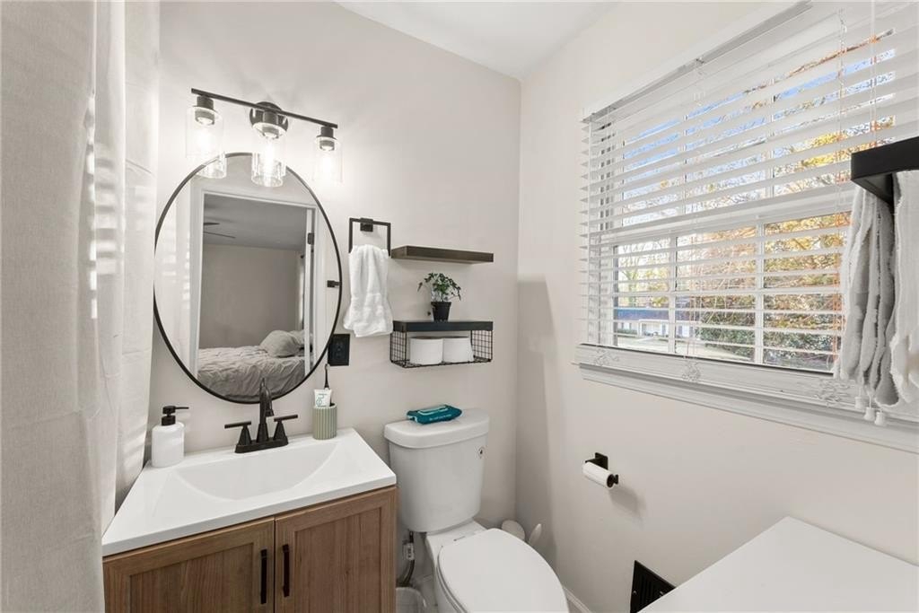 This beautifully updated four-bedroom, three-bath home sits on a private one-acre lot. Wood floors span the main and upper levels, with durable laminate on the lower level, while fresh paint, updated lighting, modern hardware, and three renovated bathrooms create a bright, cohesive feel throughout. The upper level features the primary suite with its private bath, two additional bedrooms, and a second full bathroom. The lower level provides a full in-law suite with a spacious bedroom, full bathroom, and an oversized living room with a fireplace. Multiple outdoor living spaces-including front and back porches, a screened patio off the main level, and a concrete patio below-offer great options for entertaining or relaxing year-round. This home also features a side-entry garage with ample storage, recently added attic insulation and exterior updates including fresh paint, new lighting, shutters and front door for improved efficiency and curb appeal. Ideally located just two miles from beloved Canton Street and Downtown Roswell, three miles from The Avenue East Cobb, and less than one mile from Kroger and Starbucks. Homes offering this combination of space, updates and location are hard to find.