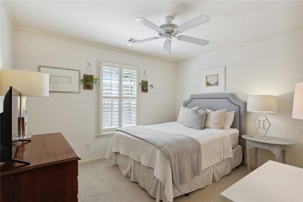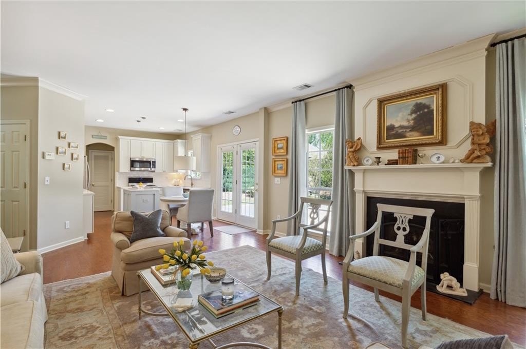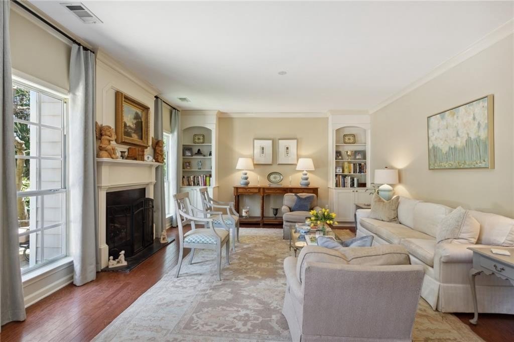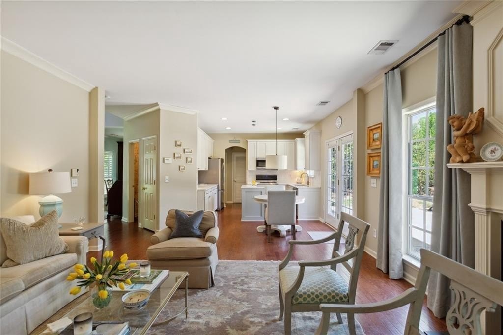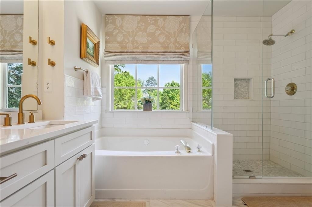 Location! This beautiful 4 bd, 2.5 bth home is a short walk from Smyrna's West Village, local restaurants, bars, Starbucks and the Silver Comet Trail extension. Less than a mile from I-285, enjoy a shorter commute and quick access to the Battery Park Braves Stadium, Cumberland Mall, Costco and Upper West Side. Buckhead and Historic Vinings are minutes away. This home features $167K in designer upgrades including new designer kitchen with shaker style cabinets, quartz countertops, Italian Style Backsplash, and more. Fresh paint, arched doorways, custom wood shutters in bedrooms + diningroom, beautiful new wood flooring, gorgeous custom Built-In bookcase in the living room, custom crown molding throughout, second floor HVAC installed in 2023, first floor Air compressor updated 2025, brand-new downstairs furnace and aluminum fencing. Relax or entertain in your private backyard paradise with a large stone patio and stunning landscaping! The professionally maintained yard has a brand-new irrigation system--perfect for maintaining the perfect landscape! This home has all the bells; whistles and the location cannot be beat! Make this your home today!