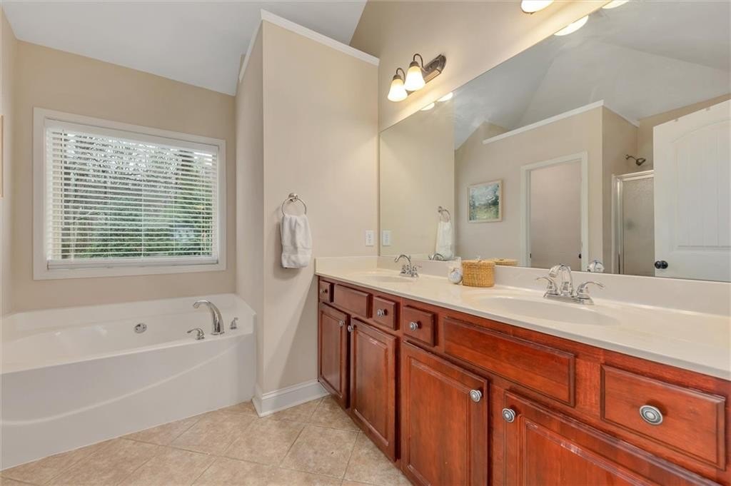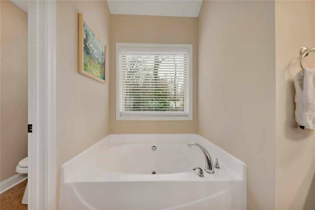 Gorgeous home in the sought-after Etowah High School District. Conveniently located just minutes from Towne Lake, Downtown Woodstock and Lake Allatoona. One of the largest lots in Belmont Trace. Open floor plan with laminate floors throughout 1st and 2nd floor. Perfect for entertaining, kitchen with granite countertops, beautiful custom-made built-in cabinet in the large dining area. Great family room with large windows. On the second floor you will find four large bedrooms, all with walk in closets, the laundry room and built in desk area at top of stairs. Also the spacious Primary suite with garden tub, tray ceilings, tiled shower and flooring, dual vanities and large walk-in closet. Wonderful family neighborhood in a great location.
