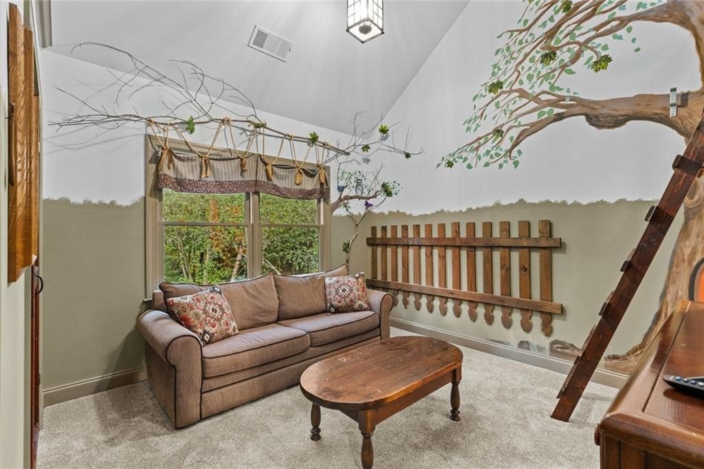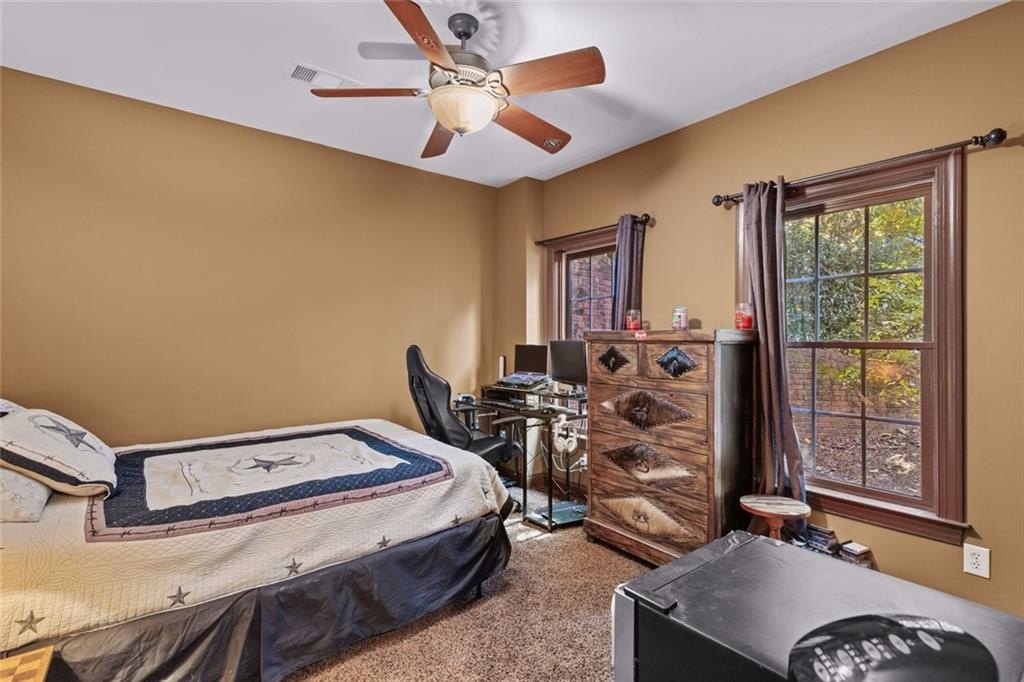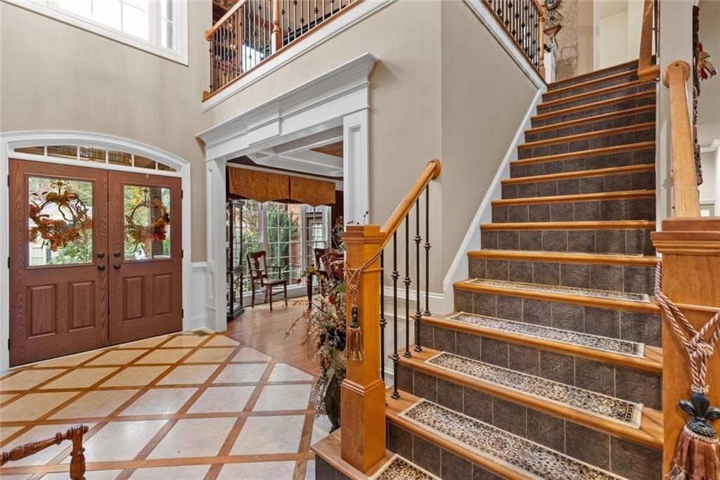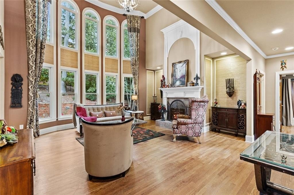 Relisted for the new year at $799,900, this former Waterford Homes model offers over 5,200 sq ft of living space on a premium double lot in Sterling on the Lake. The lot position is a stand-out feature-expanded yard space, privacy, and rare separation from neighboring homes in one of Flowery Branch's most desirable master-planned communities! The main level is warm and inviting with hardwood floors, custom millwork, a fireside great room, and a keeping room off the kitchen that creates a natural gathering spot for daily living. The kitchen features stone counters, walk-in pantry, breakfast room, and open sightlines for connected living. A guest bedroom suite on the main floor provides convenience for visitors or multi-generational needs. Upstairs, the primary bedroom suite spans a large portion of the level and offers the privacy and scale expected at this price point. Additional bedrooms with bath access and a flexible loft space allow easy use for a media room, office, or lounge. The finished terrace level adds another layer of versatility with multiple living/entertaining zones, guest accommodations, full bath, and walk-out access to the backyard. Ideal for recreation, home gym, studio space, or extended living. Outdoors, the double lot expands the lifestyle with room for gardening, play areas, outdoor living, or future personalization. The wooded backdrop creates a sense of retreat while still being in the heart of the community. Sterling on the Lake offers lakes, trails, clubhouse, fitness center, tennis, pickleball, multiple pools, playgrounds, and the established community atmosphere the neighborhood is known for. Presented at $799,900 to reflect current positioning for size, lot, and location. Private showings by appointment. A substantial home with scale, privacy, and a rare premium double lot in a destination community.