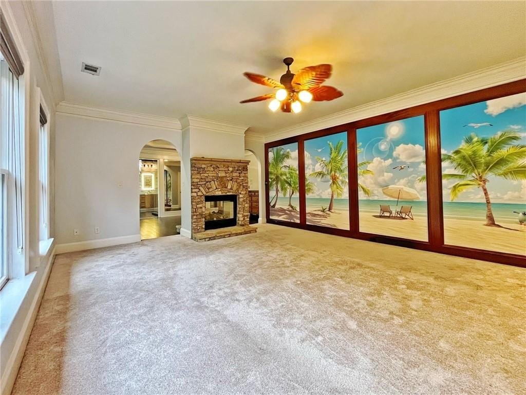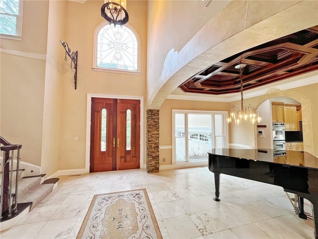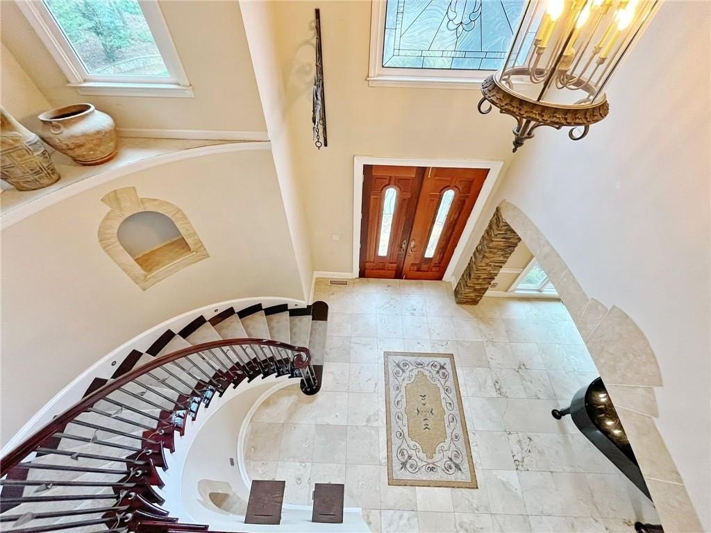 ENJOY A LUXURIOUS LIFESTYLE IN THIS ONE-OF-A-KIND, EXCLUSIVE CUSTOM-BUILT HOME WITH ALL THE BELLS & WHISTLES! Nestled on a gorgeous cul-de-sac lot w/ seasonal lake views is this amazing home featuring hard-coat stucco, state of the art imported European fixtures, stately double Mahogany entry doors, grand foyer w/ wrapping staircase, custom Novona Marble flooring imported from Italy, an inviting Parlor w/ elite Mahogany ceilings, a true Chef's kitchen with Jenn-Air cooktop, grill, double ovens & solid maple cabinetry, a cozy Great room with fireplace and views. There is a Main level bedroom currently being used as an office. Upstairs is a gorgeous Owner's suite with a double-sided fireplace & a full-size sitting room. The Owner's en-suite spa retreat features European vanities, a full body Rainforest shower, Toto toilet with heated seating, towel warmers, a Swarovski Crystal Chandelier & more. Secondary rooms are spacious & baths have exquisite Porcelanosa designs also. The basement is fully finished with a full bar, Billiard room, fitness room, guest bedroom, the 4th luxury bath, an additional garage/workshop, and a private outdoor escape with a custom brick firepit. Finishing the home are a 3-bay garage with Lift Master garage openers, a rear Ipe designs Entertainer's grilling deck overlooking the grounds, and a private screened Lanai off the main level bedroom (currently being used as an office). Drive-way is recently repaved, roof is recently re-shingled, 3 Unit Elite Lennox HVAC system, intercom. Walking distance to Van Pugh Park & Lake Lanier. Enjoy nearby shopping, Lake Lanier Island Resort & Chateau Elan Winery Resort. Easy access to I-985. HURRY TO SEE THIS STUNNING HOME!