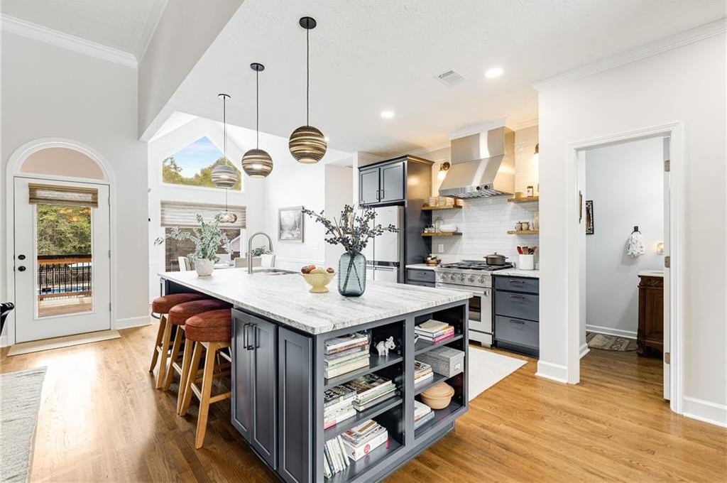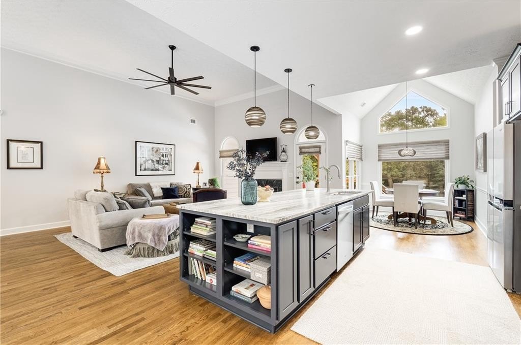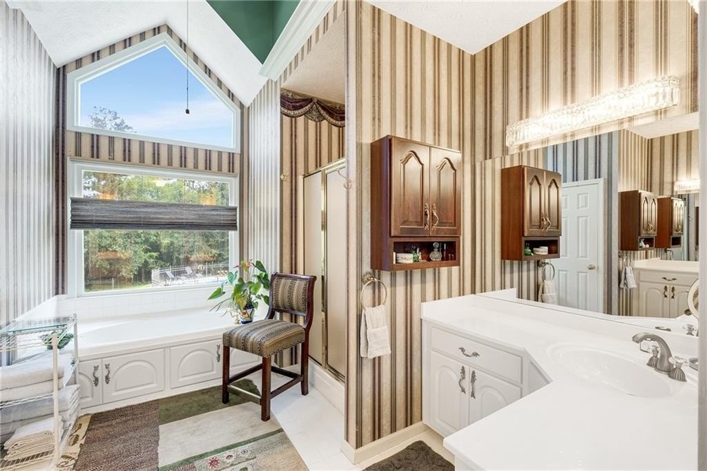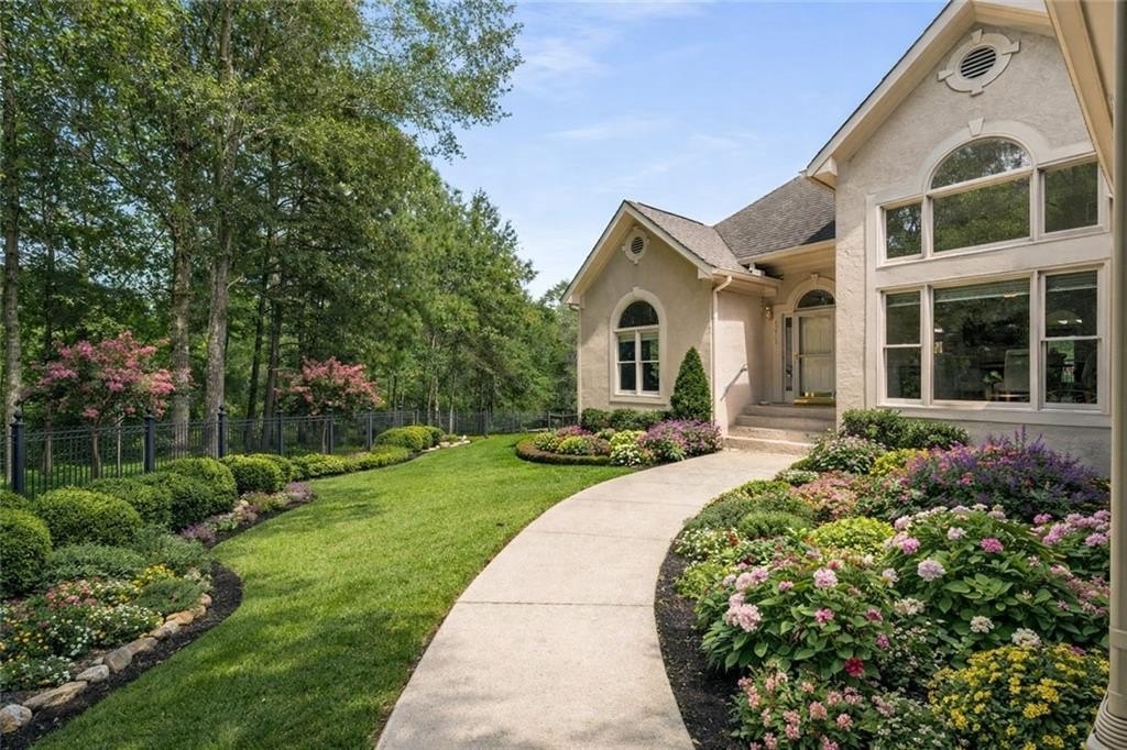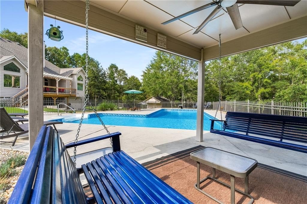 Exceptional ranch estate on 4.63 secluded acres with no HOA, just minutes from downtown Loganville. This thoughtfully updated home features 3 bedrooms on the main level, each with a private en-suite bath, and a fully finished terrace level with second kitchen, full bathroom, several bedroom options, living space, ample storage and walk out patio making it ideal for multigenerational living or entertaining. Throughout the home are numerous upgrades including new hardwood floors, completely renovated chef's kitchen with custom pantry, mud room and closet systems, updated lighting, tankless gas water heater with whole-house filtration system, new gutters and coated garage floors. Outdoor living shines with a saltwater pool, pool house with half bath, new deck and pergola, custom fire pit and outdoor game area. Additional highlights include a video surveillance system, separate mechanics garage with lift, garden shed, new greenhouse, improved drainage, new fencing, and extensive fruit plantings. A rare private estate offering space, luxury, and convenience.