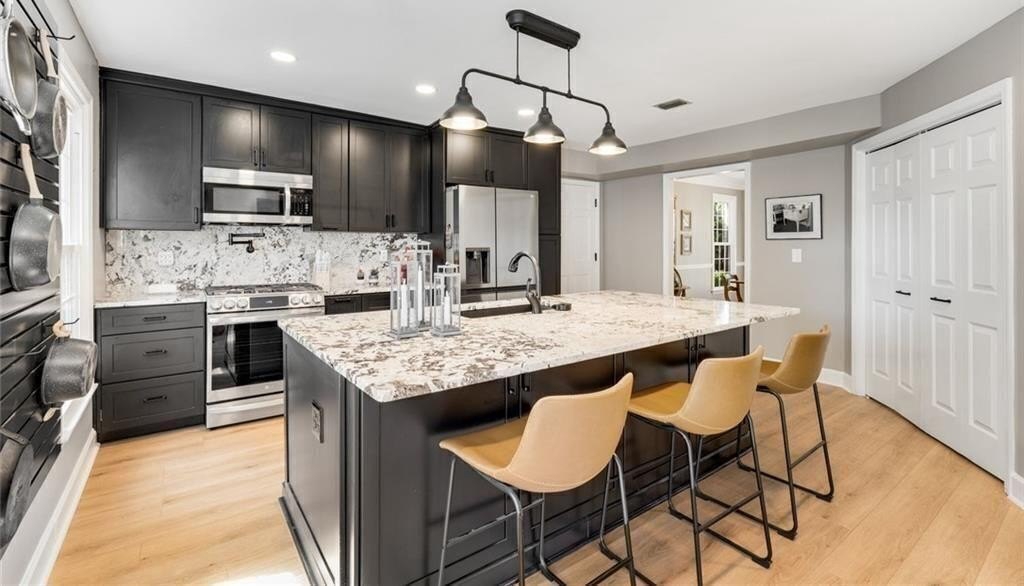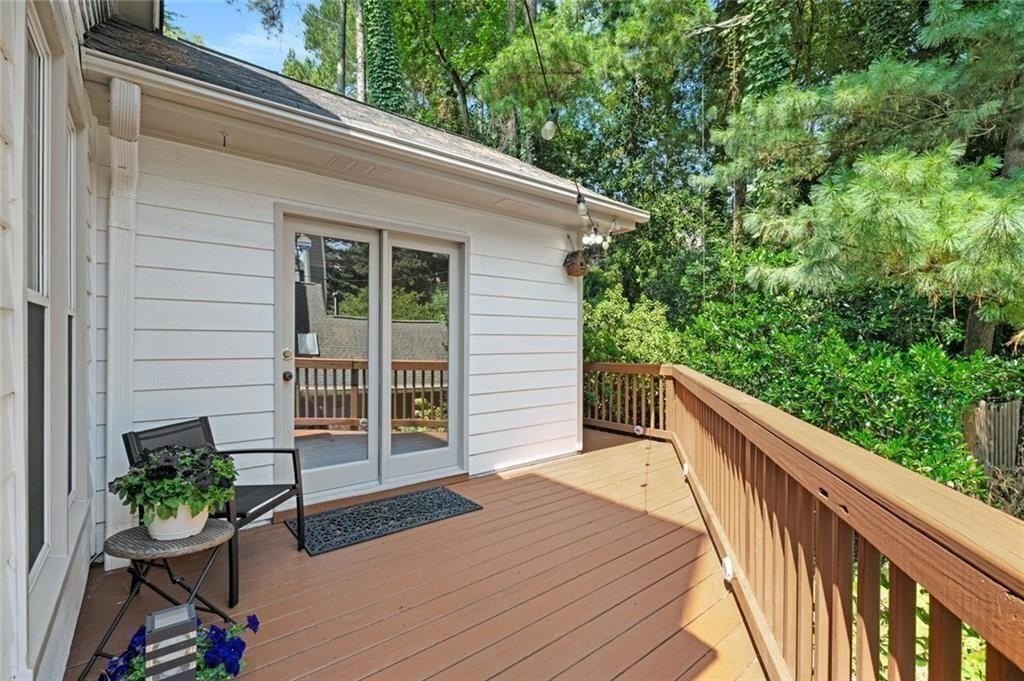 This traditional charmer is perfect and move in ready. Landscaped side garden entry welcomes you and guest. Front entry opens to a sunny, light filled foyer, a coat closet and powder room are also at the entry area. The spacious formal dining room, perfect for family gatherings and entertaining, has large windows with garden views. Recently renovated kitchen is a cook's delight. The center island, with custom stone countertop offers great counter space and custom cabinet storage on both sides. Professional grade stainless steel appliances include Miele dishwasher, a 5 burner gas-range/oven with a pot-filler, microwave oven vent system, and a French door LG refrigerator/freezer with ice/water in the door. Custom cabinetry offer soft open/ close drawers and doors, built-in spice storage pullouts and pullouts for additional kitchen essentials. There is a nice pantry cabinet that also has pull out shelves. Designer granite stone countertops and backsplash too! The sink has a garbage disposal, and a bar glass washer feature! A dry bar with granite countertops, custom storage and floating shelves make for great cocktail prep! There is a full size laundry closet in the kitchen with additional storage and shelving space. Access to the 2 Car garage with auto door is directly off the kitchen. Garage is oversized with ample storage areas. The great room / living room has a gas log fireplace with stab stone surround, two story ceilings, walls of windows and access to private deck area. There is a large walk-in storage closet that takes advantage of under stair space. The OWNERS RETREAT ON MAIN is fantastic. Step into a private sitting area or study space that flows into an oversized bedroom, An abundance of windows let in light, and double atrium doors lead out to the private deck and rear yard access. The owners bath has a walk-in closet, double vanities with cabinet storage, a jetted spa tub, and private water closet and shower area with custom tile, fixtures, lighting and hardware. A open stairway leads you to the second floor with a wide hallway that overlooks the family room below. There is a large walk-in Cedar Lined closet for additional storage. The secondary bedrooms are generous. One bedroom offers double closets, and the other has a private half bath. The hall bath has been recently renovated with designer tiles and hardware, a large shower with custom shower tower spray and shower head, custom vanity and lighting. The home has all new A PEX plumbing lines, newer main service line to house, new carpeting in all bedrooms, hardwood floors in living room, dining room and entry foyer, new flooring in kitchen, and hallway upstairs. The interior and exterior of the home have been recently painted. Move-in ready and enjoy living in one of Atlanta's best neighborhoods, Pine Hills. Shady Valley Park is just down the street with tennis courts and park and play areas. Close proximity to Buckhead, Brookhaven, and Intown dining and entertainment. The Emory Hospital, Children's,Hospital, and Emory Sports medicine are minutes away.