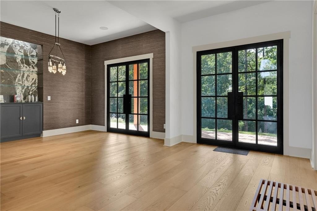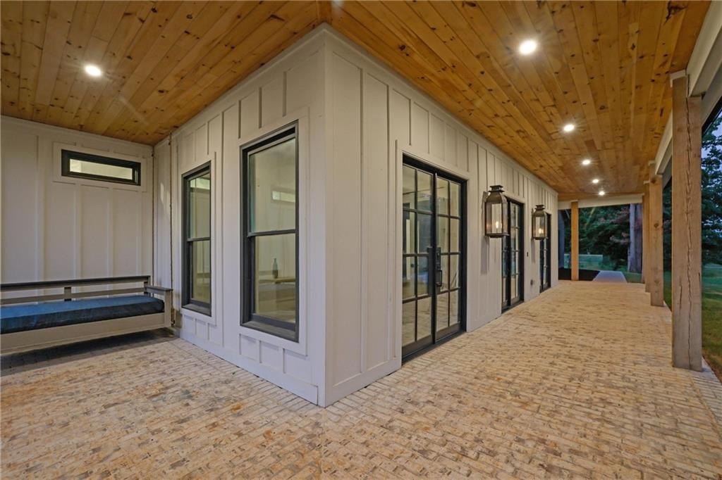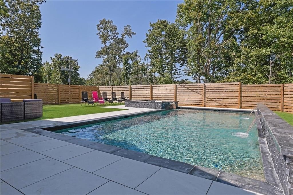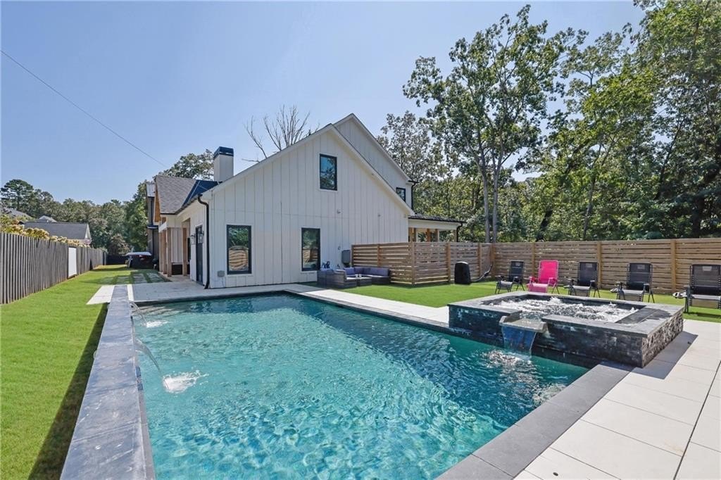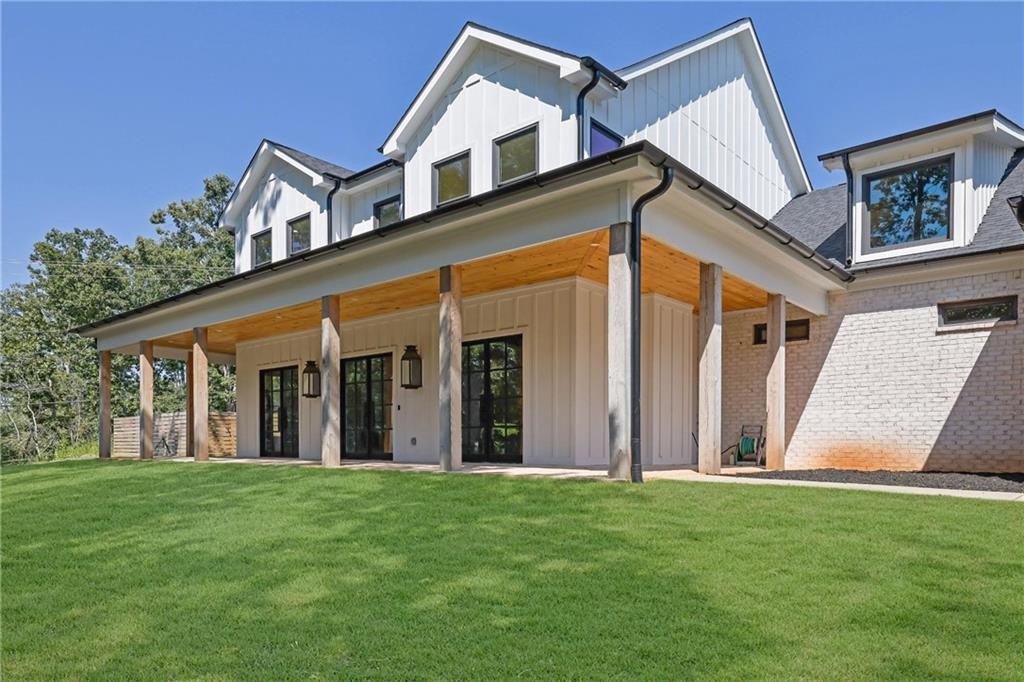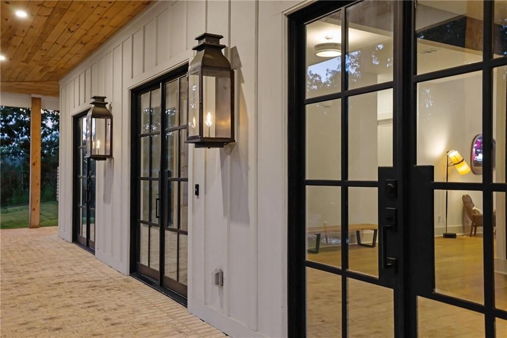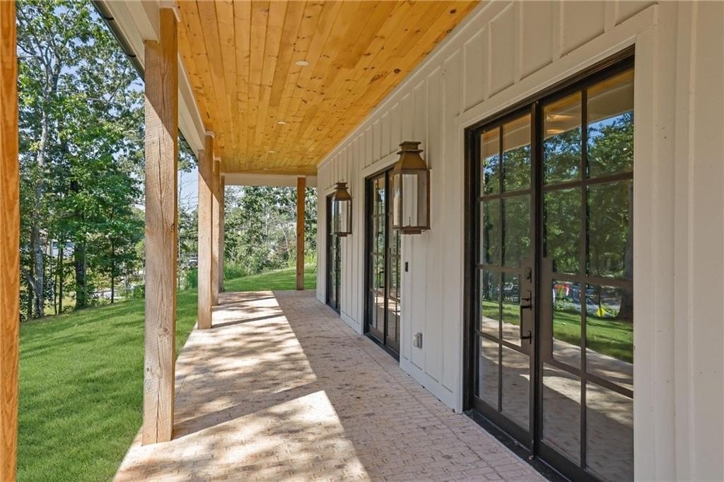 Looking for your own Oasis? This 5 Bedroom 5.5 Bathroom custom luxury home blends farmhouse warmth with European modern design inside and out. From the moment you arrive, the massive wraparound covered porch with gas lanterns, swing, and three sets of 8' custom iron doors set the tone. Inside, 8" European white oak hardwoods flow throughout. The dining room stands out with built-in cabinetry, textured wallpaper, and custom lighting, while the office offers a brick accent wall, abundant natural light, and a generous closet. The great room features a soaring fireplace finished in Italian porcelain up to the vaulted ceiling, a rustic wood mantle, and oversized windows. The gourmet kitchen is both striking and functional, highlighted by French medicine cabinets, Italian porcelain backsplash to the ceiling, and premium Smeg range and double oven. The oversized quartz waterfall island includes a composite sink and industrial Delta faucet. A separate butler's prep area adds leathered granite, beverage fridge, brick accent wall, and connects to a spacious walk-in pantry with wood shelving. Convenience continues with a laundry/mudroom attached to the 3+ car garage, featuring stone and butcher block counters, custom porcelain drop zone, and extra cabinets. This wing also includes a private guest suite with a full bath, perfect for visitors or a second office. The primary suite offers a true retreat with a dual rainhead porcelain shower, soaking tub, oversized floor tiles, dual vanities, and a massive walk-in closet. Upstairs are three additional bedrooms, a custom bath with oversized glass shower and dual vanities, plus two hidden rooms behind moving shelves, one serving as a tech hub and the other as a secret playroom. Over the garage, a private stairway leads to a huge flex space with a full bath, ideal as a media room, gym, rec room, or in-law suite. Step outside to a covered patio with a full outdoor kitchen, built-in grill by BBQ Boys, vent hood, and stone prep counters. An outdoor fireplace with TV mount makes it an all-season space. Beyond, the heated saltwater pool and spa with privacy fencing create a backyard oasis. Additional highlights include custom lighting and fans, tankless water heaters, three HVAC systems, built-in Sonos, low-voltage wiring, whole-house tech package, and attic storage. The oversized garage easily accommodates a boat, motorcycles, or ATVs. With Easy Access to HWY 400, Lake Lanier, Dawsonville Outelts, and The Cumming City Center, its no wonder why this home is The Perfect Oasis you have been looking for.
