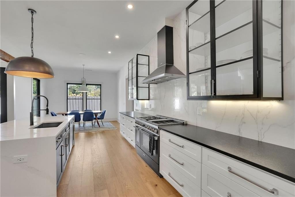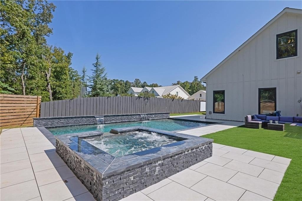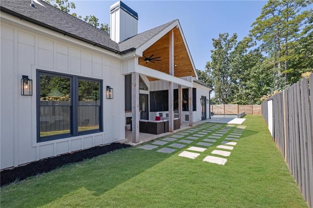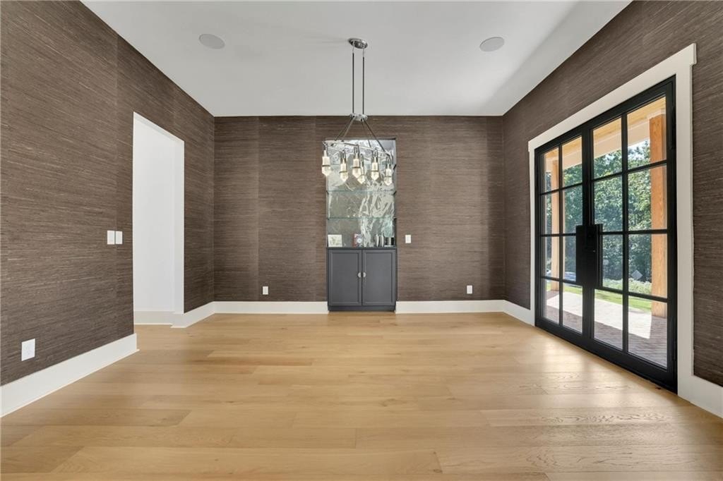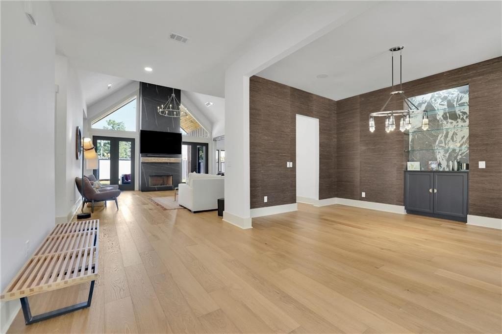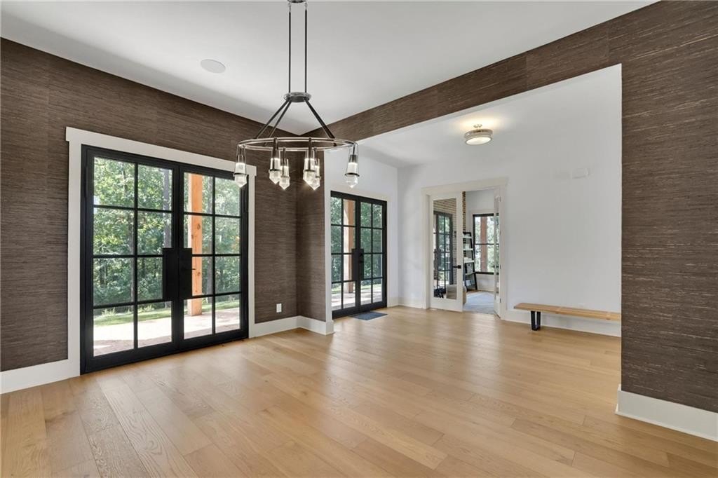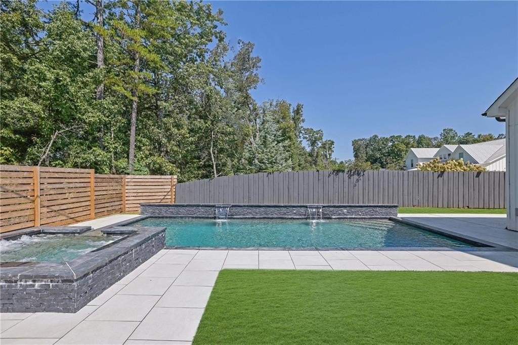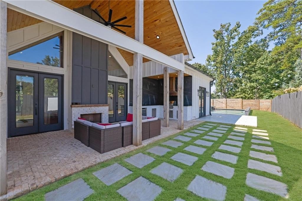 Looking for your own Oasis? This 5 Bedroom 5.5 Bathroom custom luxury home blends farmhouse warmth with European modern design inside and out. From the moment you arrive, the massive wraparound covered porch with gas lanterns, swing, and three sets of 8' custom iron doors set the tone. Inside, 8" European white oak hardwoods flow throughout. The dining room stands out with built-in cabinetry, textured wallpaper, and custom lighting, while the office offers a brick accent wall, abundant natural light, and a generous closet. The great room features a soaring fireplace finished in Italian porcelain up to the vaulted ceiling, a rustic wood mantle, and oversized windows. The gourmet kitchen is both striking and functional, highlighted by French medicine cabinets, Italian porcelain backsplash to the ceiling, and premium Smeg range and double oven. The oversized quartz waterfall island includes a composite sink and industrial Delta faucet. A separate butler's prep area adds leathered granite, beverage fridge, brick accent wall, and connects to a spacious walk-in pantry with wood shelving. Convenience continues with a laundry/mudroom attached to the 3+ car garage, featuring stone and butcher block counters, custom porcelain drop zone, and extra cabinets. This wing also includes a private guest suite with a full bath, perfect for visitors or a second office. The primary suite offers a true retreat with a dual rainhead porcelain shower, soaking tub, oversized floor tiles, dual vanities, and a massive walk-in closet. Upstairs are three additional bedrooms, a custom bath with oversized glass shower and dual vanities, plus two hidden rooms behind moving shelves, one serving as a tech hub and the other as a secret playroom. Over the garage, a private stairway leads to a huge flex space with a full bath, ideal as a media room, gym, rec room, or in-law suite. Step outside to a covered patio with a full outdoor kitchen, built-in grill by BBQ Boys, vent hood, and stone prep counters. An outdoor fireplace with TV mount makes it an all-season space. Beyond, the heated saltwater pool and spa with privacy fencing create a backyard oasis. Additional highlights include custom lighting and fans, tankless water heaters, three HVAC systems, built-in Sonos, low-voltage wiring, whole-house tech package, and attic storage. The oversized garage easily accommodates a boat, motorcycles, or ATVs. With Easy Access to HWY 400, Lake Lanier, Dawsonville Outelts, and The Cumming City Center, its no wonder why this home is The Perfect Oasis you have been looking for.
