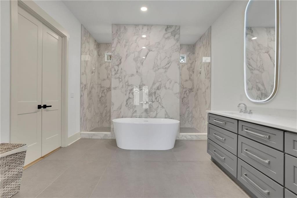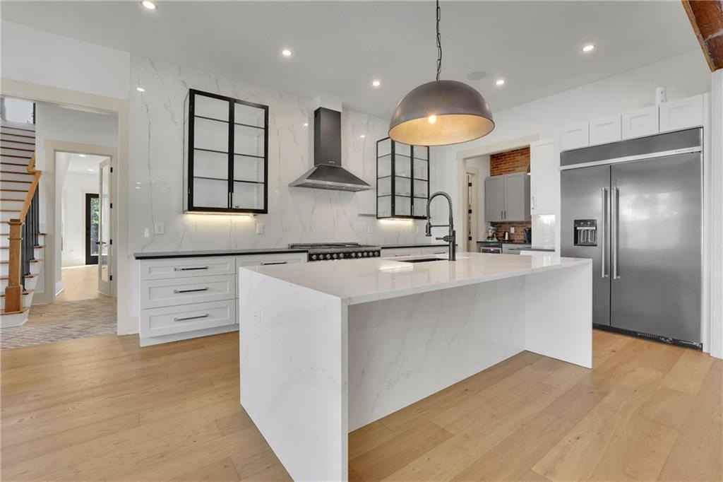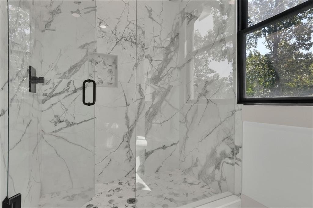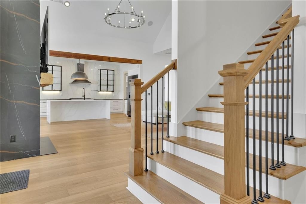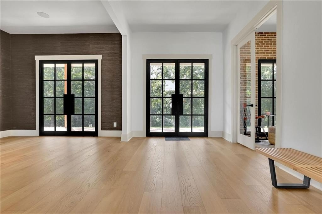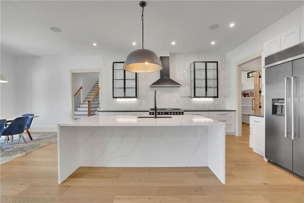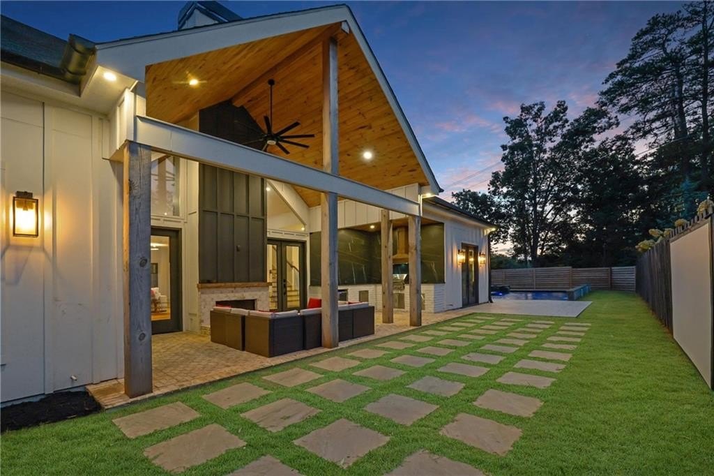 Looking for your own Oasis? This 5 Bedroom 5.5 Bathroom custom luxury home blends farmhouse warmth with European modern design inside and out. From the moment you arrive, the massive wraparound covered porch with gas lanterns, swing, and three sets of 8' custom iron doors set the tone. Inside, 8" European white oak hardwoods flow throughout. The dining room stands out with built-in cabinetry, textured wallpaper, and custom lighting, while the office offers a brick accent wall, abundant natural light, and a generous closet. The great room features a soaring fireplace finished in Italian porcelain up to the vaulted ceiling, a rustic wood mantle, and oversized windows. The gourmet kitchen is both striking and functional, highlighted by French medicine cabinets, Italian porcelain backsplash to the ceiling, and premium Smeg range and double oven. The oversized quartz waterfall island includes a composite sink and industrial Delta faucet. A separate butler's prep area adds leathered granite, beverage fridge, brick accent wall, and connects to a spacious walk-in pantry with wood shelving. Convenience continues with a laundry/mudroom attached to the 3+ car garage, featuring stone and butcher block counters, custom porcelain drop zone, and extra cabinets. This wing also includes a private guest suite with a full bath, perfect for visitors or a second office. The primary suite offers a true retreat with a dual rainhead porcelain shower, soaking tub, oversized floor tiles, dual vanities, and a massive walk-in closet. Upstairs are three additional bedrooms, a custom bath with oversized glass shower and dual vanities, plus two hidden rooms behind moving shelves, one serving as a tech hub and the other as a secret playroom. Over the garage, a private stairway leads to a huge flex space with a full bath, ideal as a media room, gym, rec room, or in-law suite. Step outside to a covered patio with a full outdoor kitchen, built-in grill by BBQ Boys, vent hood, and stone prep counters. An outdoor fireplace with TV mount makes it an all-season space. Beyond, the heated saltwater pool and spa with privacy fencing create a backyard oasis. Additional highlights include custom lighting and fans, tankless water heaters, three HVAC systems, built-in Sonos, low-voltage wiring, whole-house tech package, and attic storage. The oversized garage easily accommodates a boat, motorcycles, or ATVs. With Easy Access to HWY 400, Lake Lanier, Dawsonville Outelts, and The Cumming City Center, its no wonder why this home is The Perfect Oasis you have been looking for.