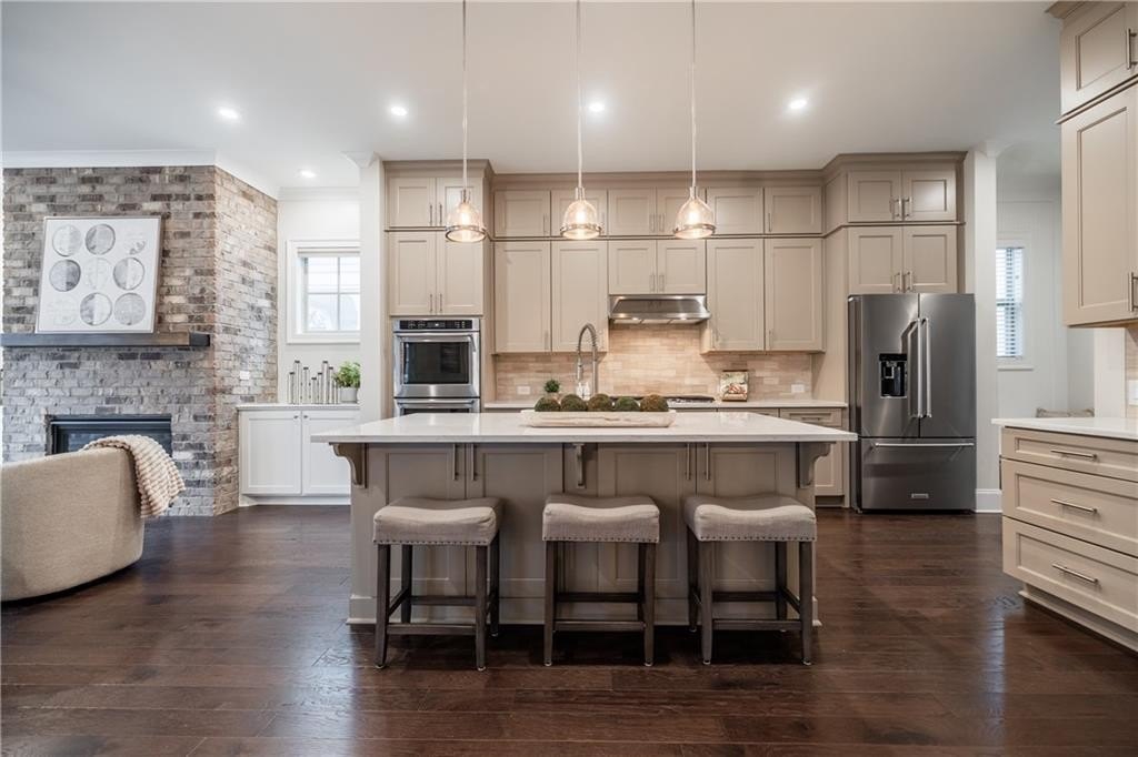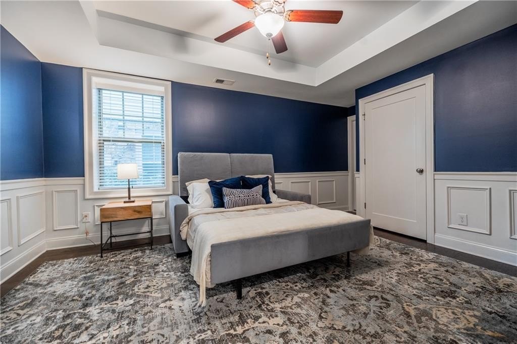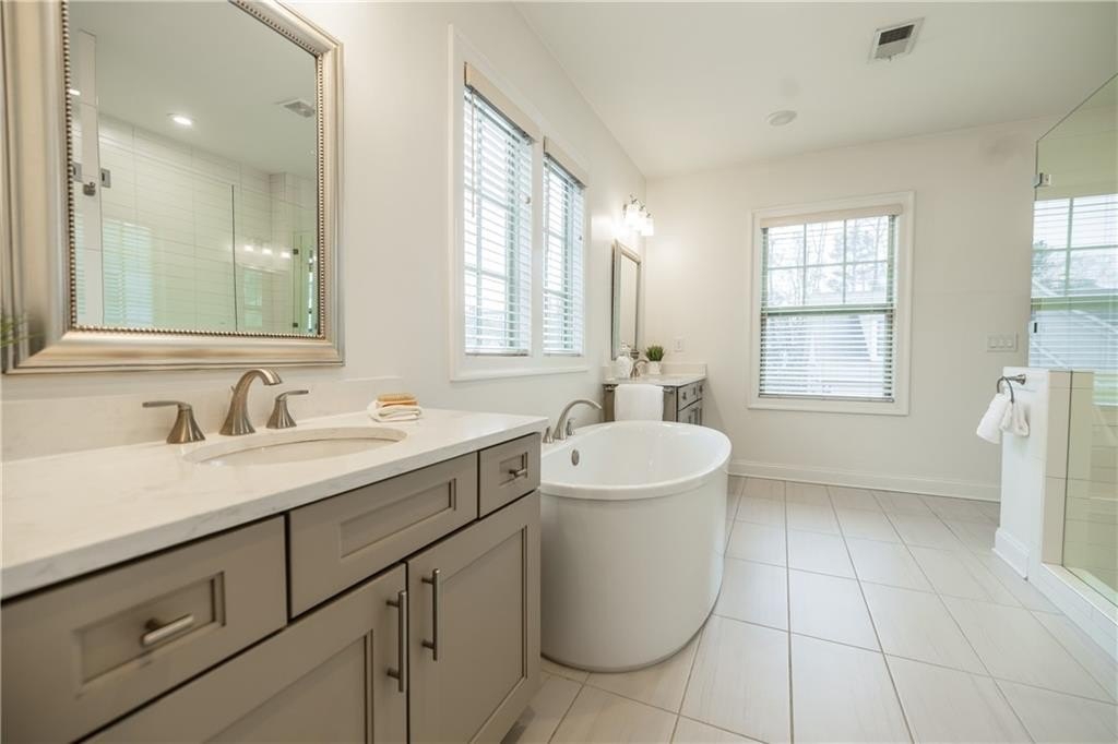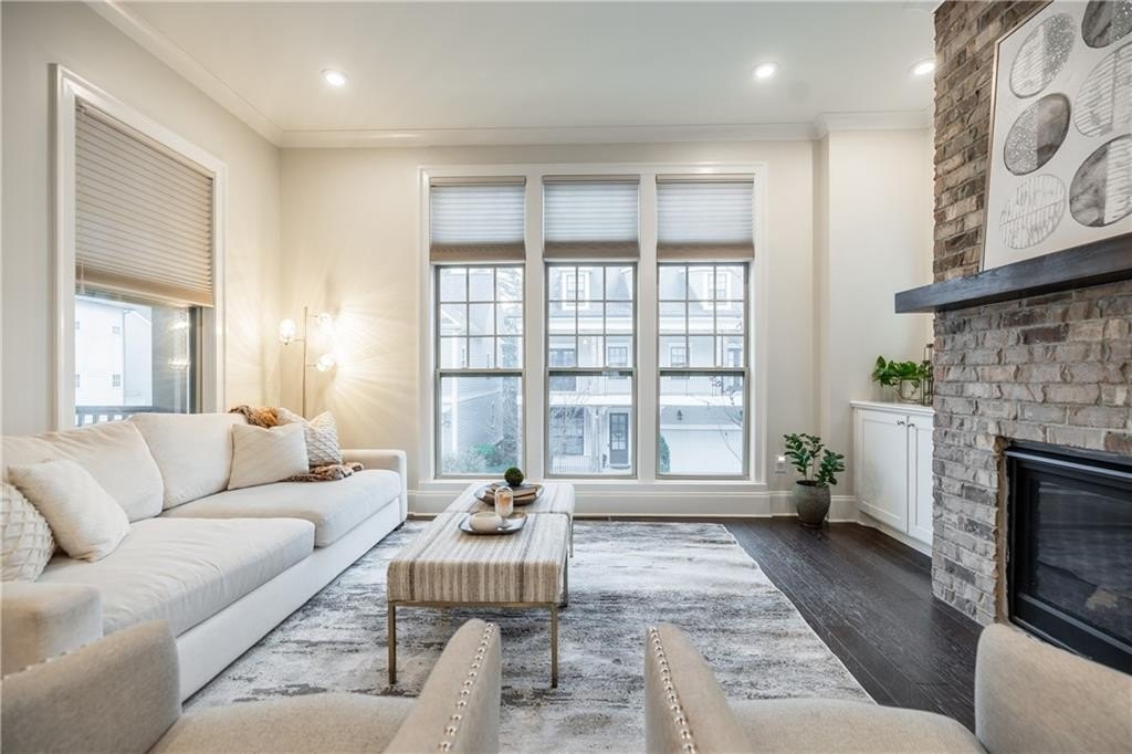 Enjoy easy, low-maintenance living in the heart of Sandy Springs-just steps from City Springs, shopping, dining, and all the action! This like-new John Wieland home in a gated swim community offers three beautifully finished levels, completely move-in ready. Sunlight pours through the floor to ceiling windows highlighting the gorgeous architectural details and hardwoods throughout. The main level offers an open concept from a stunning chef's kitchen-with quartz island, built-in pantry, and bar-into the fireside great room and spacious dining area. Step outside to the charming, covered porch, perfect for coffee or cocktails. A two-car garage opens into a handy mudroom for everyday convenience. Upstairs, a bright loft is ideal for a home office or flex space, while the spacious primary suite wows with a trey ceiling, spa-like bath with dual quartz vanities, soaking tub, oversized shower with seat, and large walk-in closet. Two additional bedrooms share a Jack-and-Jill bath, and the laundry room is just steps away. The full daylight terrace level offers a warm welcome to guests, with a bonus entertaining room and private guest suite. Turnkey, low-maintenance, and in a quiet, walkable community with a pool-this home puts the best of Sandy Springs right at your doorstep.
