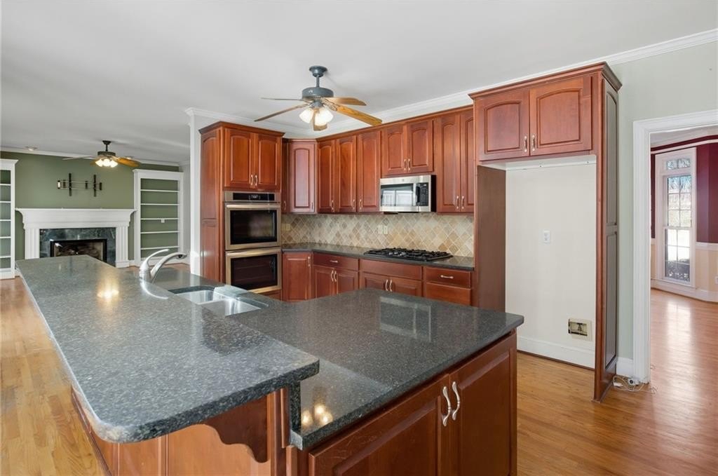 Tucked away on a quiet, double cul-de-sac street is the stately traditional home you have been waiting for. This 3-sided brick home, with newer roof and exterior paint, has a stunning presence from the street, and the interior is no exception. Step into the soaring 2-story foyer with arched window and flanked on either side by formal dining and living rooms with beautiful bay windows. The formal living room can also serve as a home office space with french doors added for privacy. The family room and kitchen are open to each other, allowing plenty of space for large gatherings when entertaining space inevitably spills over into the kitchen. Updated appliances, gas cooktop, center island, and ample cabinet space make this one of the most functional kitchens you will find. One of the most unique features of this home is the sunroom, connected to the eat-in kitchen and family room. Flooded with natural light, this cozy room is a great spot to enjoy your morning coffee and get energized for the day. This space would also make a great home office or a playroom. Upstairs there are five bedrooms including a master suite and enormous bonus room with two closets. The nearby rear entry staircase makes this room a great option for someone who comes and goes often. The finished basement provides extra versatility as a man cave, teen hangout, or simply an extra family space. The fireplace makes this an especially cozy space to unwind. There is also ample unfinished storage space with work bench and wood shelving. The large deck and fenced, level backyard round out this home's appeal. Living in Brookstone means resort style amenities, a vibrant social scene, popular schools, and a welcoming community with friendly neighbors. Multiple grocery stores, drug stores, banks, and restaurants are within a 5-minute drive of the property, by car or golf cart!
