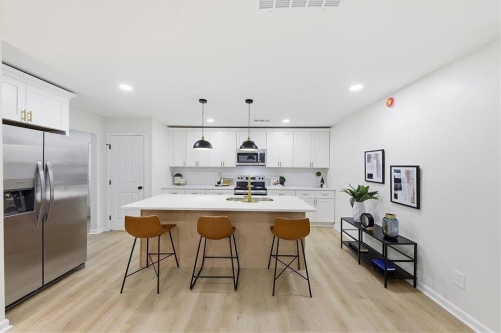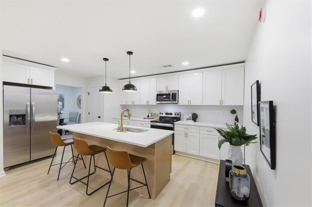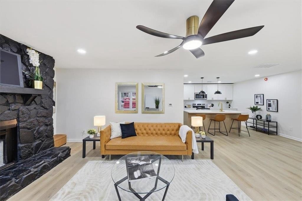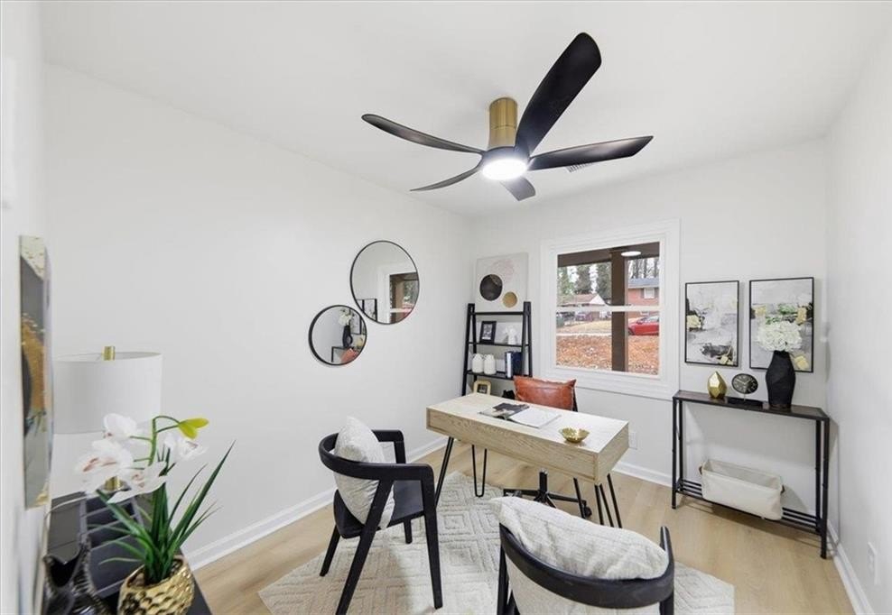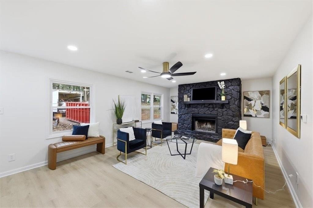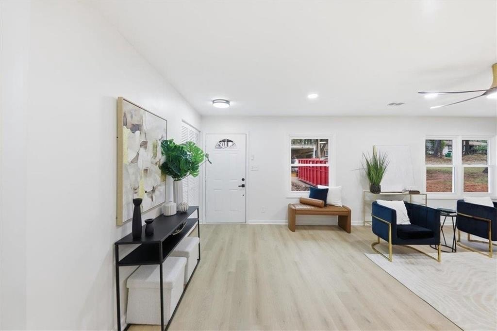 Welcome home to this thoughtfully updated brick ranch where timeless charm meets modern comfort. Step into a light-filled living space that flows effortlessly into the dining area and a sleek, contemporary kitchen, perfect for everyday living and effortless entertaining. The kitchen is appointed with stainless steel appliances, quartz countertops, soft-close white shaker cabinetry and a walk-in pantry. The primary suite is a true retreat, offering a private ensuite bath with a beautifully tiled walk-in shower and dual vanities. Two additional bedrooms are generously sized and share a stylish guest bath featuring a tiled tub/shower combination. This home offers peace of mind with extensive upgrades throughout, including a new roof, new windows, durable luxury vinyl plank flooring, updated lighting and ceiling fans, new HVAC System, New Water Heater and fresh interior and exterior paint. Step outside to a fully fenced backyard, ideal for hosting gatherings, enjoying quiet evenings, or creating your own outdoor oasis. Perfectly situated just minutes from Stone Mountain Park, Atlanta, and major highways including Hwy 78, I-285, and I-20, this move-in-ready home delivers both comfort and convenience.