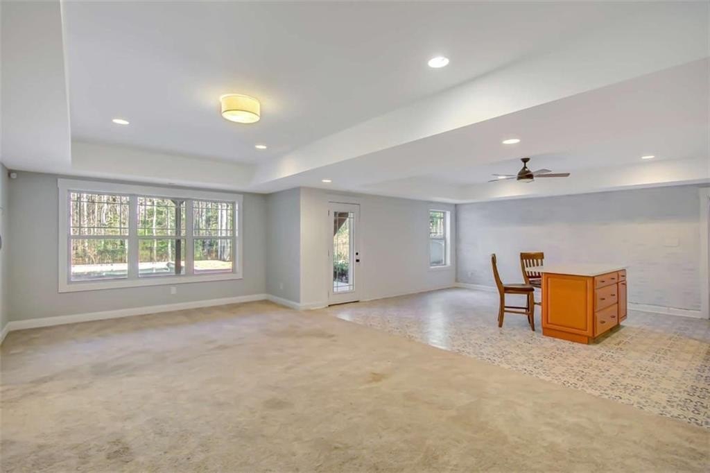 Move-in ready and offering approximately 4,900+ sq ft, this stunning home is nestled on nearly 3 private acres in a quiet neighborhood, blending elegance with everyday comfort. A long driveway leads to a side-entry garage, enhancing both curb appeal and convenience. The main level features soaring 10-foot ceilings and a light-filled great room with a fireplace, seamlessly connected to the chef's kitchen with stainless steel appliances, an oversized island, quartz countertops, and a cozy corner breakfast nook. A versatile dining room adds charm and flexibility. The main-level owner's suite is a true retreat, showcasing a spa-like bath with dual vanities, a soaking tub, a separate shower, and a walk-in closet. Two additional bedrooms, a full hall bath, and a laundry room complete this level. Upstairs, you'll find a spacious bonus room or office, an additional bedroom, and a full bath. The finished terrace level expands your living space with a bonus room, bath, playroom, and a family room with kitchenette, plus generous storage-ideal for guests or multi-generational living. Step out to the screened porch for year-round enjoyment. Outdoor living shines with a fabulous in-ground pool, while the expansive backyard still offers plenty of room for play. A newer roof (less than 3 years old) adds peace of mind. Located on a lovely, quiet street yet convenient to area amenities, this home truly has it all.