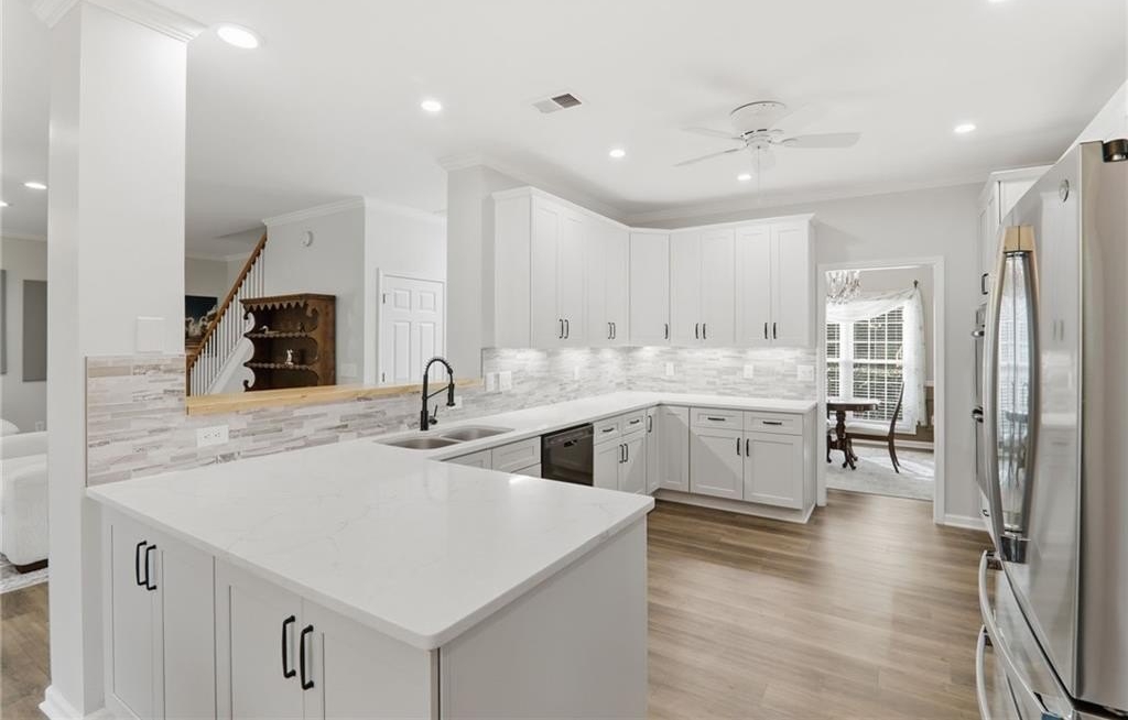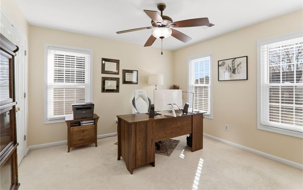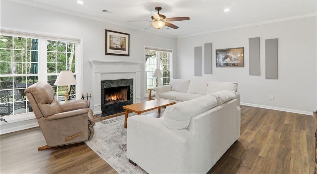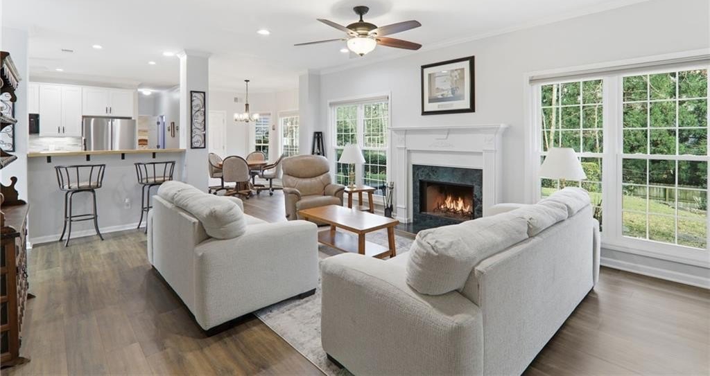 Welcome to 1555 Vine Leaf Drive an impeccably maintained brick beauty in one of Hillgrove's fabulous swim communities. The home's timeless curb appeal continues inside with sun filled formal spaces, an updated kitchen with all the bells and whistles, and an inviting fireside living room overlooking the private, landscaped backyard. EVERY MAJOR UPDATE HAS ALREADY BEEN DONE! Including a full home poly piping replacement which you never find! Truly turnkey and designed for effortless luxury. You simply won't find a better kept home! Flexible spaces throughout include multiple office/flex rooms, a spacious primary suite with a sitting area, generous secondary bedrooms, and a second bonus living room. A rare main level bedroom offers exceptional flexibility and includes thoughtfully designed grab bars, perfect for multigenerational living or long term convenience. Set on a level, beautifully landscaped lot and with a second parking pad continues through the fenced yard. Minutes from top West Cobb schools, shopping, and dining. This home delivers elegance, comfort, and peace of mind at every turn. Everything is done. Simply move in and enjoy.