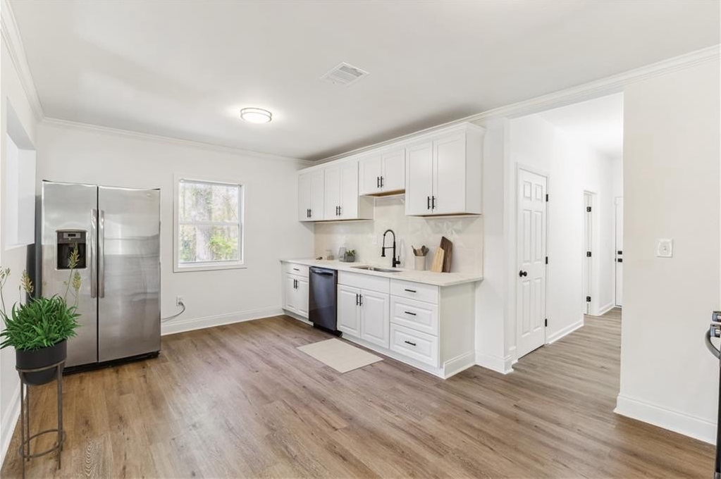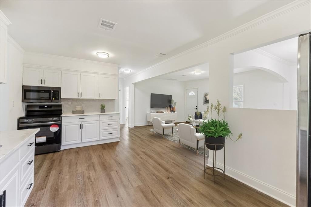 Fully renovated and ideally located in the heart of Historic Collier Heights, this move-in-ready home offers exceptional convenience to I-20 & I-285, downtown Atlanta, the Beltline, Westside Park, Hartsfield-Jackson International Airport, shopping, dining, and transit. The spacious family room is bathed in natural light and flows seamlessly into the open kitchen, creating an inviting space for everyday living and entertaining. The kitchen features new quartz countertops, new cabinetry, and stainless steel appliances and flows directly to a generous dining room, enhancing the home's open, well-connected floor plan. A thoughtfully designed, roommate-friendly layout adds flexibility and future rental potential. Updates throughout include a new roof (2025), new HVAC system, new LVP flooring, and beautifully updated bathrooms with new tile showers in both the primary and hallway baths. Outside, enjoy an excellent level and private backyard with a recently stained deck-perfect for grilling, relaxing, or spending time outdoors. Blending classic charm with modern style, this turnkey home is one you won't want to miss.