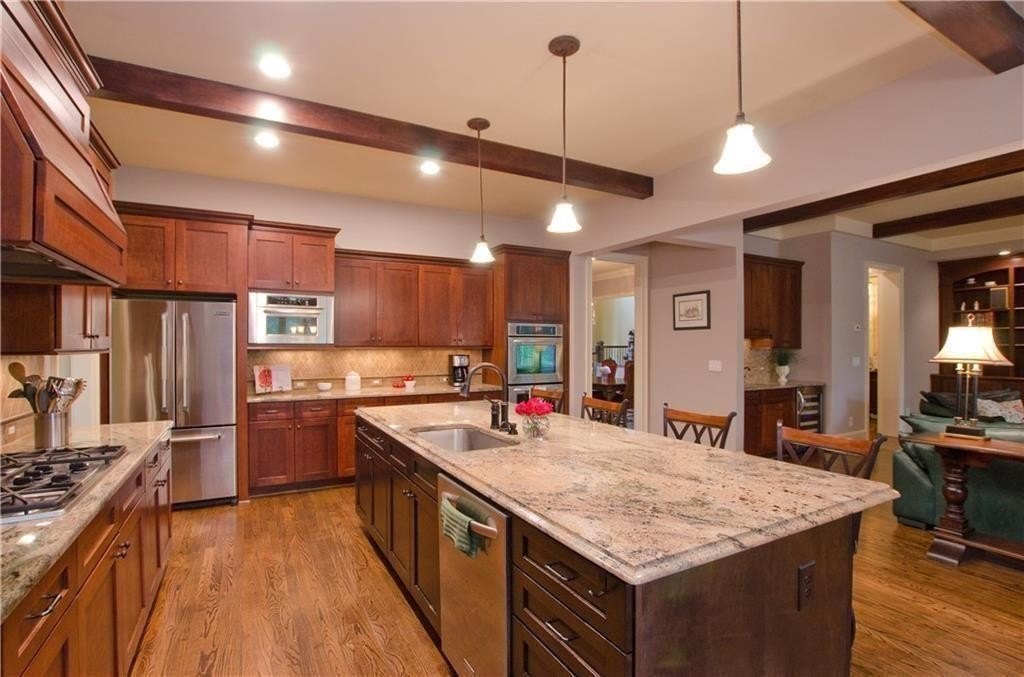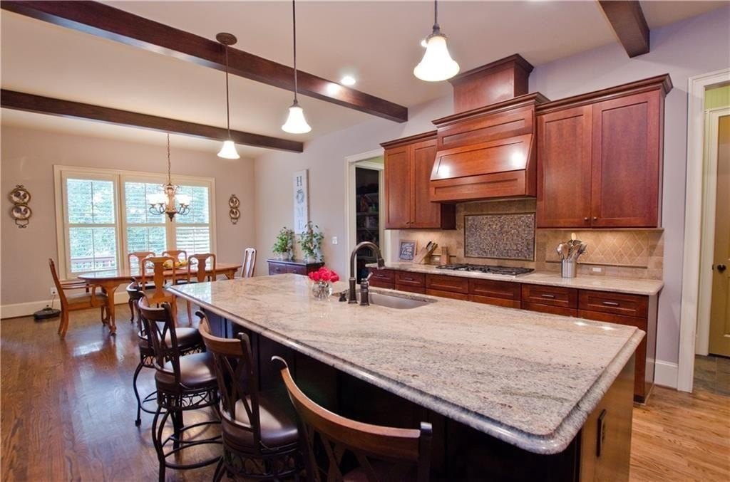 Location, Location, Location! Discover timeless Sophistication in this exceptional Monte Hewett-built brick home offers timeless elegance, exceptional craftsmanship, and thoughtful upgrades throughout. Ideally located with easy access to Truist Park, The Battery, Home Depot HQ, major highways, shopping, and dining-this home truly has it all. This stately residence exudes craftmanship and style across all three levels, with rich hardwood floors, soaring ceilings, custom millwork. A welcoming two-story foyer leads to a spacious, open floor plan designed for refined living and effortless entertaining. A formal dining room with a butler's pantry offers the ideal setting for elegant dinner parties, while a private home office with custom built-ins bookcases provides both functionality and charm perfect for work from home professionals. At the heart of the home is a chefs dream kitchen featuring stainless steel appliances, double ovens, stained cabinetry, granite countertops, a large center island, and a generous walk-in pantry. The kitchen flows seamlessly into the impressive great room, complete with exposed wood beams, a striking stone fireplace with gas logs, custom built-ins bookcases, a wall of windows and a wet bar with a wine cooler. Retreat upstairs to a luxurious primary suite complete with a private sitting area, trey ceiling, and spa-inspired bath featuring dual vanities, a whirlpool tub, frameless glass shower, and a fully customized walk-in closet. Three additional spacious bedrooms ensure versatility for family, guests, or a second office. The fully finished terrace level-featuring a custom bar, wine cellar, fireside den with built-ins bookcases, exercise room, full bath, and a spacious game/billiards room for hosting in style. Seamless indoor-outdoor living includes a serene, screened porch, open-air deck, and a lower-level patio overlooking the professionally landscaped, irrigated yard-your private oasis in the city. This distinguished home combines elegance, comfort, and convenience in a premier community-offering a lifestyle of true luxury