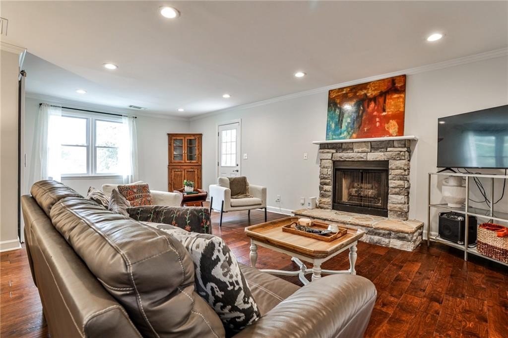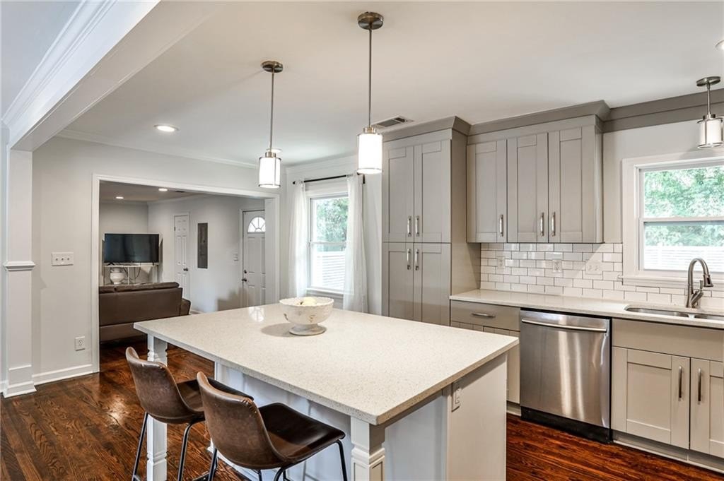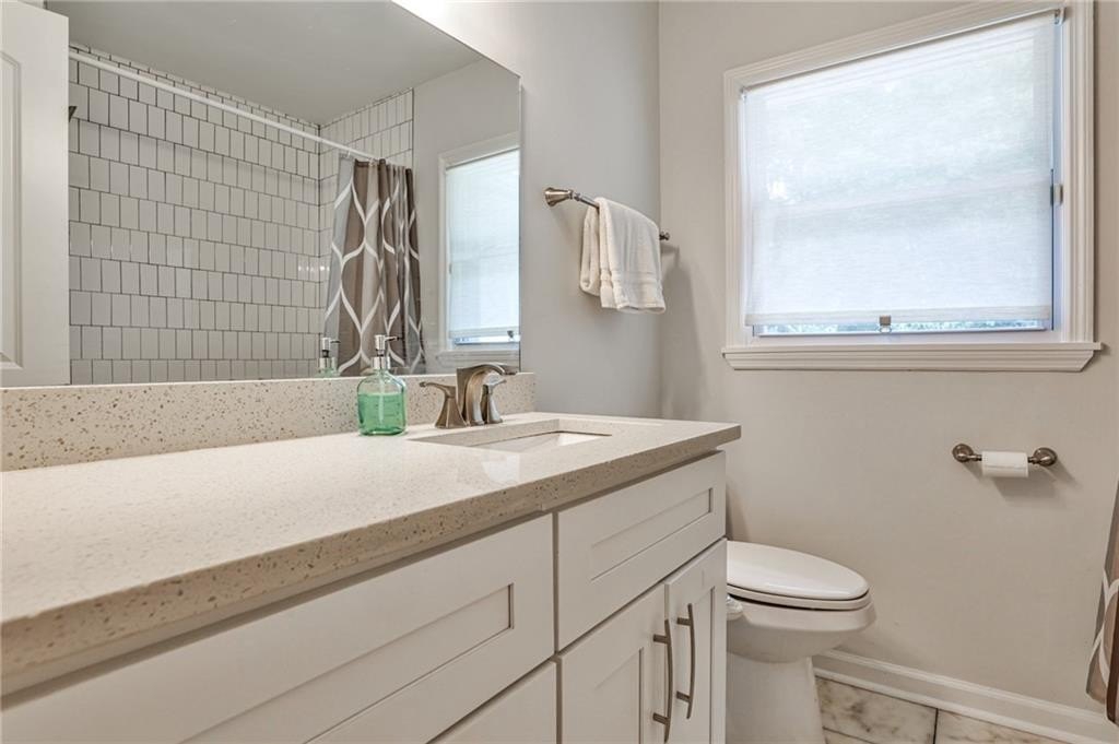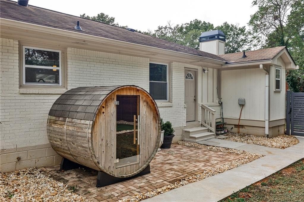 Welcome to Meadowbrook Acres - A Modern White Brick Ranch Retreat Step into this beautifully reimagined ranch that perfectly balances timeless style with modern comforts. The stunning white brick exterior and oversized covered front porch set the tone for relaxed living, offering the ideal spot to unwind at the end of the day. Inside, you'll find a bright, open-concept layout designed for both everyday living and entertaining. The chef's kitchen boasts quartz countertops, a spacious island, gray cabinetry, stainless steel appliances, and a sleek subway tile backsplash. Flow seamlessly into the expansive den, featuring a stone fireplace, recessed lighting, and convenient half bath-a space that's equal parts cozy and versatile. The primary suite is a true retreat, complete with a spa-like bathroom showcasing a dual-sink vanity and oversized shower with distressed wood-look tile. But the real showstoppers are outside. This property offers a private putting green, perfect for golf enthusiasts, and a custom sauna, where you can relax and recharge year-round. The large, climate-controlled 22 x 13 outbuilding with full electrical is currently used as a music studio, but it could easily transform into a home gym, creative studio, or kids' den. Enjoy peace of mind with systems and updates: HVAC, windows, roof, water heater, electrical, plumbing, walkways, and driveway, plus fresh interior and exterior paint. The modern, low-maintenance privacy fence makes the backyard feel like your own private resort. All of this in a prime location-just minutes from Downtown Decatur, shopping, restaurants, and easy access to 285. This isn't just a house, it's a lifestyle-sauna, putting green, and all.
