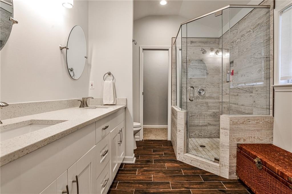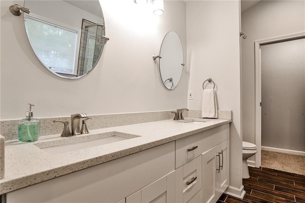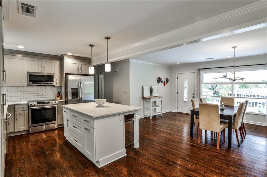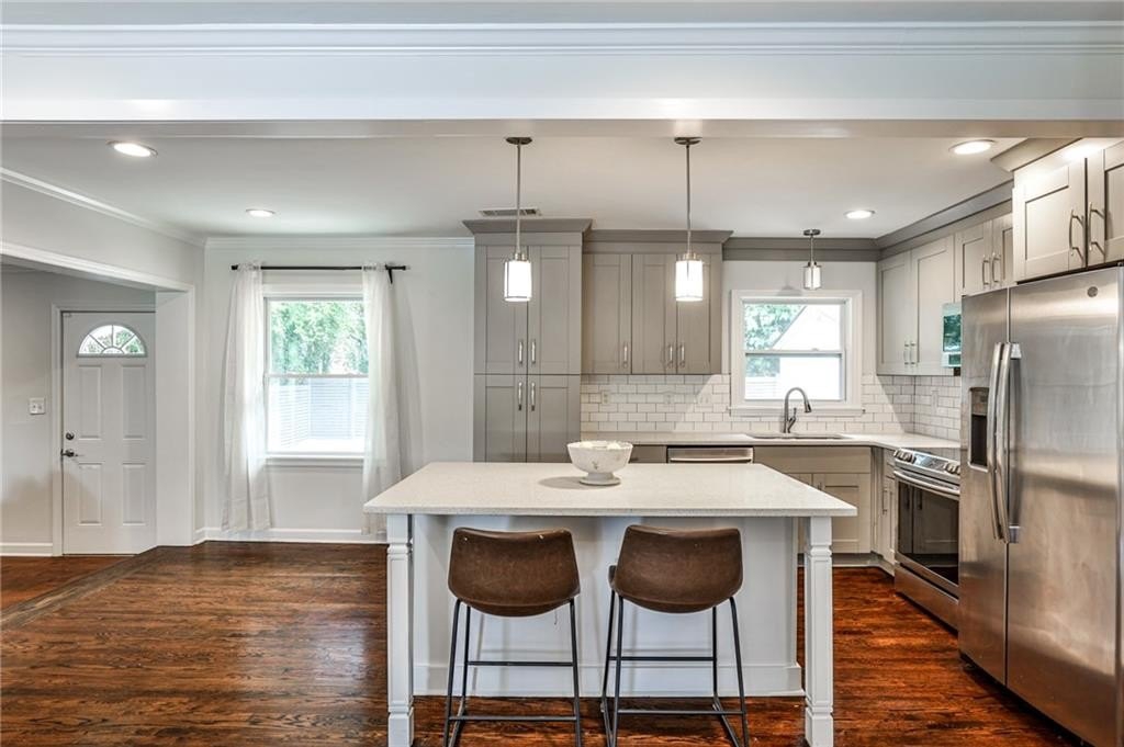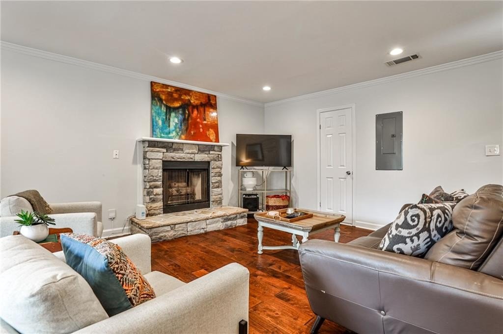 Welcome to Meadowbrook Acres - A Modern White Brick Ranch Retreat Step into this beautifully reimagined ranch that perfectly balances timeless style with modern comforts. The stunning white brick exterior and oversized covered front porch set the tone for relaxed living, offering the ideal spot to unwind at the end of the day. Inside, you'll find a bright, open-concept layout designed for both everyday living and entertaining. The chef's kitchen boasts quartz countertops, a spacious island, gray cabinetry, stainless steel appliances, and a sleek subway tile backsplash. Flow seamlessly into the expansive den, featuring a stone fireplace, recessed lighting, and convenient half bath-a space that's equal parts cozy and versatile. The primary suite is a true retreat, complete with a spa-like bathroom showcasing a dual-sink vanity and oversized shower with distressed wood-look tile. But the real showstoppers are outside. This property offers a private putting green, perfect for golf enthusiasts, and a custom sauna, where you can relax and recharge year-round. The large, climate-controlled 22 x 13 outbuilding with full electrical is currently used as a music studio, but it could easily transform into a home gym, creative studio, or kids' den. Enjoy peace of mind with systems and updates: HVAC, windows, roof, water heater, electrical, plumbing, walkways, and driveway, plus fresh interior and exterior paint. The modern, low-maintenance privacy fence makes the backyard feel like your own private resort. All of this in a prime location-just minutes from Downtown Decatur, shopping, restaurants, and easy access to 285. This isn't just a house, it's a lifestyle-sauna, putting green, and all.