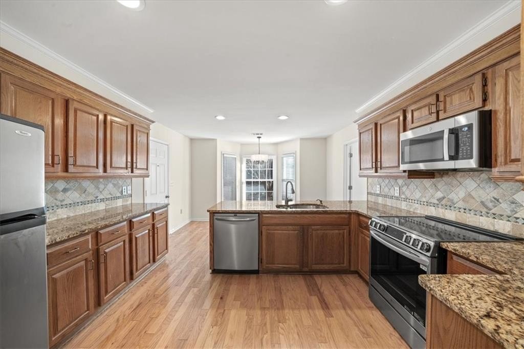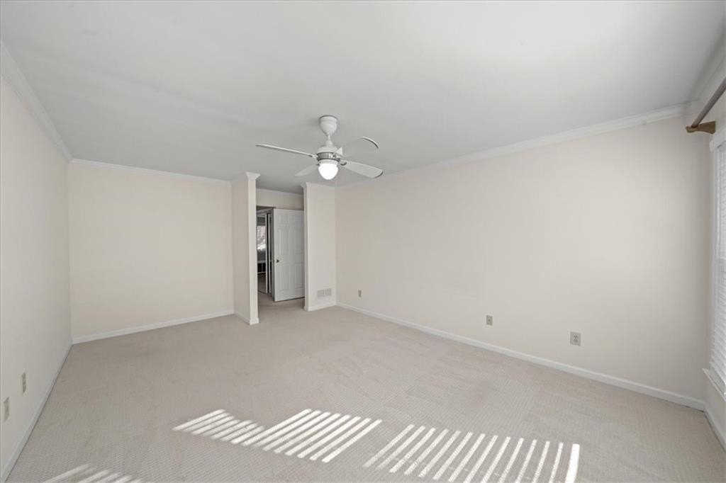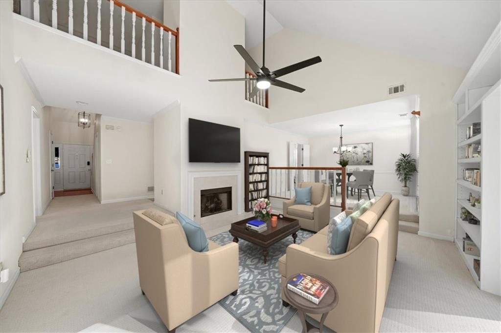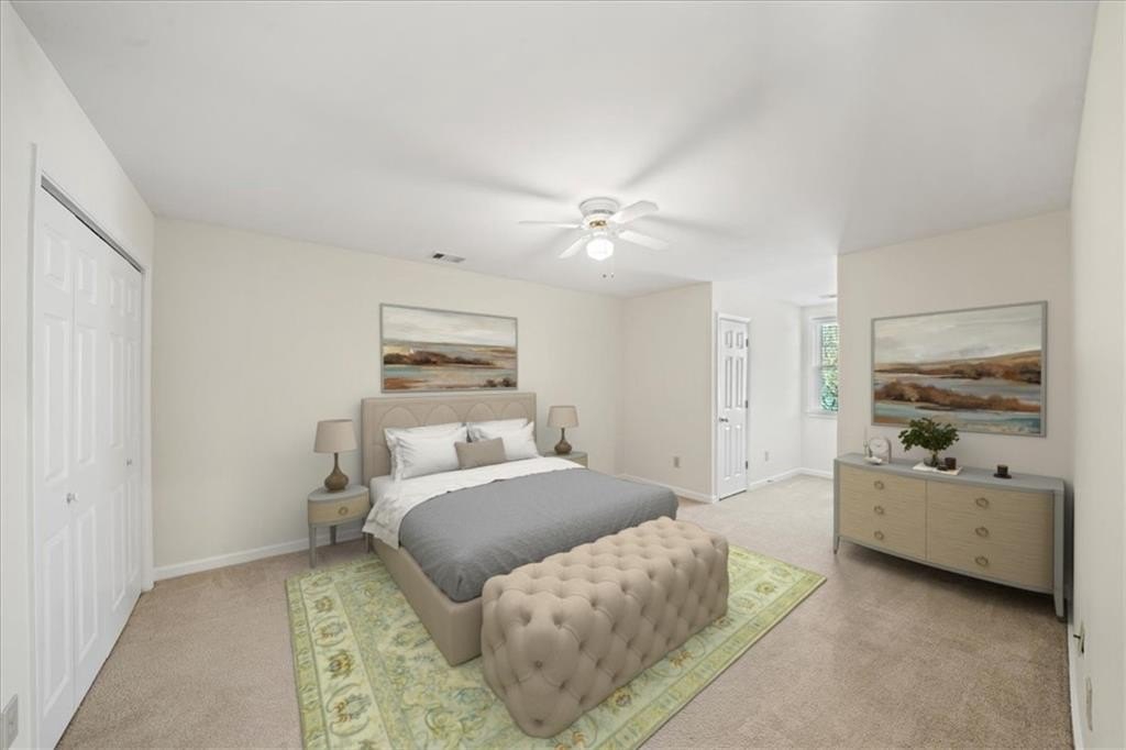 This sun-filled end-unit brick townhome showcases the largest and most desirable floor plan in the community, offering a smart, highly functional layout designed for everyday living and easy entertaining. The primary suite is conveniently located on the main level and features a beautifully renovated bath, creating a private retreat you'll love coming home to. Upstairs, three spacious bedrooms and a full bath provide incredible flexibility for guests, home offices, or growing households. Abundant natural light pours in throughout the home, highlighting the generous living spaces and thoughtful design. Recent updates include brand-new HVAC systems, a tankless water heater, fresh interior paint, updated lighting, and the renovated primary bath, making this home truly move-in ready. The eat-in kitchen features hardwood floors, stainless steel appliances, and flows seamlessly into a separate dining room and an inviting family room with custom built-in bookshelves. Sliding doors lead to a private, fenced garden patio-perfect for morning coffee, evening wine, or entertaining friends. Additional highlights include ample storage with large closets and a two-car, kitchen-level garage for everyday convenience. This is easy living with space, light, and comfort-all wrapped in a low-maintenance lifestyle. The community includes a pool and lake. The association covers exterior building maintenance and common areas, excluding the private courtyard, allowing for low-maintenance living. Conveniently located near shopping and dining in Peachtree Corners.