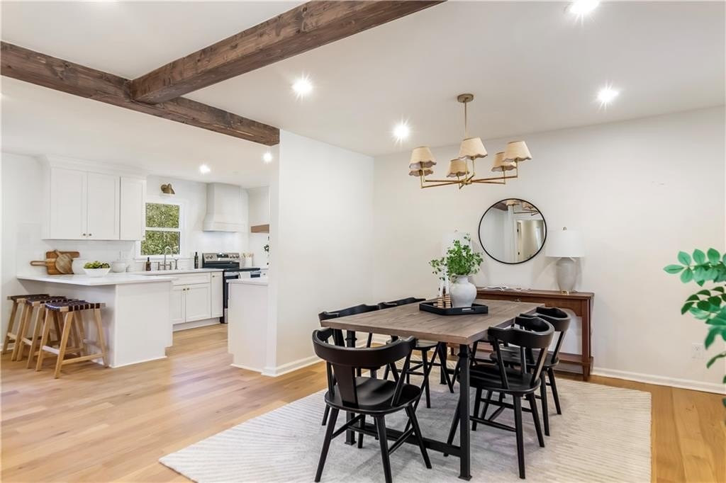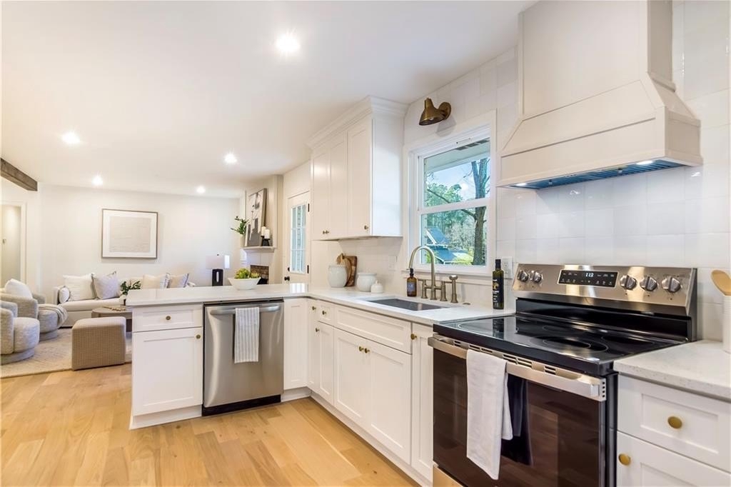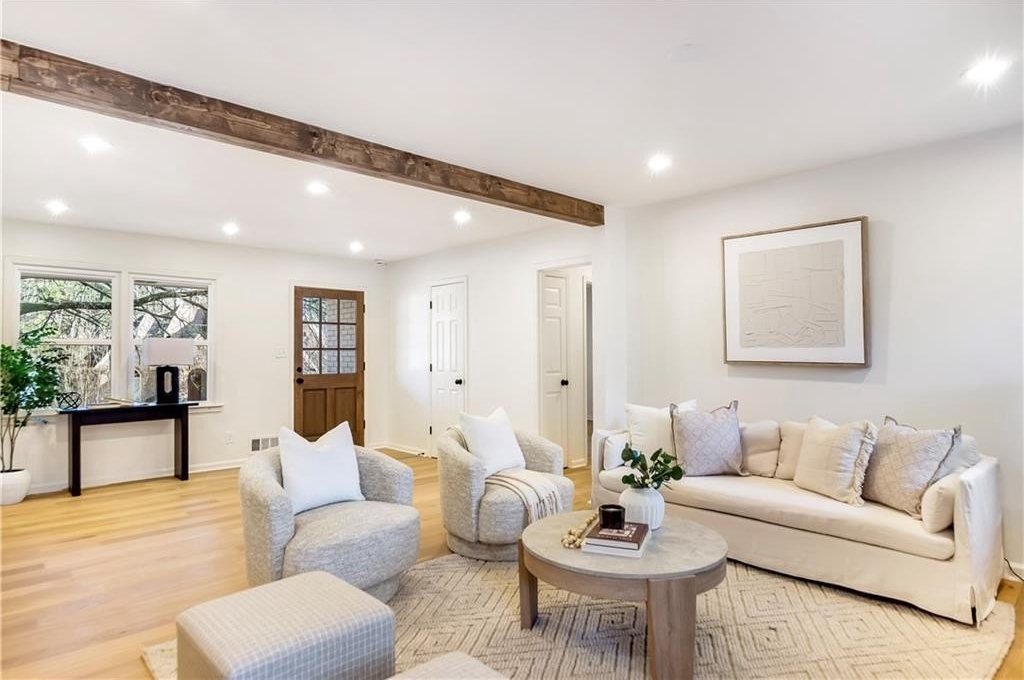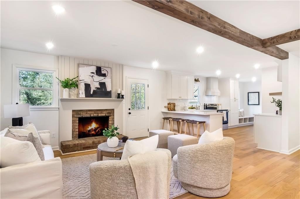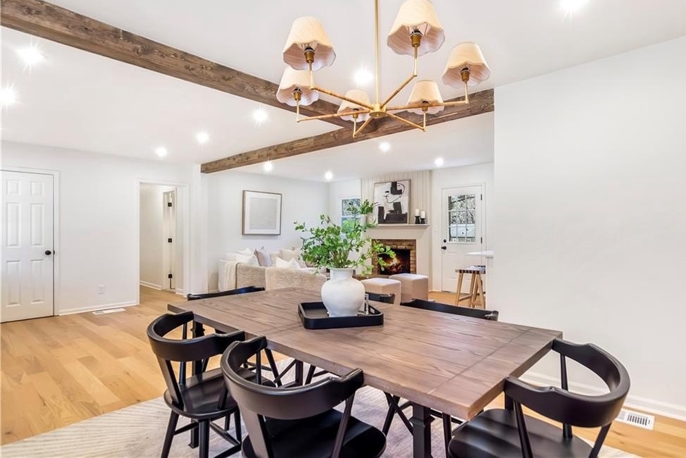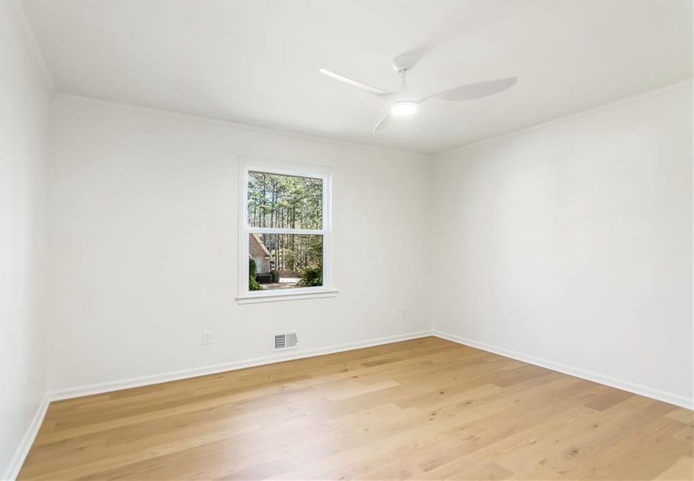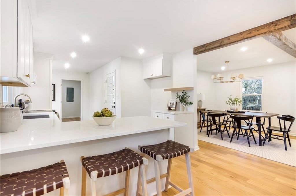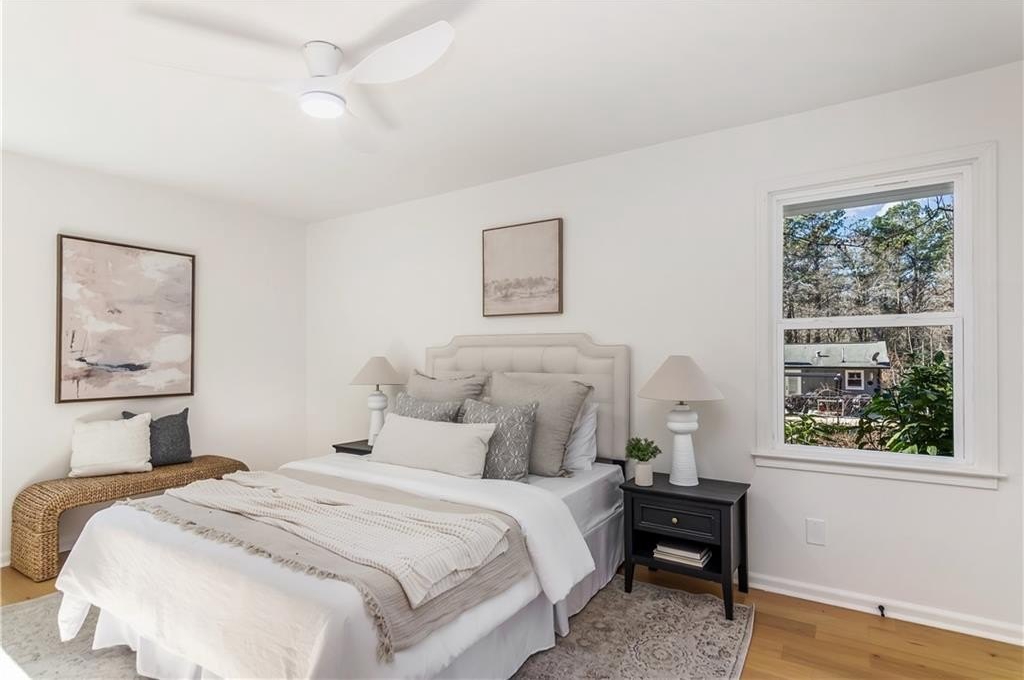 Welcome to 2975 Fredrick Drive-a beautifully renovated 4-sided brick ranch home in a great Marietta location that perfectly blends modern style with comfortable, single-level living. Zoned for Mountain View Elementary, this 3-bedroom, 2-bath residence has been thoughtfully updated throughout, featuring engineered hardwood floors that flow seamlessly from room to room. The chef's kitchen is a true centerpiece, showcasing brand-new cabinetry, modern appliances, and a clean, contemporary design ideal for both everyday living and entertaining. The spacious primary suite offers a private retreat with his-and-hers closets and a stunning primary bathroom complete with a double vanity and an oversized walk-in shower. Additional highlights include new windows and a new HVAC system, providing enhanced energy efficiency and year-round comfort. Step outside to a fully fenced backyard with two outbuildings-perfect for storage, a workshop, or future creative use. Move-in ready and meticulously updated, this home offers the ease of ranch living with the appeal of modern renovations, all in a convenient Marietta location close to shopping, dining, and schools.