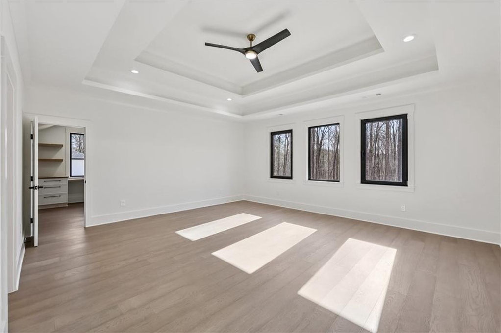 This stunning brand-new construction home is nestled in one of Auburn's most beautiful and fast-growing luxury communities, offering an exceptional blend of elegance, comfort, and thoughtful design. Situated on a spacious, level lot, this 4-bedroom, 4.5-bath residence is crafted for both everyday living and effortless entertaining, featuring 10-foot ceilings throughout the main level, soaring 12-foot ceilings in the main living room, and 9-foot ceilings upstairs, all complemented by hardwood floors and abundant natural light from oversized windows. The gourmet kitchen is a true showstopper with waterfall quartz countertops, a dramatic waterfall quartz island, farmhouse sink, floating shelves, ample cabinetry, a walk-in pantry, and premium gas appliances, including a Cafe dishwasher and range, along with an Advantium microwave and oven, seamlessly connecting to the living and dining areas. A formal dining room on the main level provides an elegant space for hosting, while a convenient mudroom and three-car garage add everyday functionality. The main level also includes a private guest bedroom and a dedicated home office. Upstairs, generously sized bedrooms feature walk-in closets, and the expansive primary suite boasts a spa-inspired bathroom with a freestanding soaking tub, walk-in shower with rain head, double vanities, and a custom walk-in closet with built-ins, complemented by a thoughtfully designed laundry room with a sink and ample counter space and a spacious media room or secondary living area ideal for relaxing or movie nights. Outdoor living shines with a covered patio perfect for grilling and unwinding, a backyard ready for your personal touch, a built-in sprinkler system for easy maintenance, and an extended driveway offering ample parking, all conveniently located near Hamilton Mill and I-85 with quick access to shopping, dining, and major commuting routes.