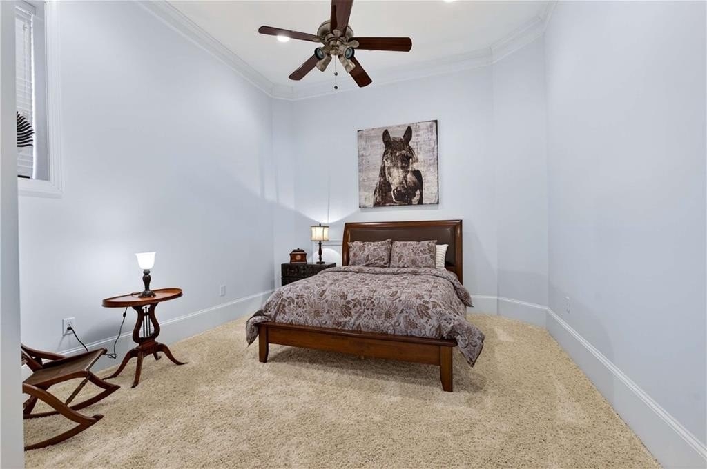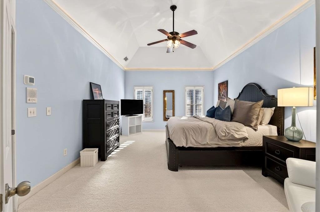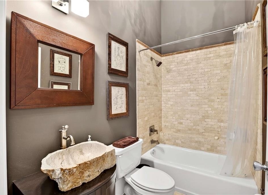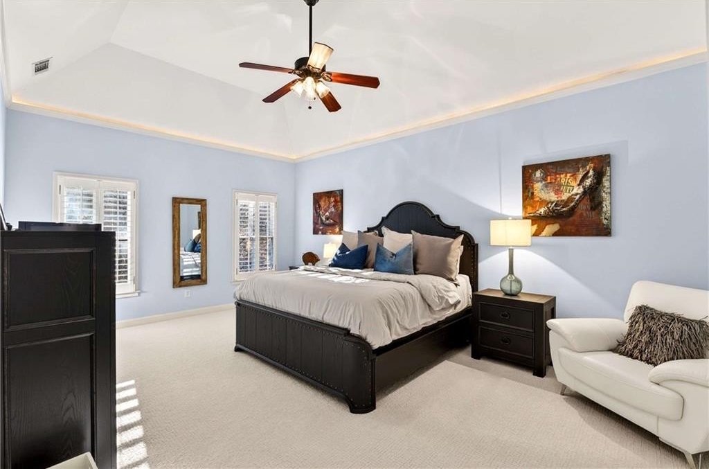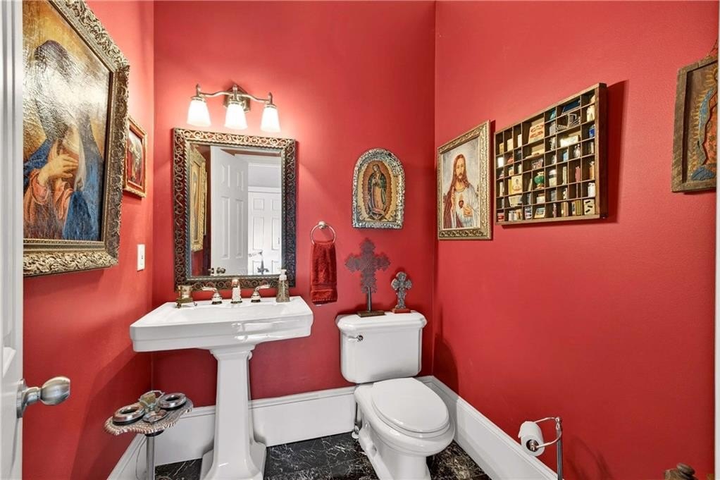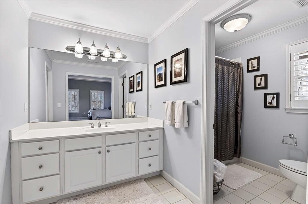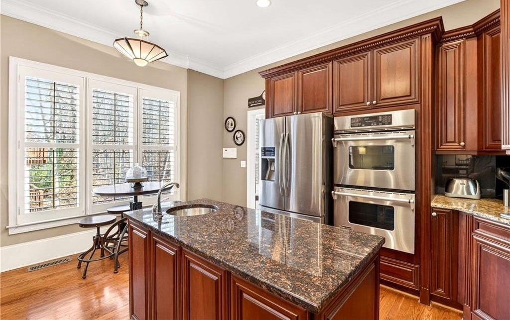 Welcome to 2075 River Falls Drive, a beautifully maintained executive home nestled in the highly sought-after gated River Falls community in Roswell. This elegant residence blends classic Southern charm with modern updates, offering the perfect combination of comfort, style, and livability. Double beveled front doors open to a dramatic 2 story circular foyer featuring an elegant spiral staircase. Beautiful 2-story great room features a wall of windows, cove lighted coffered ceiling & bookcases flanking the double-sided gas log fireplace. The gracious oversized dining room features architectural columns, exquisite moldings, hardwood floors with a custom inlay & wainscoted walls. A gourmet chef's kitchen with designer cherry cabinetry, granite countertops, Jenn-Air stainless steel appliances, island with vegetable sink, stacked stone breakfast bar & separate pantry. The spacious 2-story keeping room opens from the kitchen & highlights the charming stacked stone fireplace. Luxurious primary suite on main with tray ceiling boasts dual closets & an elegant spa bath with double vanities, double shower heads + handheld & heated marble floors. Two private bedroom suites upstairs - one is a 2nd primary suite with oversized marble bath & double closets - with high ceilings & cove lighting. A wonderful bonus room/4th bedroom upstairs has ample lighting & storage. The fully finished terrace level is an entertainer's dream, featuring 14' ceilings, a billiards room, an impressive home theatre with 144" screen & projector, a cozy office area with fireplace, a spacious guest suite/5th bedroom, and a full bath showcasing an exquisite stone sink & travertine finishes. The space also includes a plumbed & wired area ready for a future kitchen or bar, offering incredible potential for customization. Gorgeous decks overlook magnificent views of protected woodlands & creek. Additional features include designer lighting, intercom & stereo system, 7 zone programmable thermostats, security & irrigation systems & yard maintenance. Located in a prime Roswell location just minutes from Historic Downtown Roswell, the Chattahoochee River, East Roswell park, schools, shopping & dining. This home combines the best of convenience and tranquility.