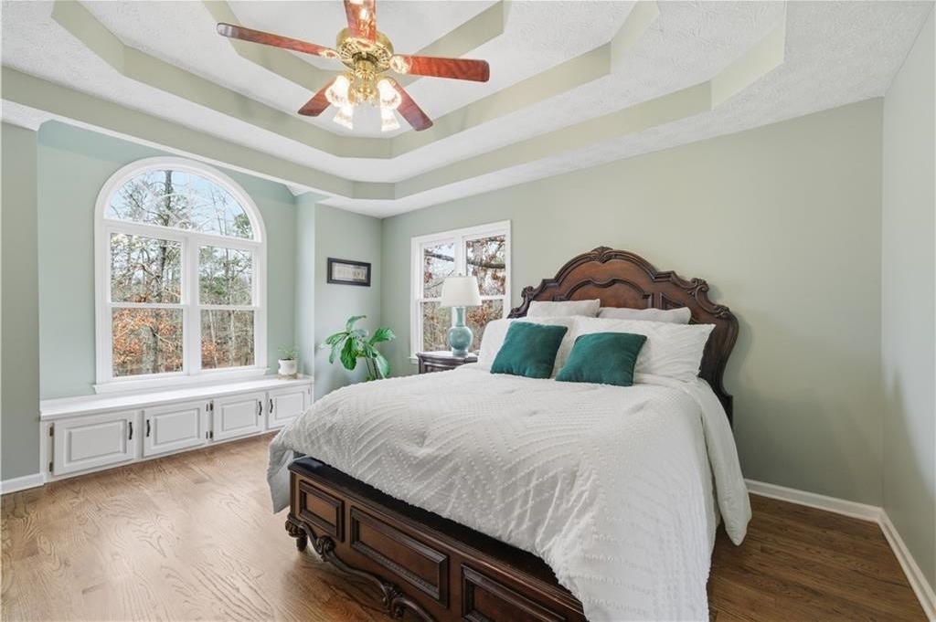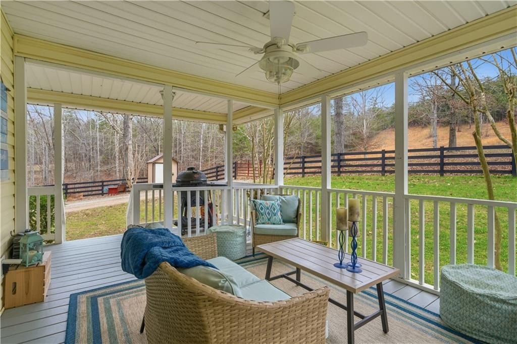 Escape to the serene rolling hills of Rydal with this exceptional four-bedroom, two-and-a-half-bathroom residence situated on five expansive acres. This property offers a rare combination of privacy and functionality, perfect for those who appreciate open spaces and a connection to the outdoors. The exterior presents a classic aesthetic with a mix of natural stone and durable siding, complemented by a wide, inviting wrap-around front porch. This expansive porch serves as an ideal spot to enjoy the summer breeze or watch the sunrise over the North Georgia landscape. As you approach the home, the long driveway and established landscaping create a sense of arrival that is both peaceful and impressive. Upon entering, the main floor reveals a thoughtful layout designed for both daily living and hosting guests. The heart of the home is the spacious family room, anchored by a floor-to-ceiling stone fireplace that adds significant texture and warmth to the living space. This central feature is not only a visual focal point but also sets the tone for the residence's rustic yet refined character. Rich hardwood flooring flows seamlessly throughout the main level, leading into a dedicated dining area that provides a sophisticated setting for evening meals and holiday gatherings. Large windows throughout the main floor allow for an abundance of natural light, bridging the gap between the comfortable interior and the lush exterior surroundings. The kitchen is a standout feature, equipped with warm wood cabinetry, polished granite countertops, and a central island with a gas cooktop and breakfast bar seating. This workspace is designed for efficiency and social interaction, allowing the host to remain part of the conversation while preparing meals. Stainless steel appliances, including a built-in wall oven and microwave, ensure the space is as practical as it is attractive. Adjacent to the kitchen, a bright breakfast nook offers peaceful views of the wooded backyard and provides direct access to the outdoor living spaces. For added convenience, a well-organized laundry room and powder room are positioned just off the main living areas. The upper level houses the private quarters, featuring a primary suite that serves as a quiet retreat. The primary bathroom has been meticulously updated to include a modern freestanding soaking tub, a seamless glass-enclosed shower with custom tile work, and elegant vanity finishes. This space is designed to provide a serene atmosphere for relaxation at the end of a long day. Three additional guest bedrooms are located on this floor, each offering ample closet space and easy access to a second full bathroom. The fourth bedroom is particularly spacious, making it a versatile option for a home office, media room, or creative hobby space, depending on your needs. The outdoor living areas are a standout feature of this property. A large rear deck extends from the back of the house, overlooking the fenced-in lawn and the dense treeline beyond. This space is perfect for summer gatherings, providing plenty of room for outdoor seating and dining. The five-acre lot provides a significant buffer from neighbors, ensuring a high degree of privacy. The property also includes a functional shed for storage and a fenced area suitable for animals or expansive gardening projects. Modern comforts are integrated throughout the home, including a whole-house fan to maintain consistent airflow and cooling during the warmer months and a private propane system. Located in the peaceful Rydal community while remaining accessible to the shopping and dining amenities of Cartersville, this home offers the best of North Georgia living. Contact us today to schedule a private tour of this impressive estate.