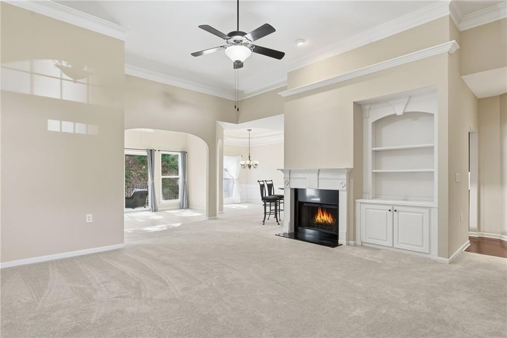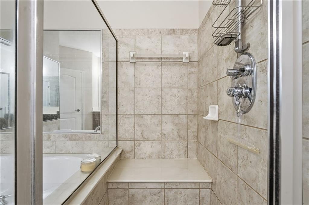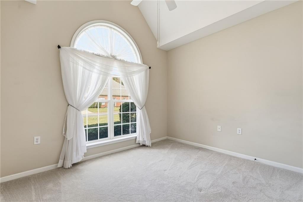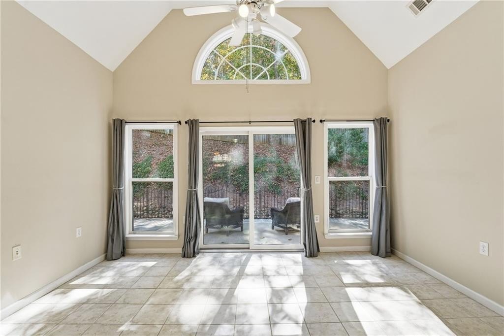 Beautiful home located in Villas at Claremore Lake community. This spacious 3-bedroom, 3-bathroom home offers a perfect balance of convenience and comfort. Just minutes from downtown Woodstock and Historic Roswell, you'll have easy access to shopping, dining, and fitness options-all within walking distance. The open-concept floor plan features high ceilings and large windows. The main-level primary suite is a true retreat, complete with a vaulted ceiling, double vanity, oversized walk-in closet, and an expansive ensuite bathroom with a step-in shower featuring a built-in bench. A second bedroom on the main level provides versatility for family, guests, or a home office, with an adjacent full bathroom. The spacious dining area and fireside great room flow seamlessly, making this space ideal for entertaining. A tiled sunroom leads to the back patio, offering a peaceful spot to relax and unwind. Upstairs, you'll find a versatile bonus room or additional bedroom with its own full bathroom, perfect for guests, a private office, or a creative space. The community offers a maintenance-free lifestyle, with HOA-managed lawn care and exterior maintenance, allowing you to spend more time enjoying the amenities, including a pool, clubhouse, and scenic walking trails. With easy access to Claremore Lake and nearby recreational options, this home combines the best of lakeside living with the convenience of being close to everything. Don't miss the opportunity to make this charming home your own.