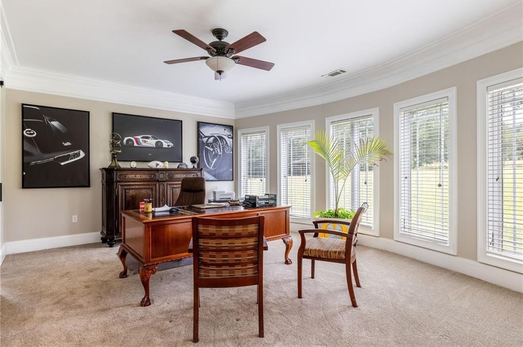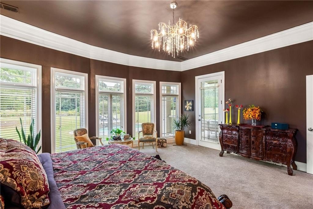 Imagine beginning each day with serene views of your own private two-acre lake, where a family of ducks glides peacefully across sun-dappled waters. Just beyond, an inviting in-ground pool with dual cascading waterfalls and an elegant pergola welcomes you into a remarkable 14-acre private estate. This extraordinary lifestyle awaits at 265 Honeysuckle Lane. This exceptional custom-built luxury residence offers over 6,000 square feet of refined living space, delivering a truly rare opportunity in today's market. With stately curb appeal, generous proportions, a seamless flowing floorplan, and multiple spaces designed for gathering and entertaining, this home is ideally suited for family living, hosting events, or enjoying a tranquil retirement surrounded by nature. Every detail has been thoughtfully curated, and no expense has been spared in preparing this home for its next owner. The grand entry opens into an expansive open-concept living area tailored to modern living, featuring 15-foot ceilings, premium crown molding, and an abundance of natural light. The living room centers around a striking fireplace and flows effortlessly into the gourmet kitchen and formal dining room, which comfortably seats twelve or more guests. A separate breakfast area offers direct access to the rear balcony, perfect for morning coffee or evening relaxation. One wing of the main level is dedicated to the impressive primary suite, bathed in natural light and offering scenic views along with a luxurious, resort-style primary bathroom. The opposite wing provides access to an oversized three-car garage with exceptional storage capacity. A sweeping, ballroom-style curved staircase leads to the terrace level, which features three additional bedrooms, two full bathrooms, a bonus room perfect for a gym, and a spacious great room-each finished with plush luxury carpeting and virgin padding. This level opens directly to the pool area and expansive backyard retreat. The grounds are equally as impressive, featuring eight cleared acres and four wooded acres, creating a private nature preserve. The fully stocked two-acre lake includes catfish, bream, and bass, complete with a flowing fountain and paddleboat for leisurely enjoyment. This fully fenced in, move-in-ready estate has been meticulously updated and includes electric gate entry, a boat garage, a brand-new roof, all new mechanicals, fresh interior and exterior paint, new light fixtures throughout, new tile on the front porch and rear balcony, a new well pump for the 500-foot-deep well, two septic tanks, and a Generac whole-home generator for peace of mind. Public water and sewer connections are conveniently available at the street, offering future flexibility. Located in a quiet community free from light pollution, within an excellent school district, less than ten minutes from Publix, and under forty minutes from downtown Atlanta, this property offers unmatched privacy without sacrificing convenience. Come experience the luxury, the land, the lake, and the star-filled skies of Honeysuckle Lane. There is truly no substitute for seeing this remarkable estate in person.