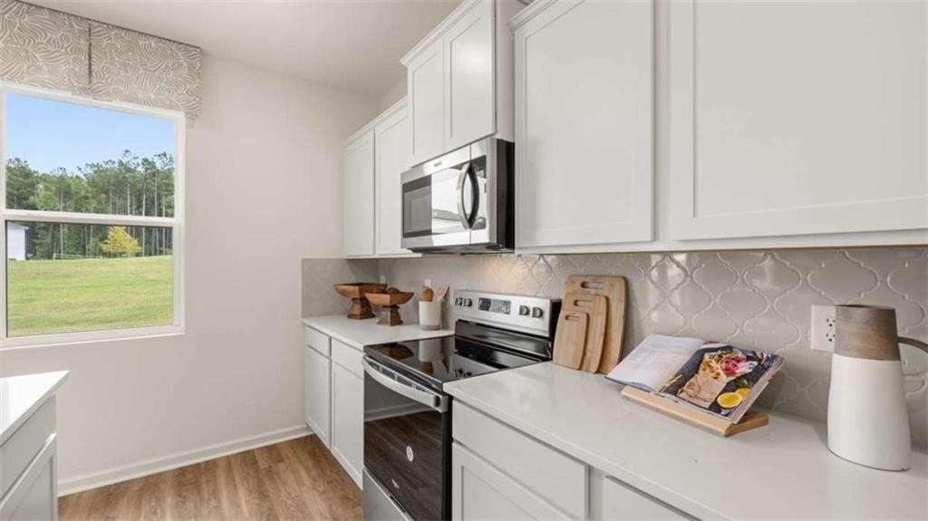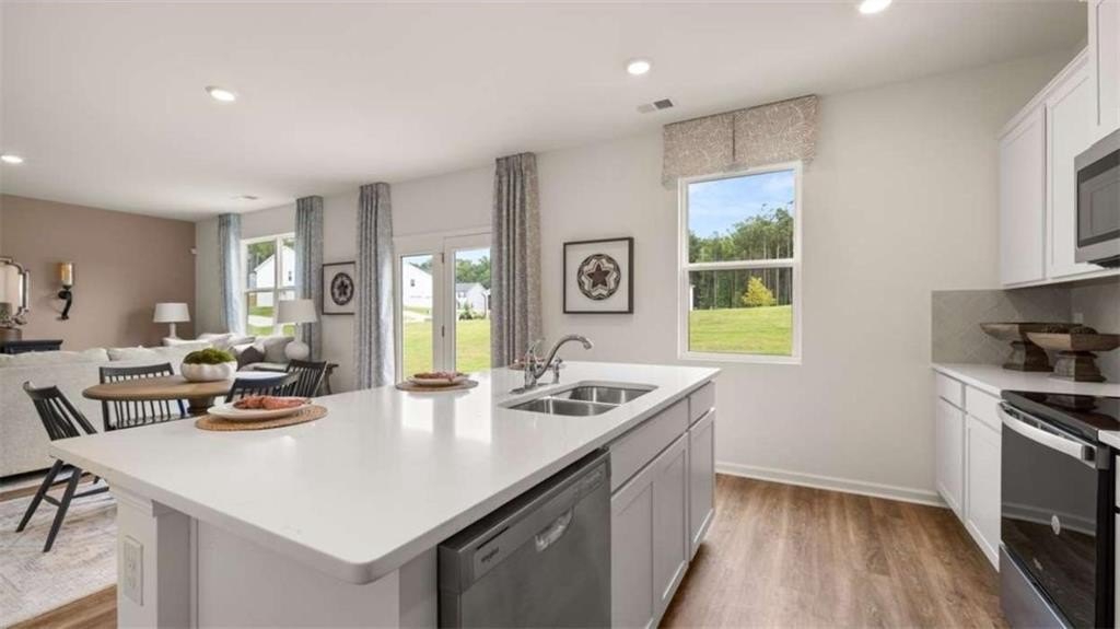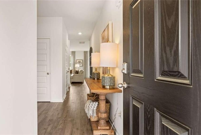 The Hamlin Plan by DR Horton - Where Functionality Meets Style - Step into the Hamlin, a beautifully designed home that blends modern style, everyday functionality, and timeless charm. This spacious two story floor plan features 4 generously sized bedrooms, 2.5 well appointed bathrooms, a versatile loft area, and a flex space ideal for a home office, playroom, or an additional dining area. At the heart of this home you find an oversized kitchen, showcasing a large island with quartz countertops, tile backsplash, stainless steel appliances, and abundant counter space, perfect for casual family meals or entertaining guests. The open concept layout connects the kitchen seamlessly to the main living and dining areas, creating a welcoming and cozy atmosphere. Upstairs you'll find the owner's suite, featuring dual vanities, a luxurious spa like shower, and a huge walk in closet with ample of space. Additional features include faux wood blinds throughout and an industry leading smart home technology package, keeping you connected and in control whether you're home or away. Located with easy access to I-75, offering a short commute to Atlanta Motor Speedway, and is just minutes from shopping, dining, and everyday conveniences, making it the perfect combination of suburban comfort and city accessibility. Experience the comfort, space, and thoughtful design of the Hamlin Plan, a place you'll love to call home.