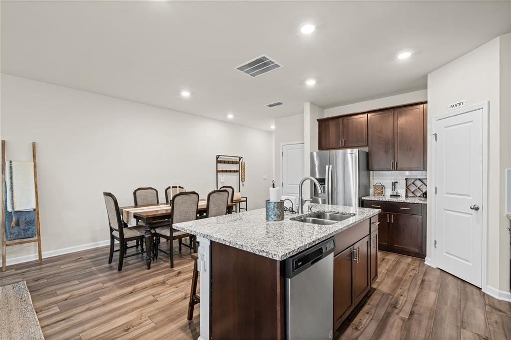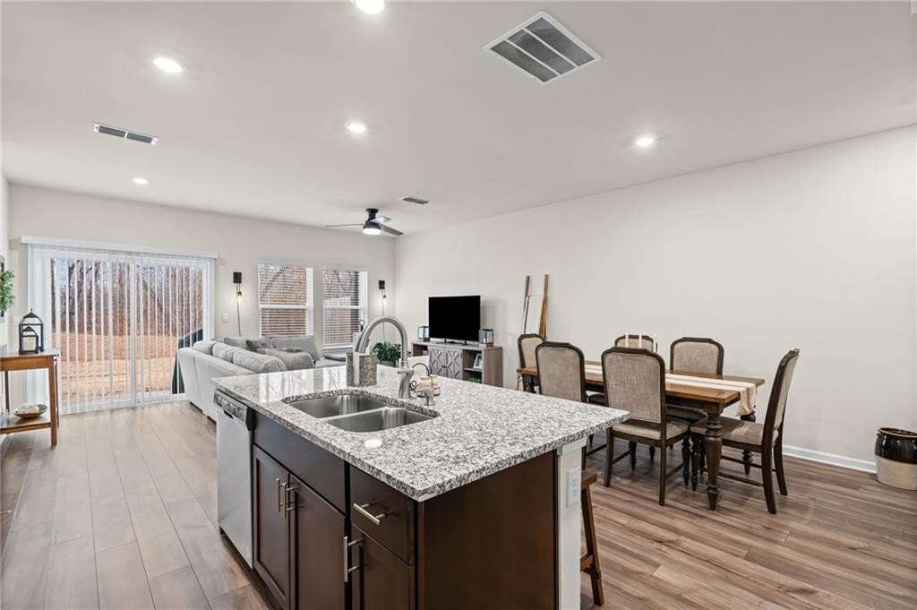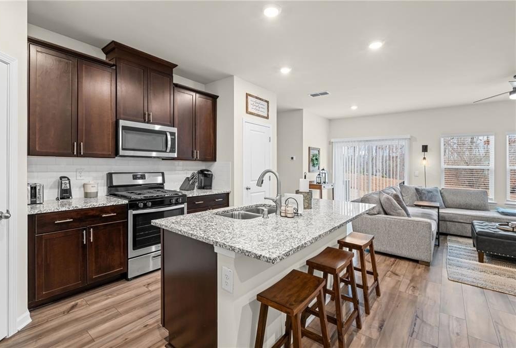 Discover the perfect blend of modern luxury and effortless living in the beautiful hills of Dawsonville. Built and purchased in 2022, this near-mint condition townhome offers the feel of a brand-new build with the added peace of mind of established quality. The exterior boasts a classic brick front and durable Hardi siding, complemented by a convenient attached exterior storeroom for all your seasonal gear. Inside, you'll find a bright, open-concept floor plan featuring stylish vinyl flooring, zoned AC for personalized comfort throughout the home and a tankless water heater for added efficiency. The heart of the home is the beautiful modern kitchen, which serves as a chef's delight with sleek stainless steel appliances, a spacious kitchen island, and a layout that opens seamlessly into the living area-perfect for entertaining. Upstairs, the thoughtful design continues with a dedicated laundry area, making chores a breeze. Situated in a district known for its great schools, this home provides an ideal environment for families and professionals alike. Experience a true "lock-and-leave" lifestyle thanks to an all-inclusive HOA. Your monthly fees cover comprehensive exterior care, including roof maintenance, siding, exterior paint, and termite control. Enjoy a pristine landscape without lifting a finger, as all lawn care and trash service are included. The community also offers resort-style amenities, including a swimming pool, playground, and dog park, ensuring there is something for every member of the family. Don't miss your chance to own this low-maintenance gem in a prime location!