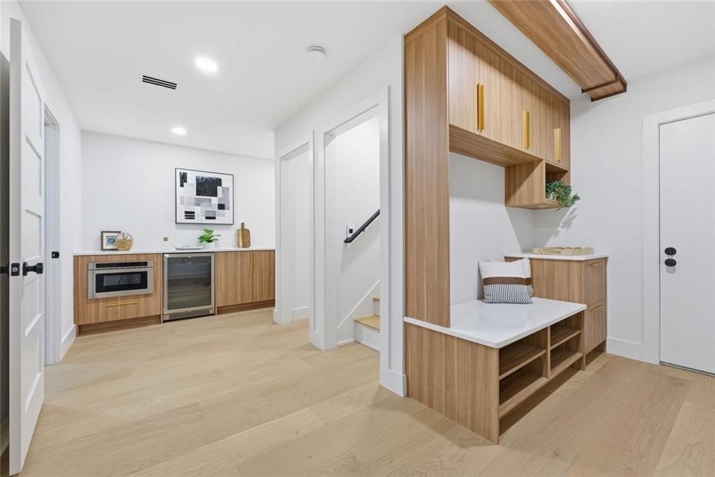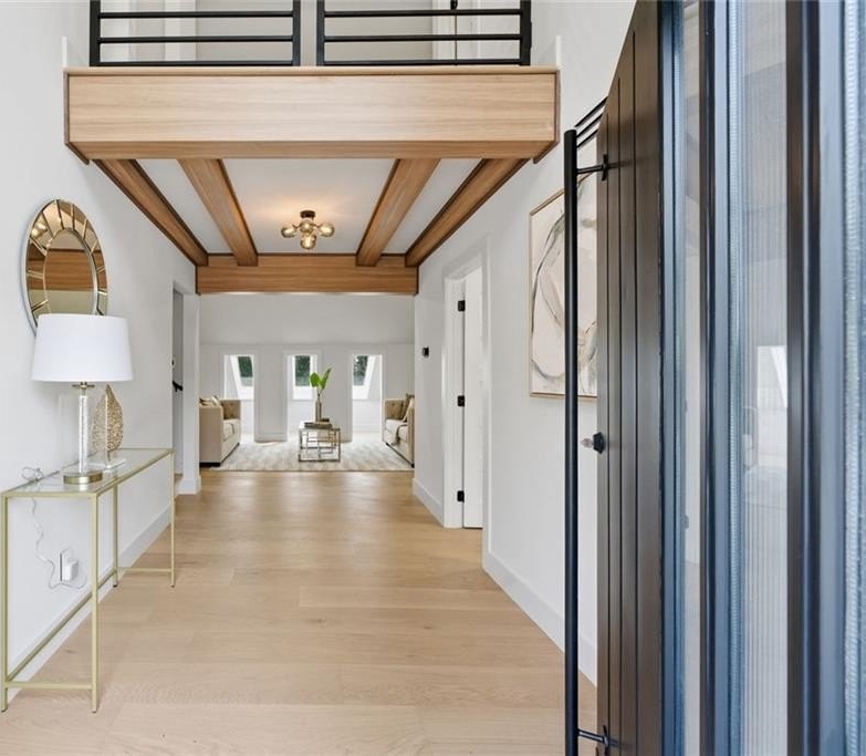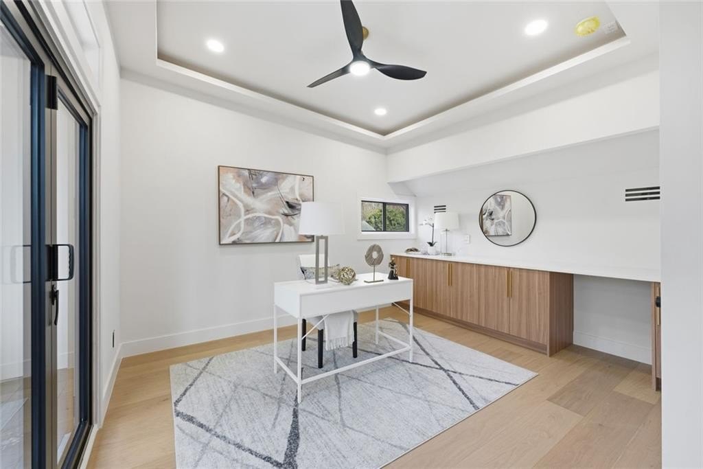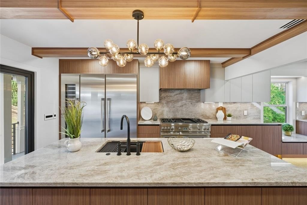 Nestled in the heart of Brookhaven, this extraordinary four-story contemporary residence blends architectural sophistication with effortless modern living. Meticulously crafted with exceptional attention to detail, the home offers expansive indoor and outdoor living spaces ideal for both everyday comfort and elegant entertaining. Luxurious bedroom suites function as private retreats, each complemented by spa-inspired baths designed to evoke calm and indulgence. Warm wood tones, custom millwork, and designer lighting create a refined atmosphere of understated luxury throughout the home. The chef's kitchen is enhanced by a concealed prep kitchen thoughtfully tucked away to support seamless entertaining and daily functionality. Striking quartzite surfaces and premium Thermador appliances combine refined aesthetics with professional-grade performance, creating a true culinary showpiece. The primary suite occupies its own private full level, designed for ultimate comfort and flexibility. This retreat features a lounge area, kitchenette, additional room ideal for office or fitness space, and direct access from both the garage and a private balcony entrance. This level functions as a residence within the residence. The fully finished lower level provides additional living and entertainment flexibility, while multiple garage bays and abundant additional parking accommodate vehicles, hobbies, or storage needs with ease. Located close to leading medical centers, dining, shopping, parks, and major business districts, the home offers convenience while maintaining exceptional privacy. Multiple living areas on every level support multigenerational living, work-from-home lifestyles, or those who simply value generous space and versatility. A rare opportunity to own a contemporary architectural home that balances privacy, sophistication, and modern functionality in a premier Brookhaven location.