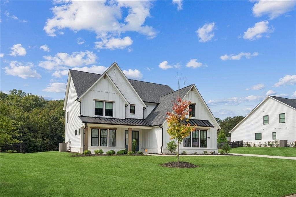 Experience luxury living in this stunning 2022-built modern farmhouse, located in the desirable Long Hollow Landing community on Lake Lanier. This thoughtfully designed home offers 5 bedrooms, 4.5 bathrooms, with floorplan showcasing elegant, functional living space-all on a private 1.3-acre lot in the East Forsyth. Inside, enjoy a bright, open-concept layout with high ceilings, designer finishes, and abundant natural light. The gourmet kitchen features an oversized island, walk-in pantry, and seamless flow into spacious living and dining areas-perfect for entertaining. The main-level guest suite includes a private full bath with walk-in shower, ideal for visitors or multi-gen living. Upstairs, the primary suite boasts a spa-like bath, huge walk-in closet, and a private bonus room hidden within the closet-perfect for a home office, gym, or storage. A loft area offers additional flexible living space. Additional bedrooms are all oversized with bathrooms. Enjoy the outdoors with a wooded lot and plenty of space to create an outdoor oasis! Community access to the pavilion, dock and Lake Lanier, perfect for boating, kayaking, or relaxing by the water. This home offers a rare blend of upscale finishes, privacy-an exceptional find!