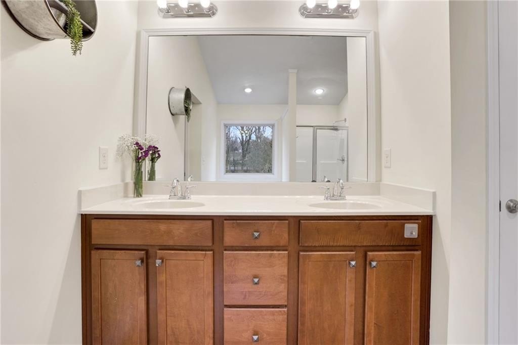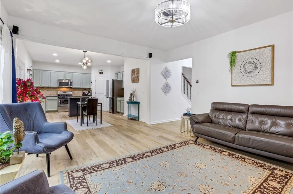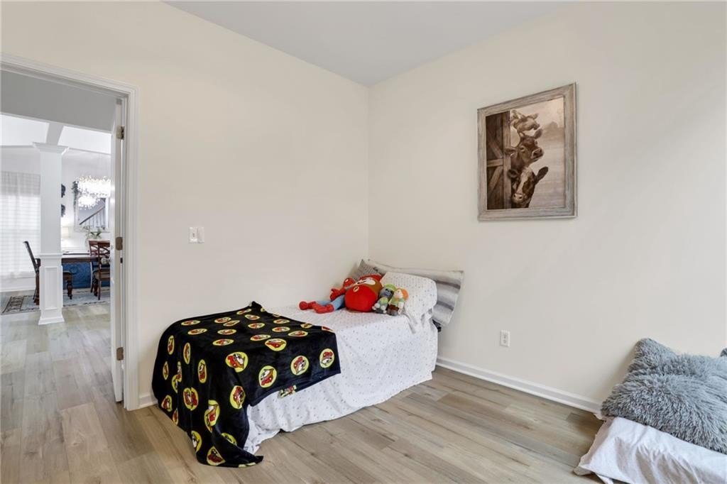 The space you've been searching for-set in one of Alpharetta's most convenient and desirable pockets with Forsyth County taxes. This beautifully updated home with designer finished basement offers an exceptional amount of finished living space, paired with peaceful, private wooded views that create a true sense of retreat. A welcoming foyer opens to refined living and entertaining areas, including a formal dining room and a spacious family room with fireplace. The gourmet kitchen opens seamlessly to the family room, creating a layout ideal for both everyday living and gatherings, and features an island, pantry, gas range, and vent hood. A main-level guest bedroom adds flexibility for visitors or multi-generational needs. Upstairs, the owners' suite is a calming retreat with soaring ceilings, a walk-in closet, double vanities, soaking tub, separate shower, and private water closet. Two additional secondary bedrooms and a jack and jill bath complete the upper level. The fully finished terrace level is a standout and offers incredible versatility. Anchored by a gorgeous second kitchen with a large island-ideal for an in-law or guest suite-this level also includes a home theater with premium sound, an additional bedroom, a full bath, a separate flex space with stunning glass doors currently used as a home gym, and generous storage. This level opens to serene, wooded views that bring privacy and calm into the space. Step outside to the deck, where you can relax and unwind while overlooking peaceful, private wooded scenery-an ideal setting for morning coffee or evening gatherings. Recent upgrades include brand-new luxury vinyl flooring, fresh interior paint, and updated kitchen cabinetry. A fully fenced backyard completes this move-in-ready home. Enjoy neighborhood amenities including pool, tennis, and playground, along with close proximity to Big Creek Greenway and Fowler Park. Convenient access to Alpharetta's premier shopping and dining, as well as major travel corridors, makes daily life effortless. Zoned for Midway Elementary, DeSana Middle, and Denmark High School.
