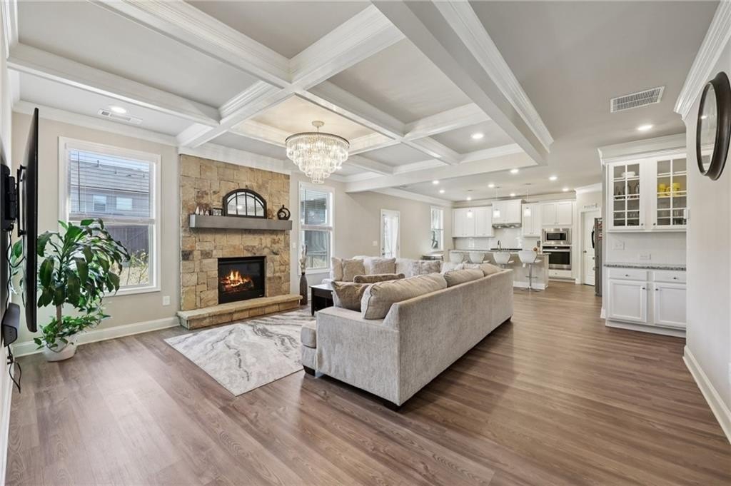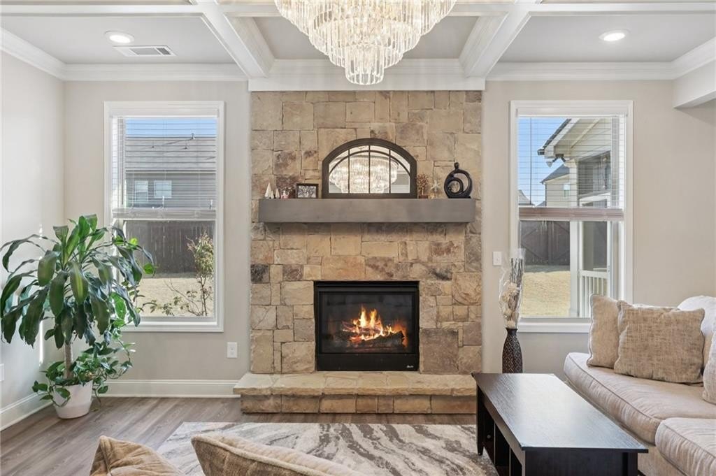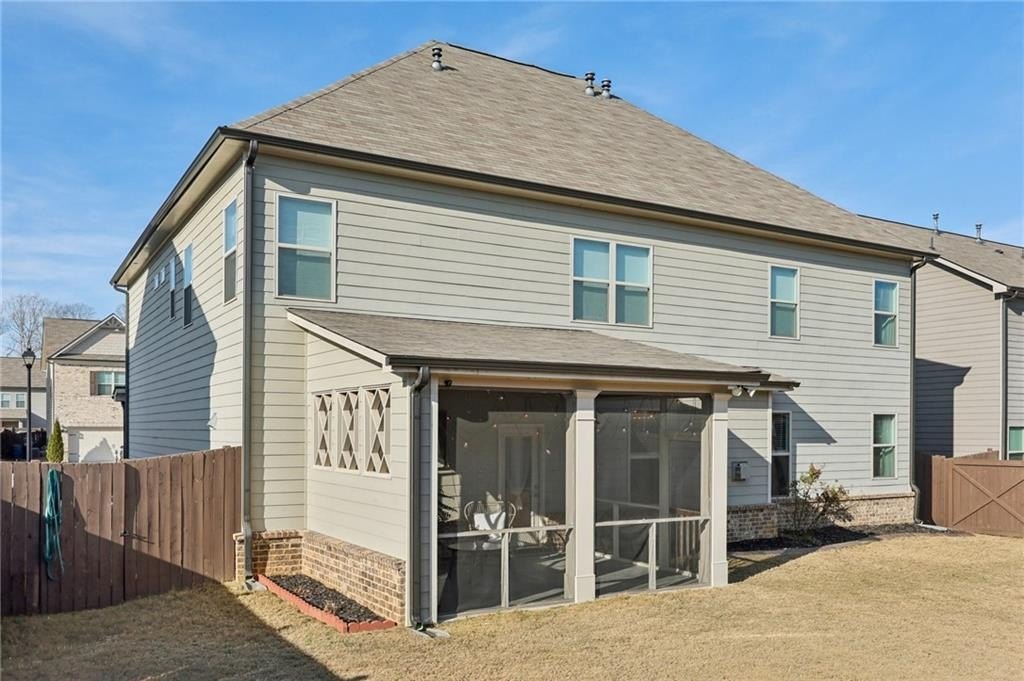 Beautifully designed 5-bedroom, 4-bath home filled with natural light and located in a highly desirable community with fantastic amenities. A welcoming front porch invites you inside, where you're greeted by a formal dining room and a flex living space-perfect for a home office or sitting room. The heart of the home features an open-concept living area with a fireside family room showcasing coffered ceilings, seamlessly flowing into the bright, spacious kitchen complete with a large island and walk-in pantry-ideal for everyday living and entertaining. The main-level bedroom and full bath provide an excellent option for multigenerational living or overnight guests. Upstairs, a generous loft offers the perfect space for a media room, play area, or second living room. The oversized primary suite impresses with a sitting area, tray ceiling, and a spa-like ensuite featuring a double vanity and walk-in shower. Three additional bedrooms and two full bathrooms complete the upper level. Enjoy outdoor living year-round on the recently added screened-in patio, overlooking a spacious backyard with plenty of room to relax or play. Community amenities include a pool, dog park, and more, making this home the perfect blend of comfort, space, and lifestyle. Don't miss the opportunity to make this exceptional home yours!