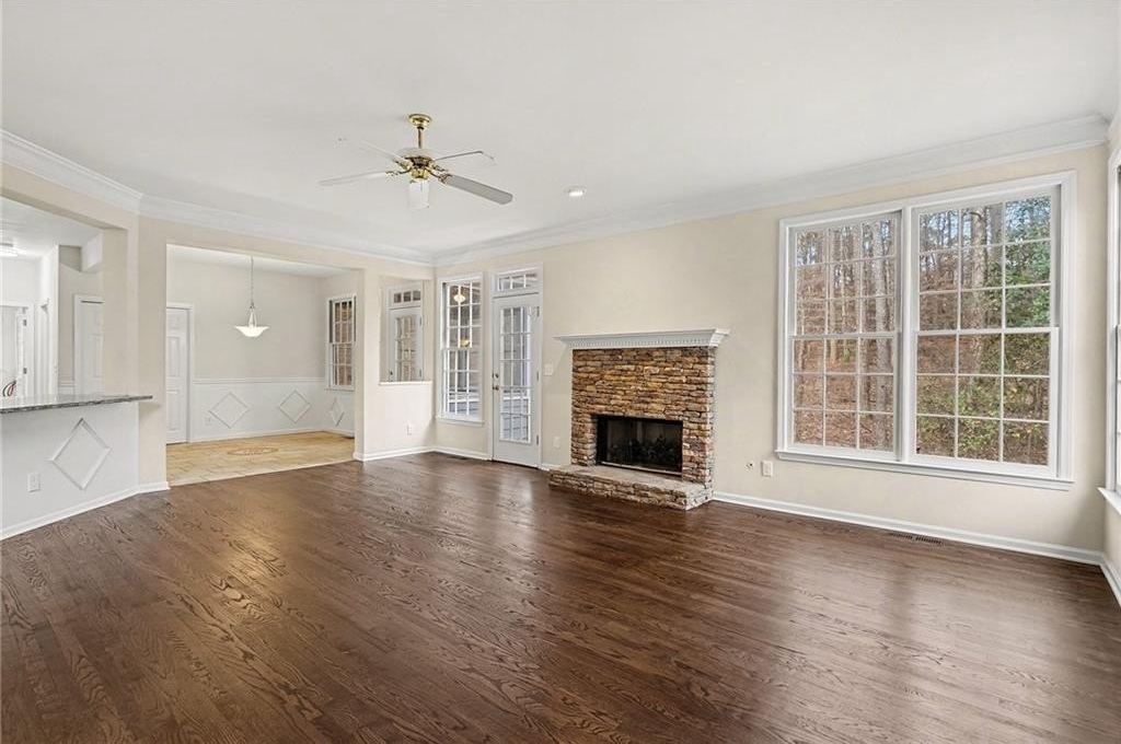 Beautifully maintained home in a fantastic, highly desired area just minutes from restaurants and shopping! Hardwood floors highlight the main level, featuring a tiled kitchen with granite countertops, an eat-in breakfast area, and a cozy family room with a stunning fireplace just off the kitchen-perfect for everyday living and entertaining. The main floor also offers a convenient laundry room, a bedroom, and a half bath. Upstairs, retreat to the spacious owner's suite with a luxurious double-sided fireplace, enjoyed from both the bedroom and the soaking tub in the large en-suite bath. Three additional bedrooms and a full bath complete the upper level. The unfinished basement provides walk-out access, a workout area, a partially finished bathroom, and plenty of room to expand or customize to your needs. Enjoy peaceful outdoor living on the enclosed porch or deck overlooking a large, wooded lot offering exceptional backyard privacy. A wonderful opportunity in a sought-after location-don't miss it!