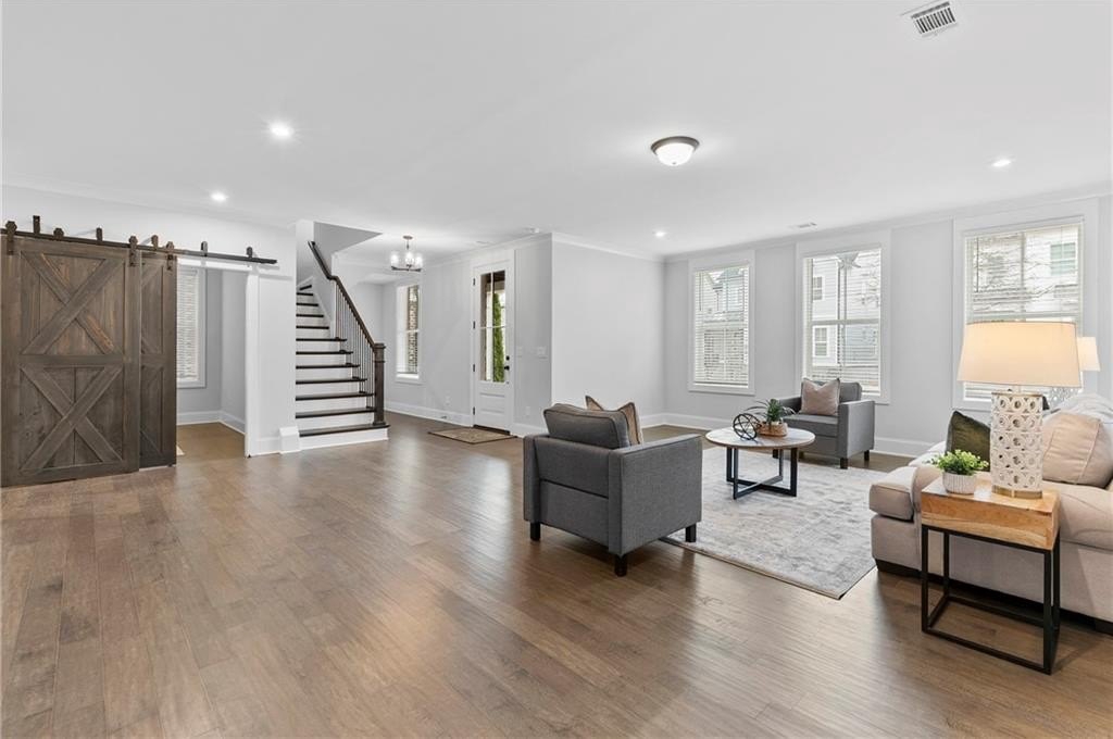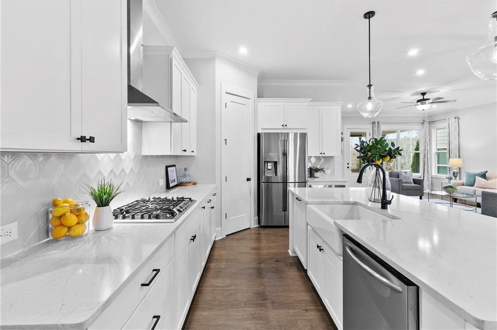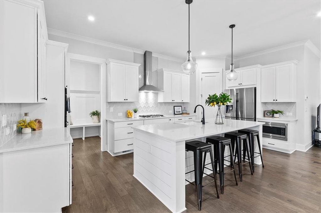 OPEN HOUSE SATURDAY 1/10 FROM 1PM-3PM. ALL BUYERS WELCOME. Welcome to 120 Meadow Mill Road, a stunning nearly new luxury residence in the esteemed Inwood community just moments from prestigious Adair Park and the vibrant heart of Downtown Woodstock where sophisticated living meets unparalleled convenience. This exceptional 5 bed, 4.5 bath home spans 3,834 sq ft of beautifully designed living space across multiple levels and greets you with a gracious entrance foyer and an inviting recreation room with a private guest suite and full bath on the street level entry perfect for family, guests, or flexible living arrangements. The main level showcases a seamless open concept living and dining area with hardwood and tile floors, a dedicated office ideal for remote work, and direct access to both front and rear porches for effortless indoor outdoor living. Just two steps from the garage or the covered patio to the main level. At the heart of the home is a gourmet chef's kitchen featuring a large center island with barstools, luxury tiled backsplash & vent hood, double ovens, gas cooking, stone countertops, white cabinetry, a walk in pantry, and premium appliances, a true entertainer's dream. A custom designed laundry room with built in cabinetry adds everyday convenience. Half bathroom on the main level. Upstairs, you'll discover a spacious primary suite retreat with room for a sitting area and with two walk in closets and a spa inspired bath offering dual vanities, a deep soaking tub, and an oversized shower. You will love the upper level loft perfect for media, play, or study space and three additional large bedrooms with a Jack-and-Jill plus full hallway bath. High ceilings, recessed lighting, gas fireplace, and thoughtful high end finishes throughout elevate the sense of refined comfort. Golf cart friendly community awaits and is located a short distance to Adair Park's charming amenities, boutique shops, local upscale restaurants, the Woodstock Library, top rated Woodstock schools, and exciting downtown events, this address offers a lifestyle rich in walkability to parks, shopping, dining, and community gatherings. Outdoor enthusiasts will also appreciate nearby Rope Mill Park and miles of scenic trails. Nearby are the two downtown trails lead you to Noonday Trail and the Towne Lake Trail. The community itself features a resort-style swimming pool, pavilion, two dog parks, a mini amphitheater, and abundant greenspace and walkways for active living right outside your door. Plus, enjoy easy access to Costco, additional premier shopping, and dining options off Ridgewalk Parkway where you also find the prestigious Outlet Mall. The kitchen refrigerator, washer & dryer, and EV car chargers are negotiable with the sale, adding flexibility and value to this gorgeous home.