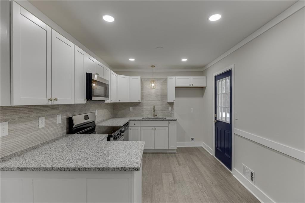 LOCATION LOCATION LOCATION!!!! Small but mighty this fully renovated home is ideally situated just minutes from downtown Lawrenceville, offering easy access to local dining, shopping, entertainment, and major highways for effortless commuting. Thoughtfully updated throughout, the home features a brand-new roof, all-new LVP flooring, all new doors, and fresh interior and exterior paint, creating a clean, modern, move-in-ready feel. The completely redesigned kitchen showcases white cabinetry, granite countertops, and a stylish tile backsplash, opening seamlessly to the living space for everyday living and entertaining. Both bathrooms have been fully remodeled, including the addition of a true ensuite full bath in the primary bedroom, a standout upgrade that maximizes comfort and functionality. A rare highlight is the oversized laundry/utility/pantry room, offering granite countertops, exceptional storage, and flexibility rarely found in homes of this size. Every square inch of this home has been intentionally designed and maximized, delivering efficiency, storage, and style well beyond expectations. A fantastic opportunity to own a beautifully updated home in one of Lawrenceville?s most convenient locations.