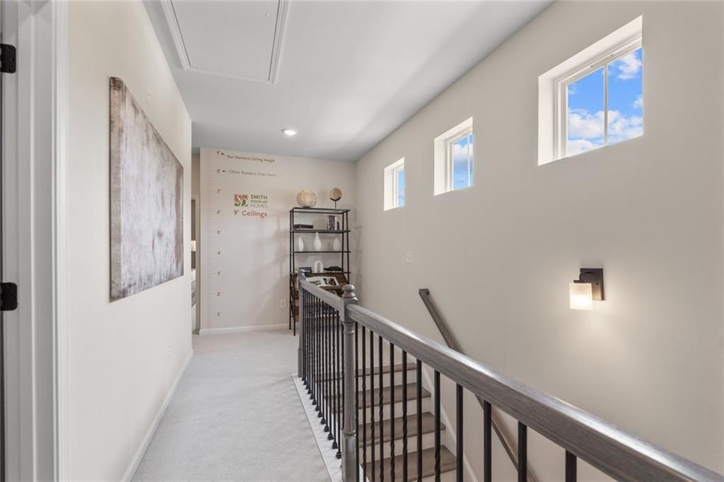 Move-in Ready March! The Ellison II plan by Smith Douglas Homes in the Jameson Towns community in Villa Rica, GA! This popular townhome plan, offers a stylish and functional 3-bedroom, 2.5-bath layout designed for modern living. Step inside from the welcoming foyer into a bright, open-concept main level featuring luxury vinyl plank flooring, a spacious great room with a traditional fireplace, and a chef-inspired kitchen with a large center island, granite countertops, upgraded cabinets, tile backsplash, stainless steel appliances, and a walk-in pantry. The kitchen opens directly to a rear patio and private yard, perfect for entertaining or relaxing outdoors. Upstairs, the open iron staircase leads to a luxurious primary suite complete with a tray ceiling, dual vanity bath, tiled walk-in shower, separate water closet, and large walk-in closet. Two additional bedrooms, a shared hall bath, and a convenient laundry room complete the upper level. Enjoy 9-foot ceilings on both floors, creating an airy, spacious feel throughout. Residents will love the planned neighborhood amenities, including a pool with cabana, playground, and lawn maintenance included in the HOA, giving you more time to enjoy what matters most. Photos of home. Located just minutes from downtown Villa Rica, Starbucks, shopping, dining, and I-20, Jameson Towns offers unbeatable convenience and easy-maintenance living. Special seller incentives available with preferred lender!