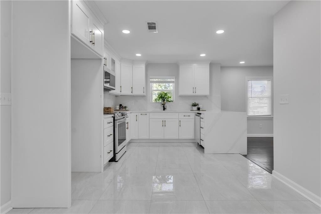 Welcome to 2693 Larkspur Drive SE, a completely renovated gem where every detail has been thoughtfully designed for modern living. Step inside to discover a bright open floor plan with brand-new finishes, fresh paint, and beautiful flooring throughout. The kitchen is a true showstopper, featuring quartz countertops, new cabinetry, and white glass appliances that make cooking and entertaining effortless. The bathrooms shine with quartz surfaces, a double vanity, and a frameless glass shower that brings a touch of spa luxury home. Enjoy the convenience of a spacious laundry room and relax outdoors in the large backyard, perfect for hosting friends, gardening, or simply unwinding in your private retreat. With a new roof and every major system refreshed, this home is move-in ready and built to impress. Located just minutes from East Atlanta Village and the BeltLine, you'll love the blend of modern comfort and vibrant city living.