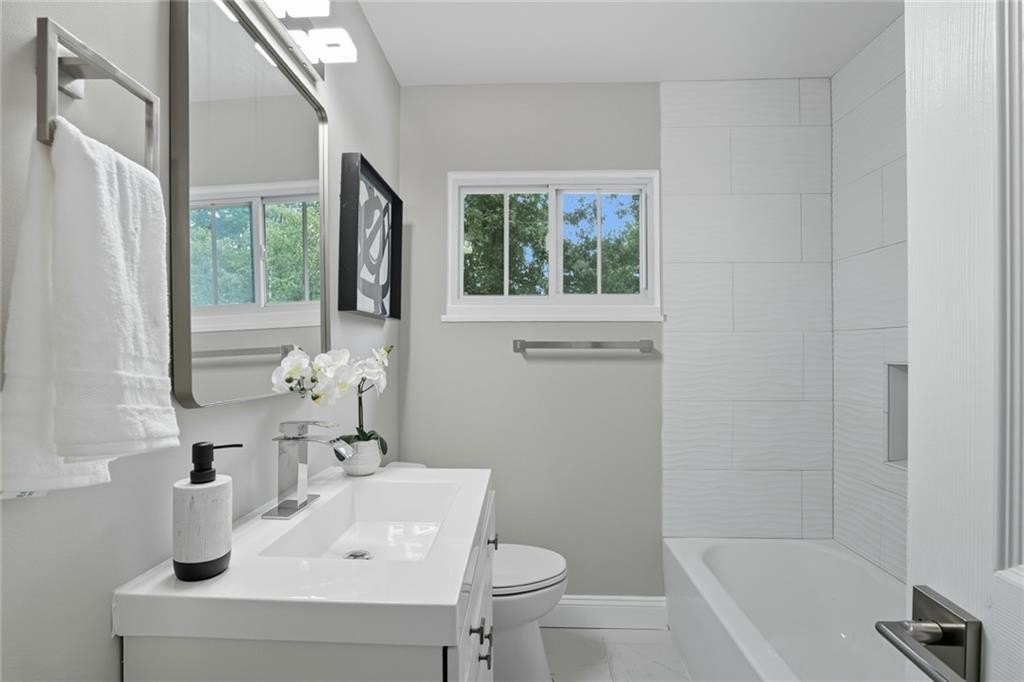 1% rate buydown for lower first-year payments with preferred lender; reach out for more information! HUGE, 1/2 acre. fenced-in backyard with a private deck! Recently fully renovated and totally buffed out! New roof, updated plumbing, fresh paint, inside and out, LVP floors, stunning kitchen with stainless steel appliances. Lives large with 3 bedrooms, 2 full, contemporary bathrooms, 2 living spaces, and a large unfinished basement. A drive-under garage plus tons of parking makes life easy. And though it's tucked away on a quiet street, you're only minutes to downtown East Point, Historic Westside, Hartsfield-Jackson Airport, Camp Creek Marketplace, and Tyler Perry Studios.