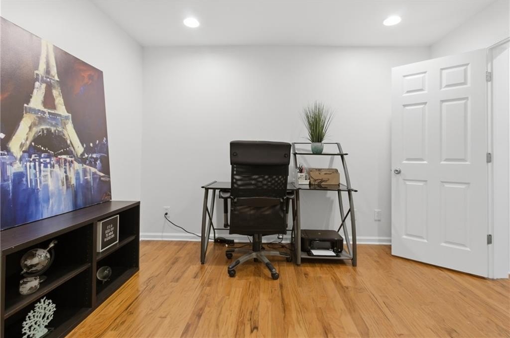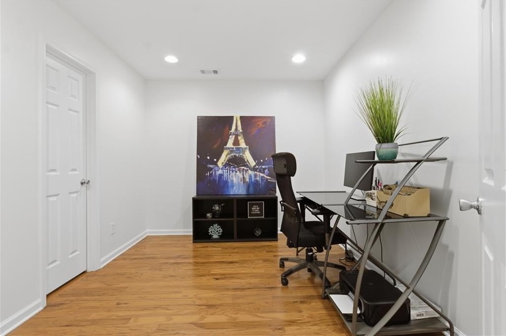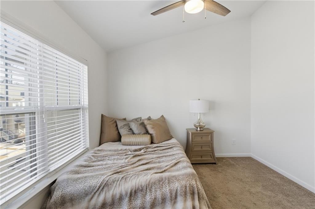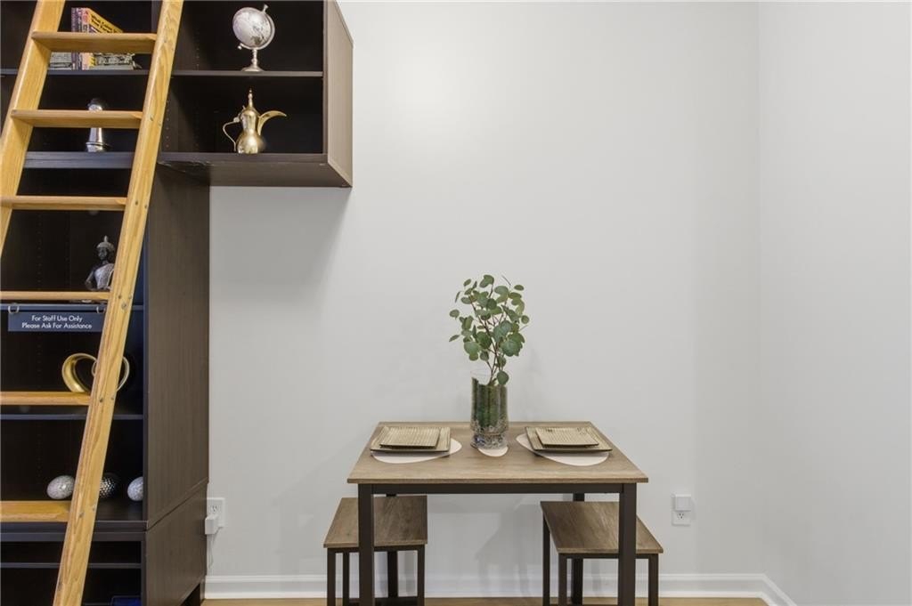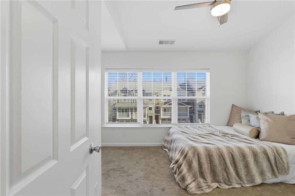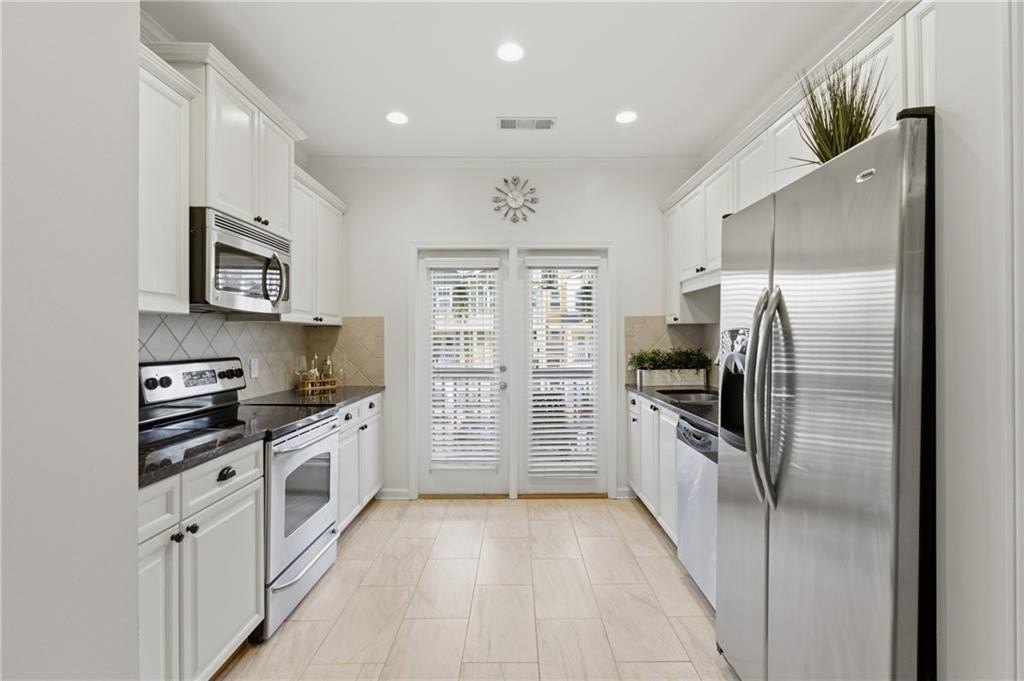 Welcome home to this thoughtfully updated three-level townhome located in a gated community. Recent enhancements include fresh interior paint, new luxury vinyl plank flooring, modern lighting, and a recently replaced roof-creating a refined, move-in-ready living experience. Vaulted ceilings throughout enhance the home's bright, open ambiance. The main level features a well-appointed kitchen with granite countertops, stainless steel appliances, pantry storage, and French doors open to the front balcony. A spacious dining and living area provides an ideal setting for entertaining, highlighted by a unique entertainment system with a sliding ladder that adds both character and functionality. Glass doors lead to a private rear deck-perfect for morning coffee or evening relaxation-while a convenient half bath completes the main level. Upstairs, two spacious bedrooms each feature en-suite bathrooms. The primary suite offers vaulted ceilings, a walk-in closet, double vanity, and a soaking tub/shower combination. The secondary bedroom also includes vaulted ceilings and a private bath. The lower level provides flexible space for a home office, guest room, gym, media room - or more. There is also an unfinished bathroom space offering a blank canvas for the next owner to design and build to their personal style and needs - an excellent opportunity to add value and customization. Additional highlights include a one-car garage, private driveway, and washer and dryer that remain. The HOA maintains exterior upkeep and offers amenities including 24-hour gated attendants, swimming pool, dog park, and guest parking. Ideally located in the Upper Westside, near favorites such as Chattahoochee Food Works, Westside Park, Publix, Bobby Jones Golf Course, Atlantic Station, Truist Park, and Topgolf, with easy access to I-75 and I-285. Close to everything, yet comfortably tucked away.