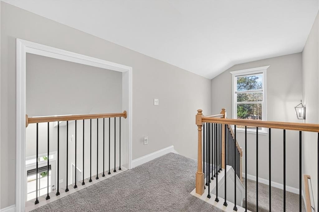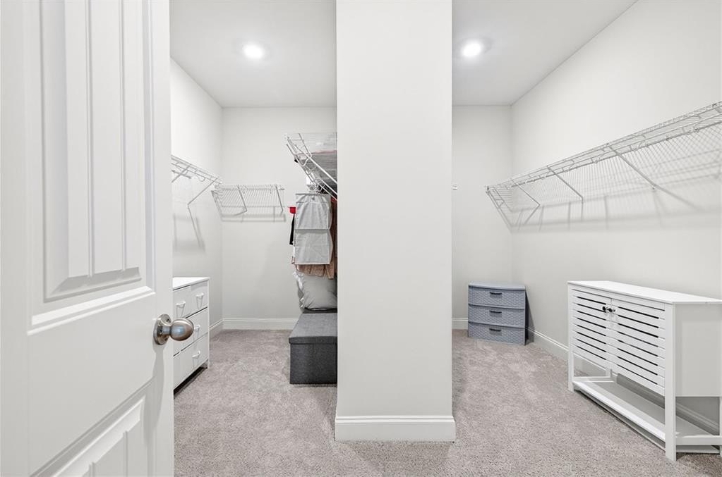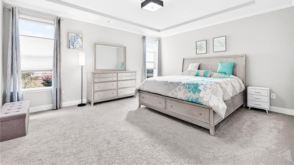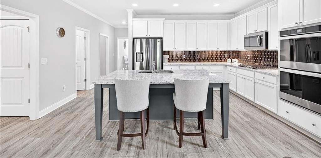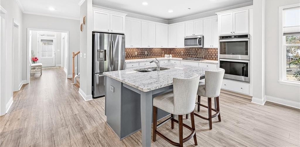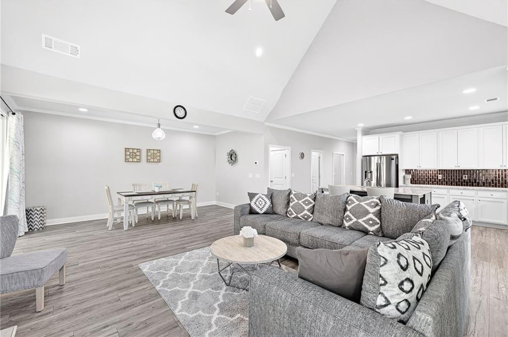 Welcome home to this stunning residence located in a desirable 55+ Active Adult Gated Community offering a dog park, clubhouse, and community garden. Perfectly maintained, spotless, and beautifully designed, this home shows like New Construction. A light-filled two-story foyer welcomes you into an open-concept layout featuring a vaulted great room with a cozy fireplace, seamlessly flowing into the dining area and gourmet kitchen. Elegant gray wood-style flooring and a soothing gray-and-white color palette create a designer-inspired aesthetic throughout. The well-appointed kitchen boasts stainless steel appliances, double ovens, a gas cooktop, granite countertops, a large walk-in pantry, and a center island with breakfast bar - ideal for both everyday living and entertaining. Step outside to a covered patio and enjoy this unique UPGRADED lot, located in the back of the community, providing a private wooded serene view, perfect for relaxing. The spacious main-level owner's suite features tray ceilings, a double-sink vanity, separate water closet, oversized walk-in shower, and an impressive double-sided "his and hers" walk-in closet. Also on the main level are a second bedroom, full bath, and a convenient laundry room with sink. The garage entry includes a charming mudroom area with built-in seating and storage. Upstairs, you'll find two generously sized guest bedrooms, a full bath, and additional walk-in attic storage. This exceptional home offers the perfect blend of comfort, style, and low-maintenance living in a vibrant community.