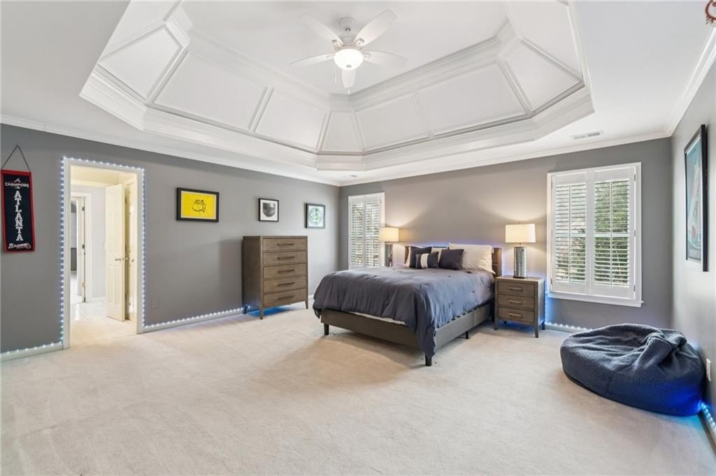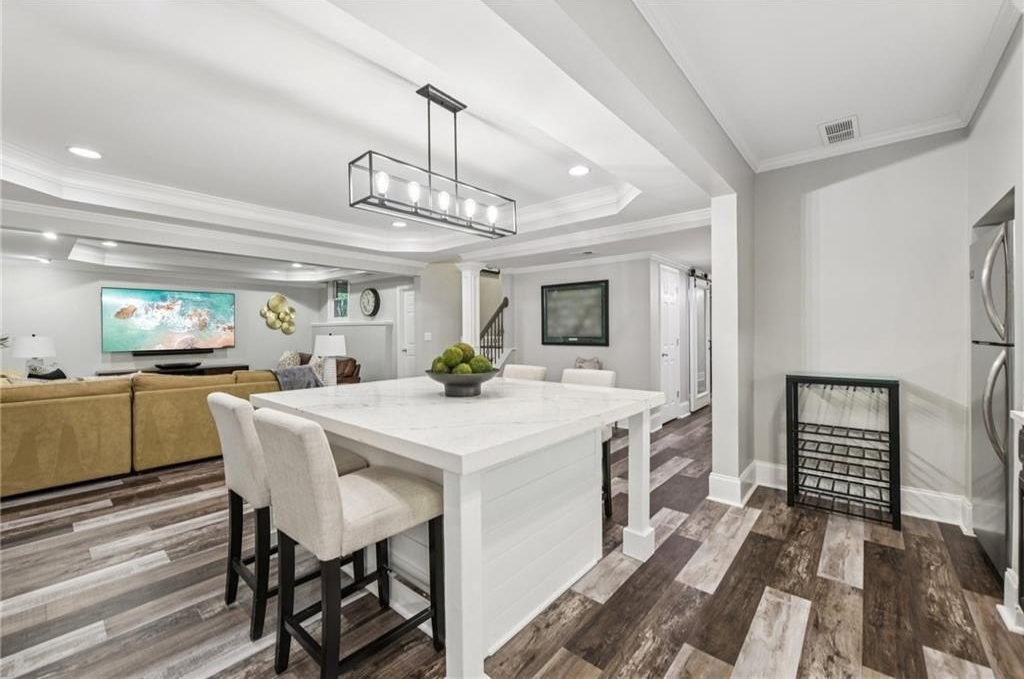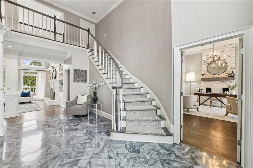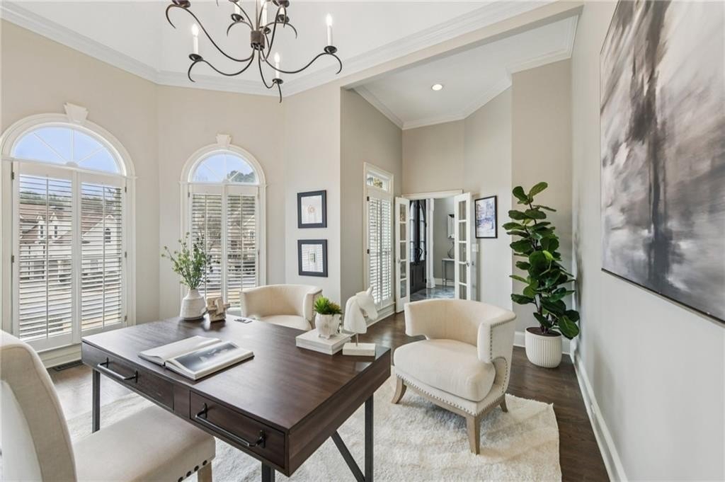 Welcome to 1135 Ascott Valley Drive in St Ives Country Club - a true resort-style, executive living experience. This exceptional home, with a saltwater pool, offers timeless curb appeal with hard-coat stucco and stone exterior. Inside, soaring ceilings, abundant natural light, hardwood floors, custom millwork, and designer finishes create an elegant yet inviting atmosphere. The thoughtfully designed floor plan blends formal and casual spaces, featuring a two-story great room with fireplace and wall of windows overlooking a private backyard. The renovated chef's kitchen boasts top-of-the-line appliances: Wolf cooktop, Sub Zero refrigerator, Dacor double-oven & warming drawer, Cove dishwasher, along with quartzite countertops, a large island, butler's pantry/wet bar, and walk-in pantry, flowing seamlessly into the fireside keeping room and breakfast area. The primary suite on the main level showcases 18-foot tray ceilings, dual custom closets, and a spa-like bath with separate shower and a soaking tub. Upstairs offers three spacious bedrooms, while the renovated terrace level is ideal for entertaining with a wet bar, media and game rooms, fitness room with steam shower, guest suite with full bath, and ample storage. The private, fenced backyard has an outdoor fireplace and a heated, saltwater pool and space for play, pets, & gatherings. Recent upgrades include new windows, hot water heater, pool pump, and newer HVAC systems. Ideally located near the end of one of the neighborhood's most sought-after cul-de-sac streets and optional country club membership. St Ives Country Club has a beautiful clubhouse with restaurants, pool, tennis, pickleball, a playground, basketball court and the Tom Fazio designed private golf course.