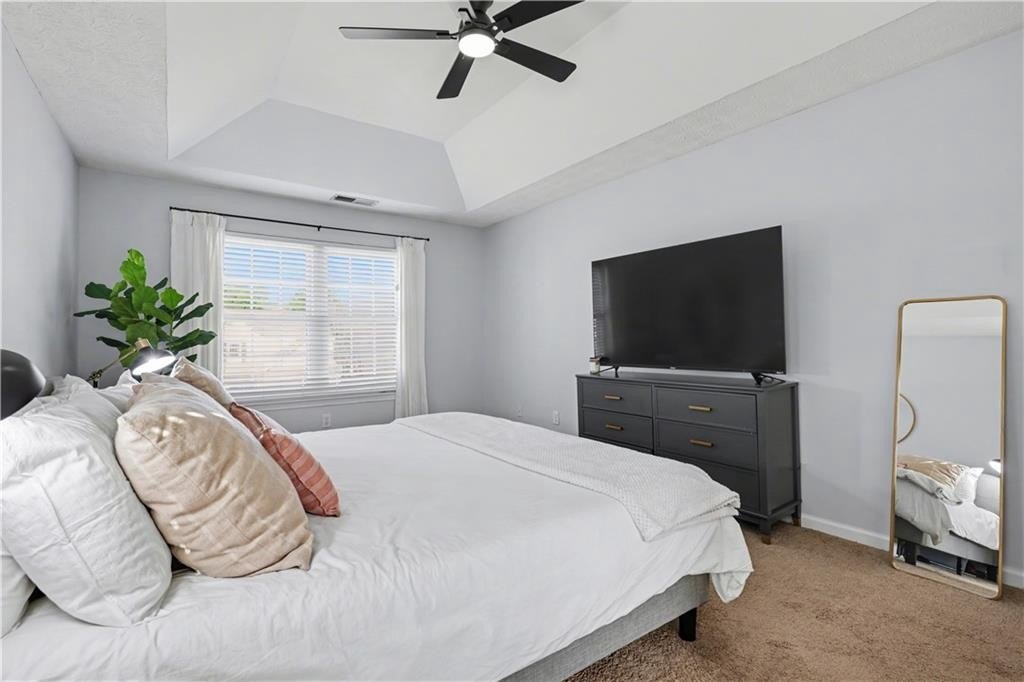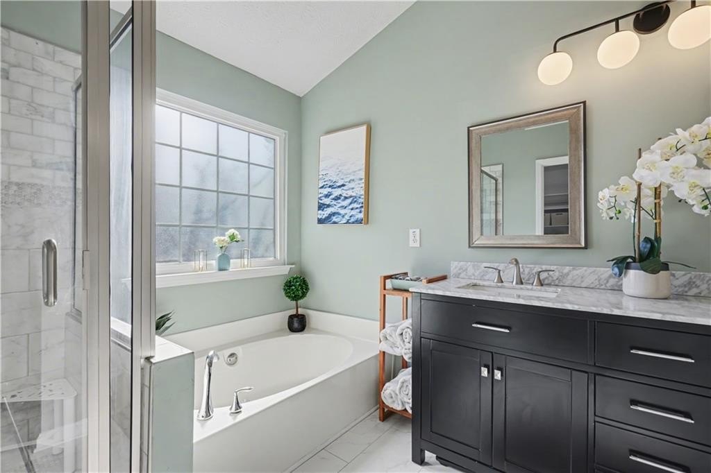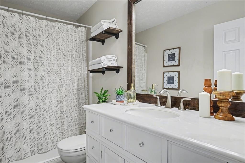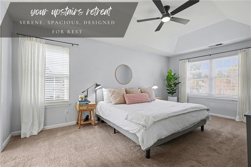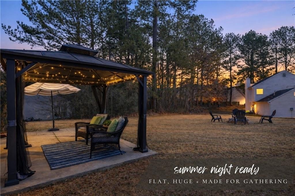 If "move-in ready" had a personality, it would look like this: updated everything, all the big-ticket items handled, and room for everyone to just... breathe. From the moment you step into the two-story foyer, this home feels like the kind of place where life just flows. The heart of the home is the bright, refreshed kitchen with newer stainless steel appliances, a butcher block island, subway tile backsplash, and wide-open sightlines into the living room, where the gas fireplace and oversized windows set the tone for laid-back evenings or weekend lounging. A separate dining room welcomes real dinner parties (or epic game nights), while the front den is flooded with light and comes with a Zoom-ready accent wall that'll make your coworkers jealous. The first floor gives you space to entertain, work, and actually live without feeling cramped or confusing. Upstairs, the primary suite is the kind of room where you can spread out. Tray ceiling, tons of natural light, and enough space to add a sitting area or reading chair if that's your vibe. The en suite bath is pure spa mode: vaulted ceilings, soft sage walls, dual vanities topped with marble, a soaking tub, and a separate tiled walk-in shower. The walk-in closet has custom built-ins, so getting ready feels less chaotic and more like you have your life together (even if you don't). Three more bedrooms upstairs are bright, roomy, and ready for whatever you need: sleep, play, guest space, hobby HQ. They share a fully updated bath with clean finishes and smart storage. And then... there's the laundry room. Yes, it's upstairs, just steps from every bedroom (one of the only floor plans in the neighborhood that does this right), and yes, it's actually cute. This isn't a dark basement corner. It's a space that makes folding towels feel less like a chore. Outside, your corner lot is the real showstopper. The backyard is flat, huge, and made for summer nights. There's a covered gazebo perfect for lounging, a fire pit ready for s'mores, and enough open space for games, gardening, or just letting the dog run. Prefer more privacy? A fence could easily take this yard from great to your own private retreat. You'll love being in a peaceful, well-kept neighborhood with low HOA fees and a true sense of community. Amenities include a pool, tennis courts, playground, and clubhouse. Plus, you're minutes from the Silver Comet Trail, Kennesaw Mountain, Marietta Square, the Battery, and all the shops and restaurants along the East-West Connector. With both HVAC units replaced in 2022, a newer water heater in 2025, and a roof with plenty of life left, this home checks all the big-ticket boxes and takes away your punch list. No projects. No compromises. Just a home that's been loved, lived in, and ready for your next chapter. Don't miss the walkthrough video here -->