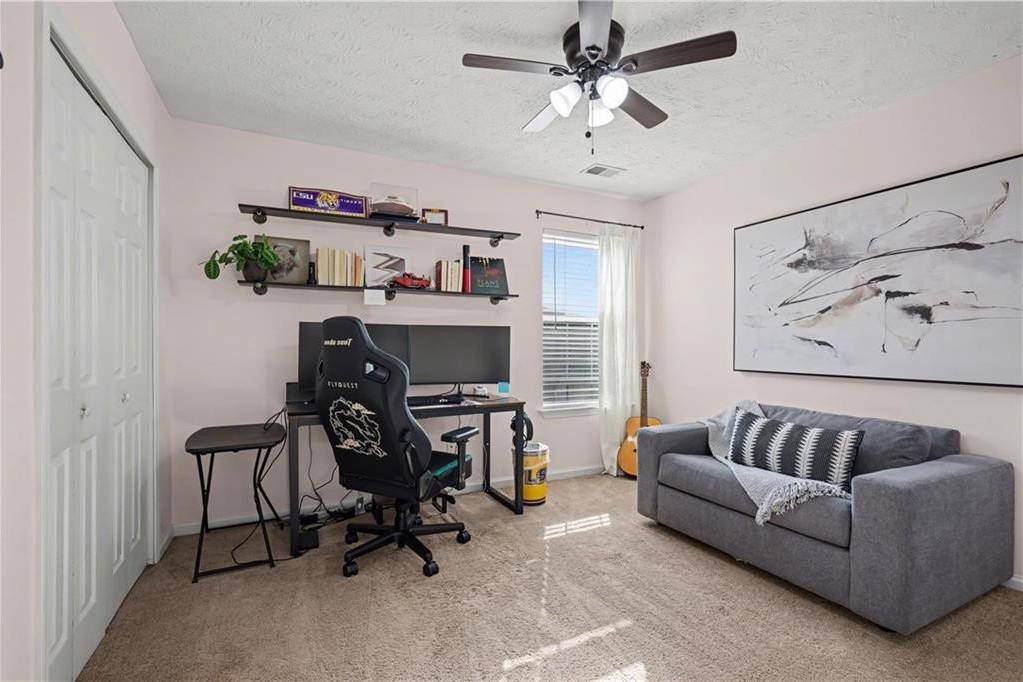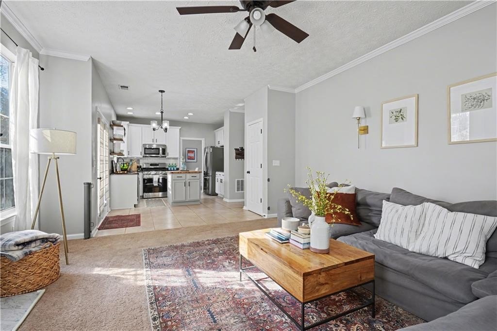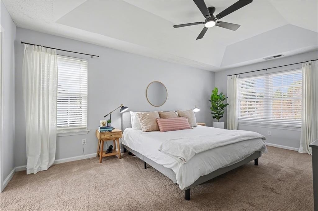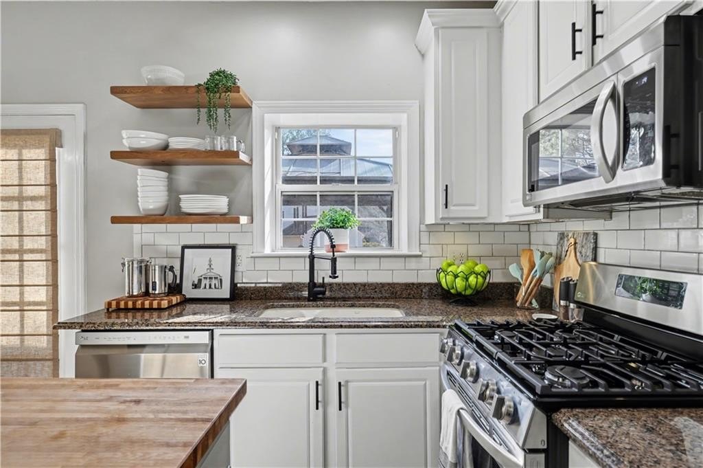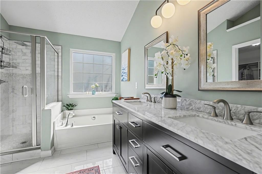 If "move-in ready" had a personality, it would look like this: updated everything, all the big-ticket items handled, and room for everyone to just... breathe. From the moment you step into the two-story foyer, this home feels like the kind of place where life just flows. The heart of the home is the bright, refreshed kitchen with newer stainless steel appliances, a butcher block island, subway tile backsplash, and wide-open sightlines into the living room, where the gas fireplace and oversized windows set the tone for laid-back evenings or weekend lounging. A separate dining room welcomes real dinner parties (or epic game nights), while the front den is flooded with light and comes with a Zoom-ready accent wall that'll make your coworkers jealous. The first floor gives you space to entertain, work, and actually live without feeling cramped or confusing. Upstairs, the primary suite is the kind of room where you can spread out. Tray ceiling, tons of natural light, and enough space to add a sitting area or reading chair if that's your vibe. The en suite bath is pure spa mode: vaulted ceilings, soft sage walls, dual vanities topped with marble, a soaking tub, and a separate tiled walk-in shower. The walk-in closet has custom built-ins, so getting ready feels less chaotic and more like you have your life together (even if you don't). Three more bedrooms upstairs are bright, roomy, and ready for whatever you need: sleep, play, guest space, hobby HQ. They share a fully updated bath with clean finishes and smart storage. And then... there's the laundry room. Yes, it's upstairs, just steps from every bedroom (one of the only floor plans in the neighborhood that does this right), and yes, it's actually cute. This isn't a dark basement corner. It's a space that makes folding towels feel less like a chore. Outside, your corner lot is the real showstopper. The backyard is flat, huge, and made for summer nights. There's a covered gazebo perfect for lounging, a fire pit ready for s'mores, and enough open space for games, gardening, or just letting the dog run. Prefer more privacy? A fence could easily take this yard from great to your own private retreat. You'll love being in a peaceful, well-kept neighborhood with low HOA fees and a true sense of community. Amenities include a pool, tennis courts, playground, and clubhouse. Plus, you're minutes from the Silver Comet Trail, Kennesaw Mountain, Marietta Square, the Battery, and all the shops and restaurants along the East-West Connector. With both HVAC units replaced in 2022, a newer water heater in 2025, and a roof with plenty of life left, this home checks all the big-ticket boxes and takes away your punch list. No projects. No compromises. Just a home that's been loved, lived in, and ready for your next chapter. Don't miss the walkthrough video here -->