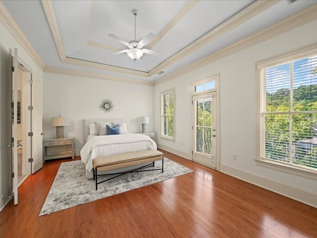 New roof in place and move-in ready executive townhome in a prime Buckhead location. Situated in Pine Hills, a gated enclave of just 34 four-sided brick townhomes, this residence offers privacy, security, and timeless style in the heart of Buckhead. Fresh interior paint, updated designer lighting, and hardwood floors throughout create a crisp, modern feel from the moment you enter. The open-concept floor plan is ideal for entertaining, with seamless flow between the gourmet kitchen, dining area, and main living space. The kitchen is appointed with high-end appliances, custom finishes, and striking 9-foot solid wood doors that add architectural character. Enjoy outdoor living with both a private balcony and a covered patio, perfect for morning coffee or evening relaxation. Upstairs, two spacious primary suites each feature walk-in closets and spa-inspired baths. The terrace level offers a third bedroom with a full bath and private access, providing flexibility for guests, a home office, or multigenerational living. A modern laundry room with washer and dryer included, along with an oversized two-car garage and generous storage, completes the home. All of this is set in an unbeatable Buckhead location just minutes from dining, shopping, and everyday conveniences. Sophisticated, secure, and truly turnkey.