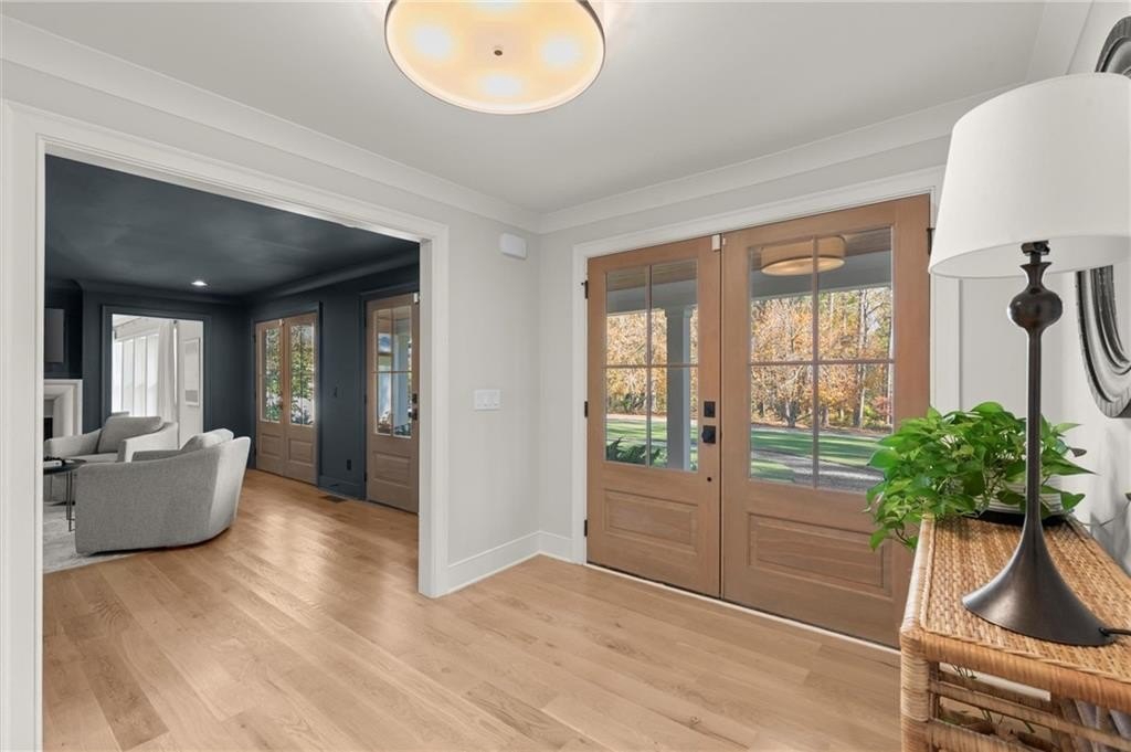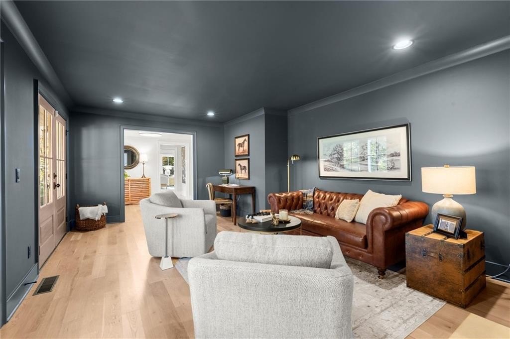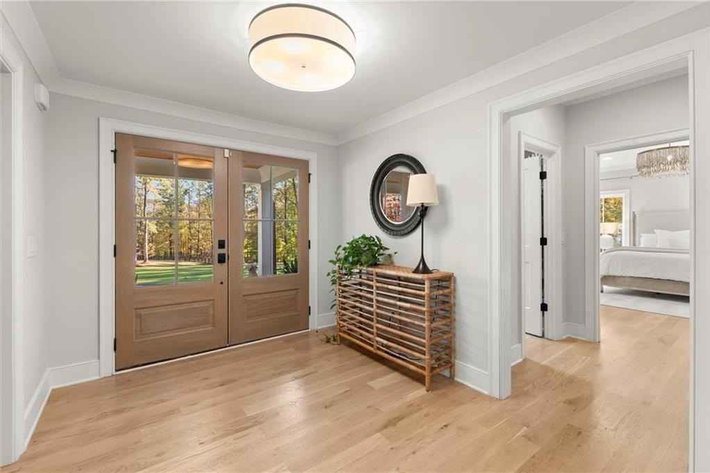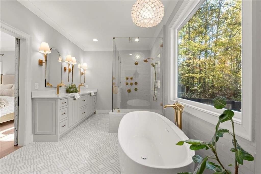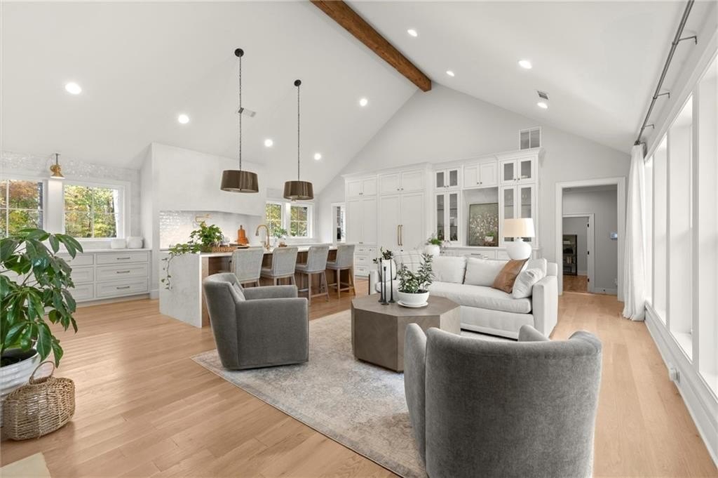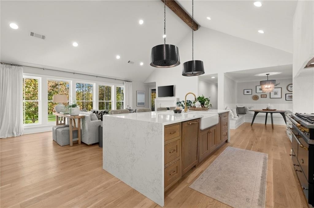 A Modern Farmhouse Revival with lots of heart and soul! Originally a 1960's Ranch, reimagined in 2023 and now a 2025 showpiece...this one-of-a-kind property perfectly blends timeless charm with modern sophistication. Tucked away on 5+ private acres in one of Southeast Cherokee's most coveted locations, the setting feels like a step back in time - a long gravel drive meanders past green pastures, miniature farm animals, and mature shade trees before revealing the stunning farmhouse that awaits. Set on a gently elevated, level lot with sweeping views of the quiet landscape, this home offers a lifestyle of peaceful seclusion just minutes from everything. Spring and Fall bursts with color as ornamental trees and flowering shrubs awaken across the property - a dream retreat for those who crave serenity, nature, and a sense of "living off the grid" without sacrificing convenience. Inside, discover a thoughtfully reimagined design centered around open-concept living and distinguished detail. The vaulted fireside family room, expansive island kitchen, and cozy study set the tone for connection and comfort. The chef's kitchen is a showstopper - featuring quartz countertops, designer vent hood, and a Lacanche range, complemented by a scullery with Miele built-in coffee maker and abundant prep space. The main level primary suite offers tranquil views and a spa-inspired bath with heated tile floors, while a brand-new studio suite (with private entry, mini kitchen, full bath, laundry hookups, and garage) creates the ideal setup for multigenerational living, guests, or a teen retreat - all on one level. Upstairs, two additional bedrooms and a full bath provide flexibility and comfort. The terrace level adds more living space with a recreation area, home gym, and full bath. Step outside to your private outdoor oasis - a covered porch with stone fireplace overlooking a heated saltwater pool and spa, perfect for relaxing as deer wander by. A double-gated entry welcomes you home to total privacy. This property is more than a home - it's yours for the taking and the making...craft your perfect lifestyle here!