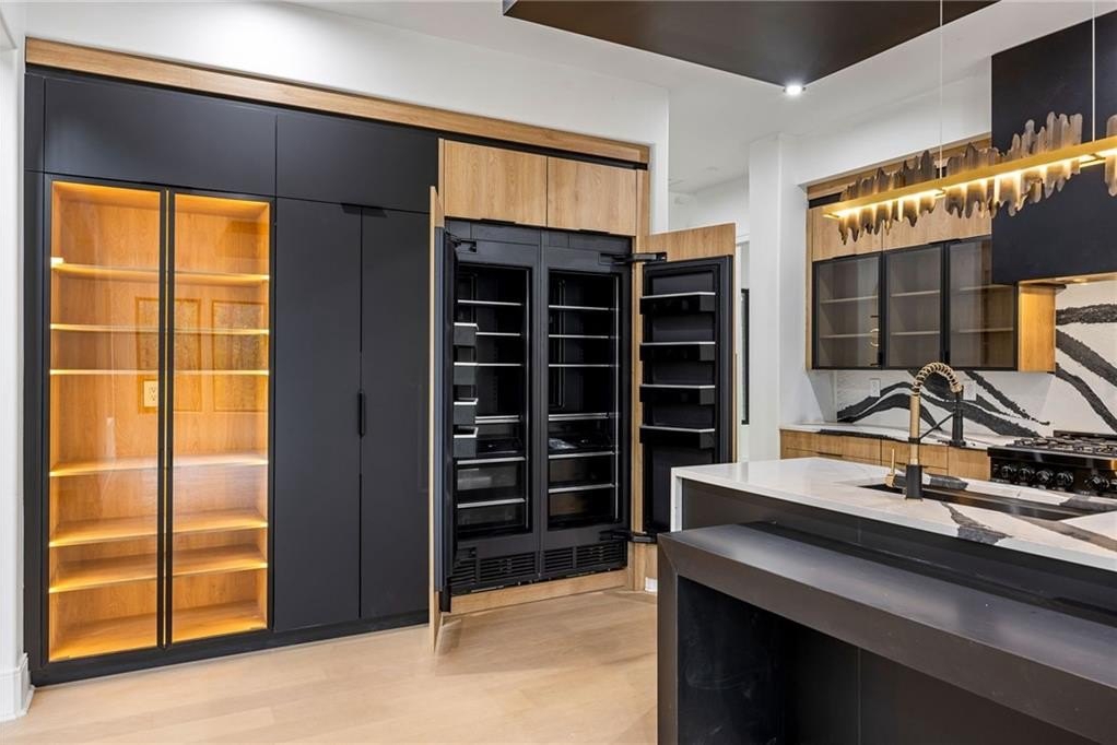 Welcome to this exceptional 11,000 sq ft luxury estate, offering 7,369 sq ft of refined heated living space and thoughtfully designed to balance sophistication, comfort, and everyday functionality. With 5 expansive bedrooms, 5 full bathrooms, and 2 half baths, this home delivers both privacy and effortless entertaining on a grand scale. At the center of the home is a chef-caliber kitchen featuring top-tier appliances, premium finishes, and a seamless connection to the main living and dining spaces-perfect for hosting or daily living. Every detail throughout the home reflects intentional design and superior craftsmanship. Laundry rooms on every level add unmatched convenience, while the oversized man cave provides a private retreat with generous storage and flexible use. The fully built-out mudroom includes custom cabinetry and a dedicated dog wash, blending luxury with real-life practicality. Designed for elevated living and entertaining, the home boasts a custom wine room, private theater, designer bar with lounge, and dedicated spaces for a gym, salon, and recreation. Each area is purpose-driven yet cohesive, creating a home that truly lives as beautifully as it looks. The primary suite is a private sanctuary, complete with a fully custom walk-in closet and an allocated space for a future sauna-offering the opportunity to create a personalized wellness retreat. This residence is not just large-it's intelligently designed, impeccably finished, and built for a luxury lifestyle without compromise.